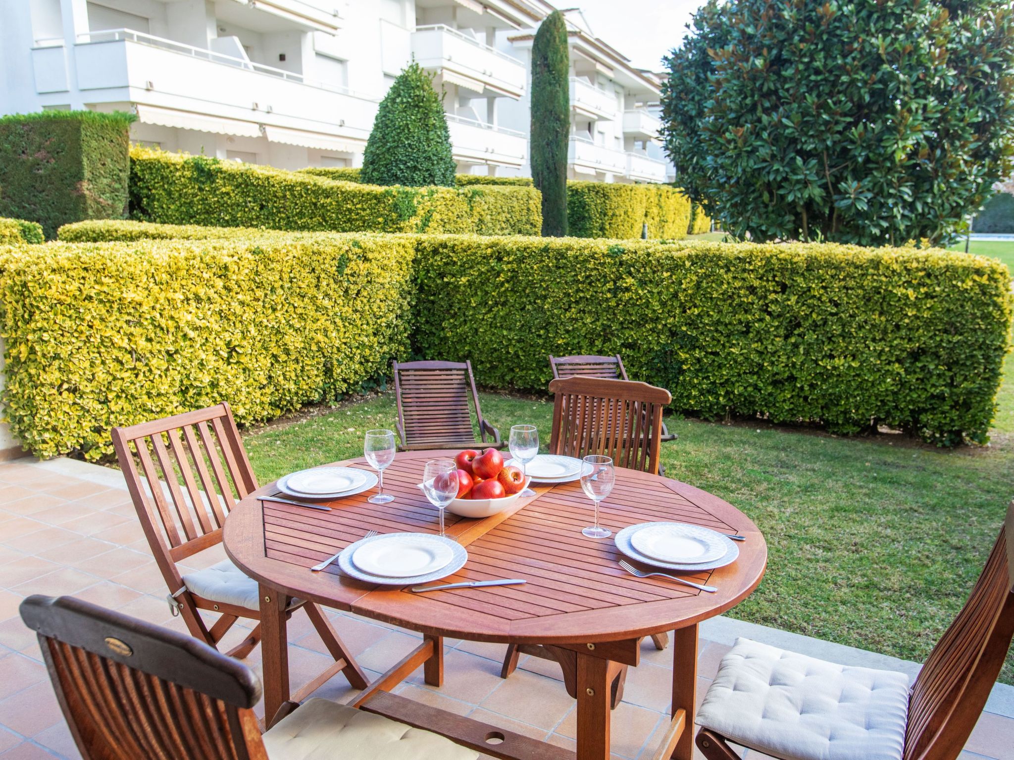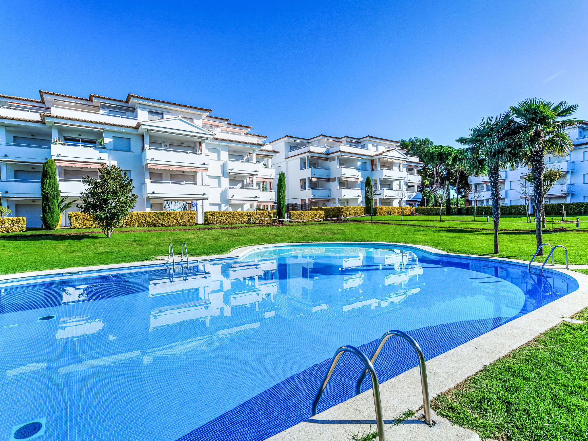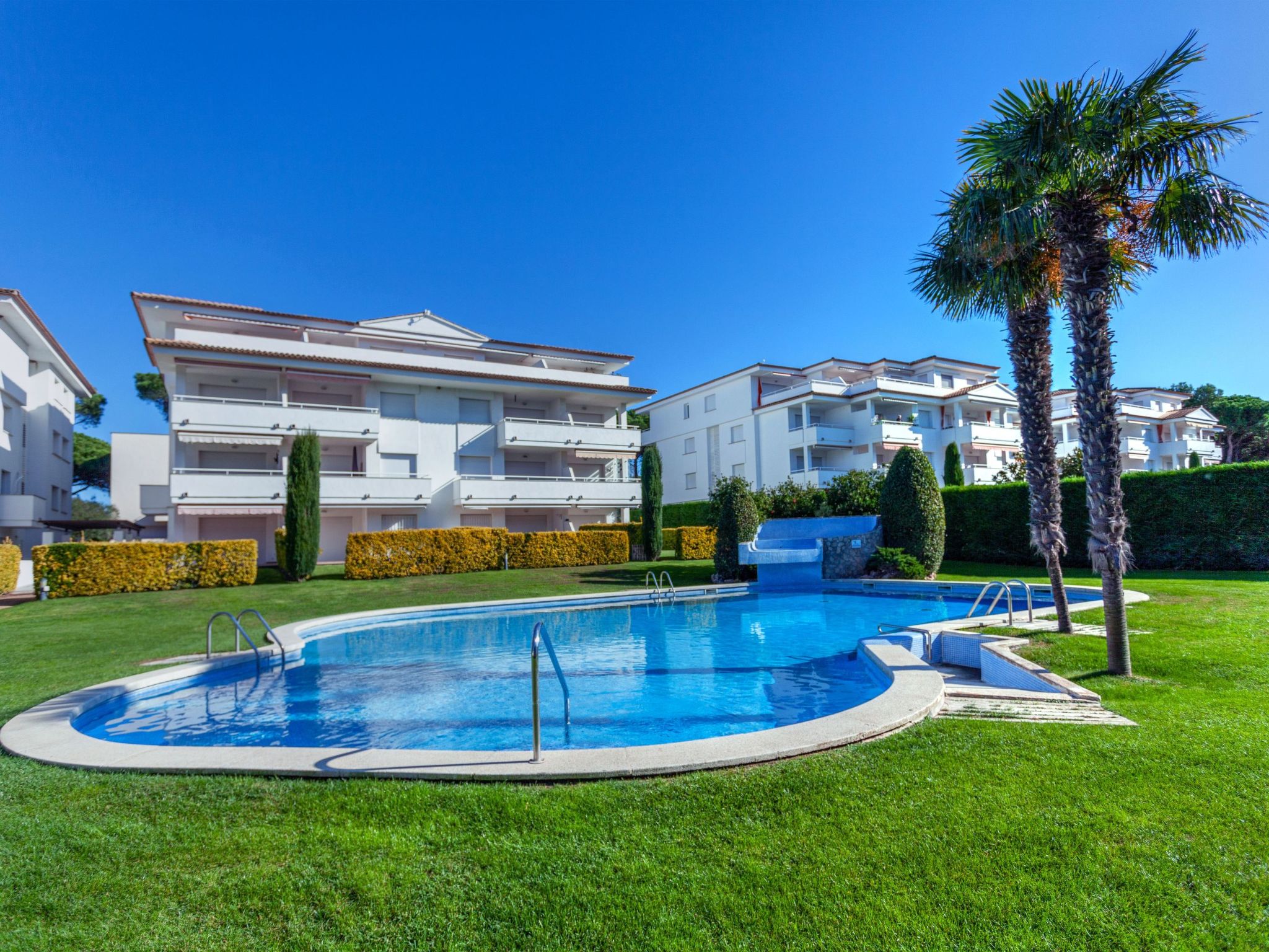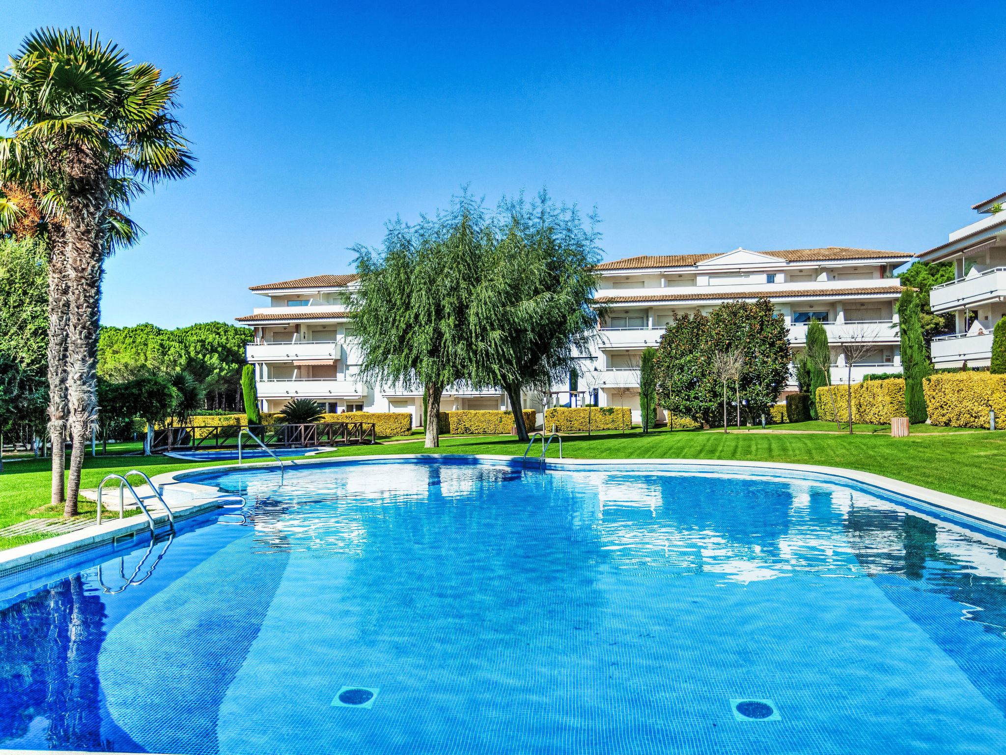 Appartementhaus "Green Mar". 600 m vom Meer. Zur Mitbenutzung: Garten mit Rasen, Naturgarten, Schwimmbad (195 m2, 75 - 190 cm tief, saisonale Verfügbarkeit: 01.Jan.-31.Dez.). Ungleichmässige Schwimmbadform, Kinderbecken, Aussendusche, Kinderspielplatz. Im Hause: Fahrstuhl. Parkplatz (überdacht), Gemeinschaftsgarage. Supermarkt 800 m, Sandstrand "Playa de Pals" 600 m. Golfplatz (18 Loch) 300 m. Nahe gelegene Sehenswürdigkeiten: Illes Medes 17 km. Der Besitzer akzeptiert keine Gruppen. Der Besitzer akzeptiert keine Jugendgruppen. Bitte beachten: In diesem Haus sind weitere Ferienwohnungen mietbar. Ferienwohnung Ref. es9435.647 befindet sich auf dem gleichen Grundstück.