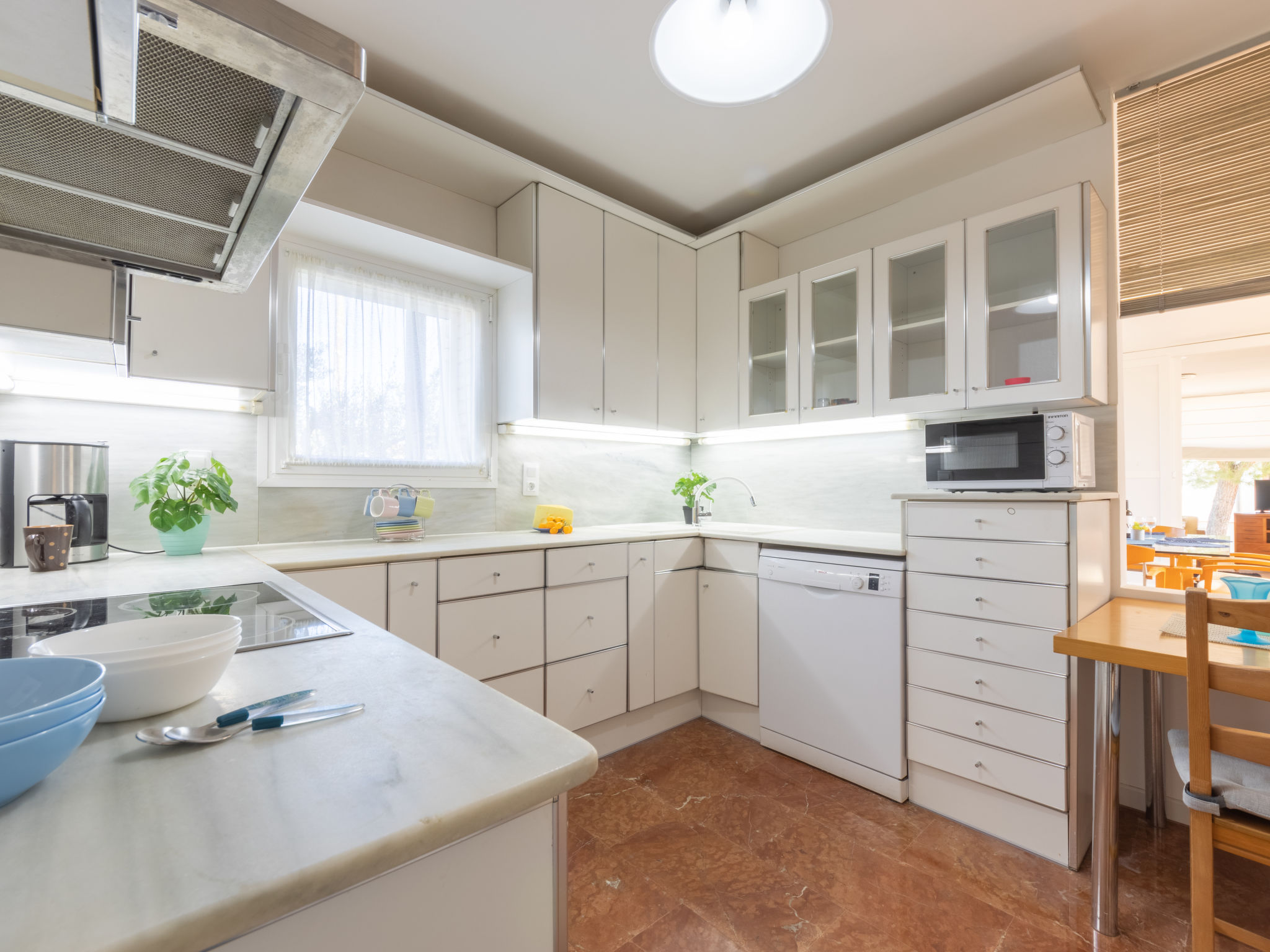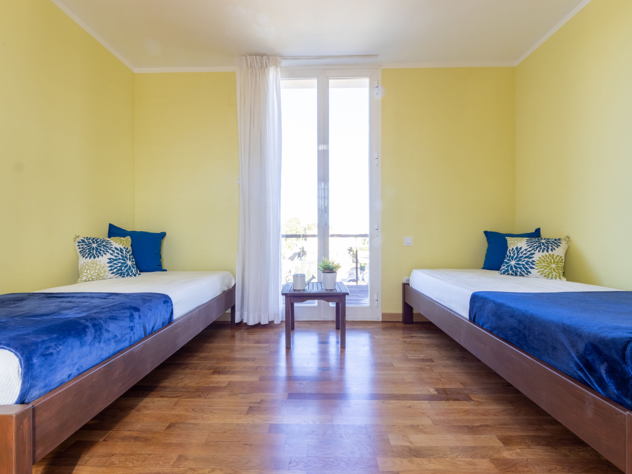 4-Zimmer-Haus 214 m2. Geräumig, einfach und komfortabel eingerichtet: grosses Wohn-/Esszimmer mit Digital-TV. Ausgang zur Terrasse. Küche (Backofen, Geschirrspüler, 4 Glaskeramikherd Platten, Toaster, Wasserkocher, Mikrowelle, Tiefkühler, elektrische Kaffeemaschine, Dampfgarer). Sep. WC. Obergeschoss: 2 Zimmer, jedes Zimmer mit 1 franz. Bett (135 cm, Länge 190 cm). 1 Zimmer mit 2 Betten (90 cm, Länge 190 cm). Dusche/WC. Grosse Terrasse. Terrassenmöbel, Liegestühle. Zur Verfügung: Waschmaschine, Bügeleisen, Kinderhochstuhl, Babybett bis 2 Jahre, Haartrockner. Internet (Wireless LAN, gratis). Geeignet für Familien. Maximal 2 Haustiere/Hunde erlaubt. HUTTE001614