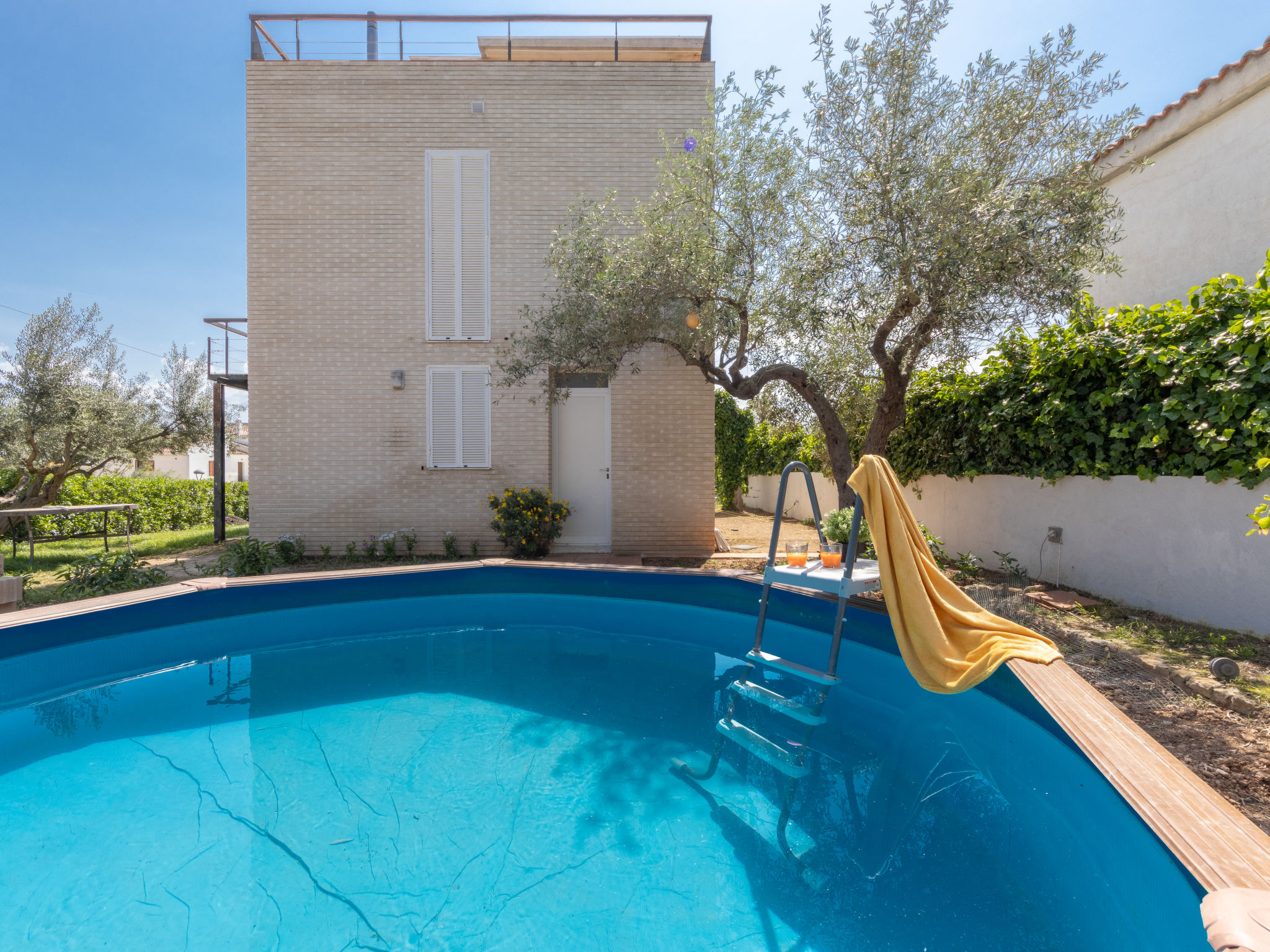 Urb. Ampolla Mar: Gemütliches, komfortables Haus "Mar Roig", auf 3 Stockwerken. Im Ort, 1.3 km vom Zentrum von l'Ampolla, sonnige Lage, 300 m vom Meer, 300 m vom Strand, Strasse zu überqueren. Zur Alleinbenutzung: Grundstück (eingezäunt), Aufstellpool eckig (3 x 5 m, 120 cm tief, saisonale Verfügbarkeit: 01.Jan.-31.Dez.). Terrasse, Gartenmöbel, Grill, öffentliche Parkplätze auf der Strasse. Supermarkt 1 km, Restaurant 350 m, Bahnstation "L'Ampolla" 1.8 km. Nahe gelegene Sehenswürdigkeiten: Parque Natural del Ebro 5 km, parque Portaventura 65 km, Pitch & Putt 2 km.