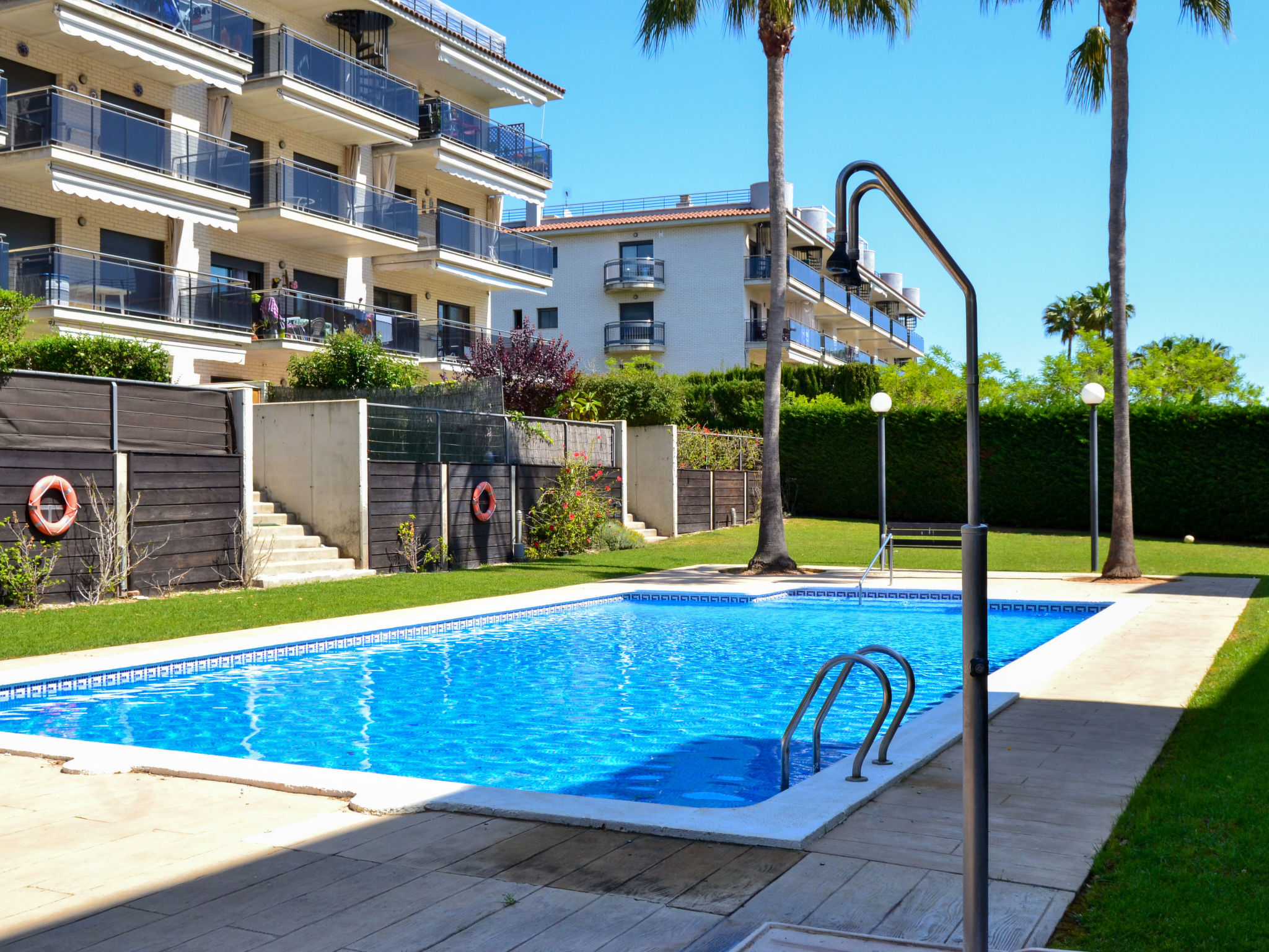 Vila del Far: Appartementhaus "Vila del Far". Im Ort, 400 m vom Zentrum von Sant Carles de la Rapita, 400 m vom Meer, 400 m vom Strand. Zur Mitbenutzung: grosser Garten, Schwimmbad (12 x 8 m, 80 - 200 cm tief, saisonale Verfügbarkeit: 01.Mai.-31.Sep. Öffnungszeiten Schwimmbad: 10:00-21:00). Aussendusche, Tennis, Poolpflege durch den Besitzer/Gärtner, Gemeinschaftsgarage Nr. 12. Supermarkt 1 km, Restaurant 200 m, Bar 100 m, Sandstrand 400 m. Sporthafen 1 km, Segelschule 1 km, Sportzentrum 1 km. Nahe gelegene Sehenswürdigkeiten: Parque Natural del Delta de l'Ebre 20 km, Peñiscola 40 km, Vinaroz 20 km, Port Aventura Salou 80 km. Wandergebiete: La Foradada Sant Carlos de la Rapita 6 km. Bitte beachten: Fahrzeug empfohlen. Jugendgruppen nur auf Anfrage.