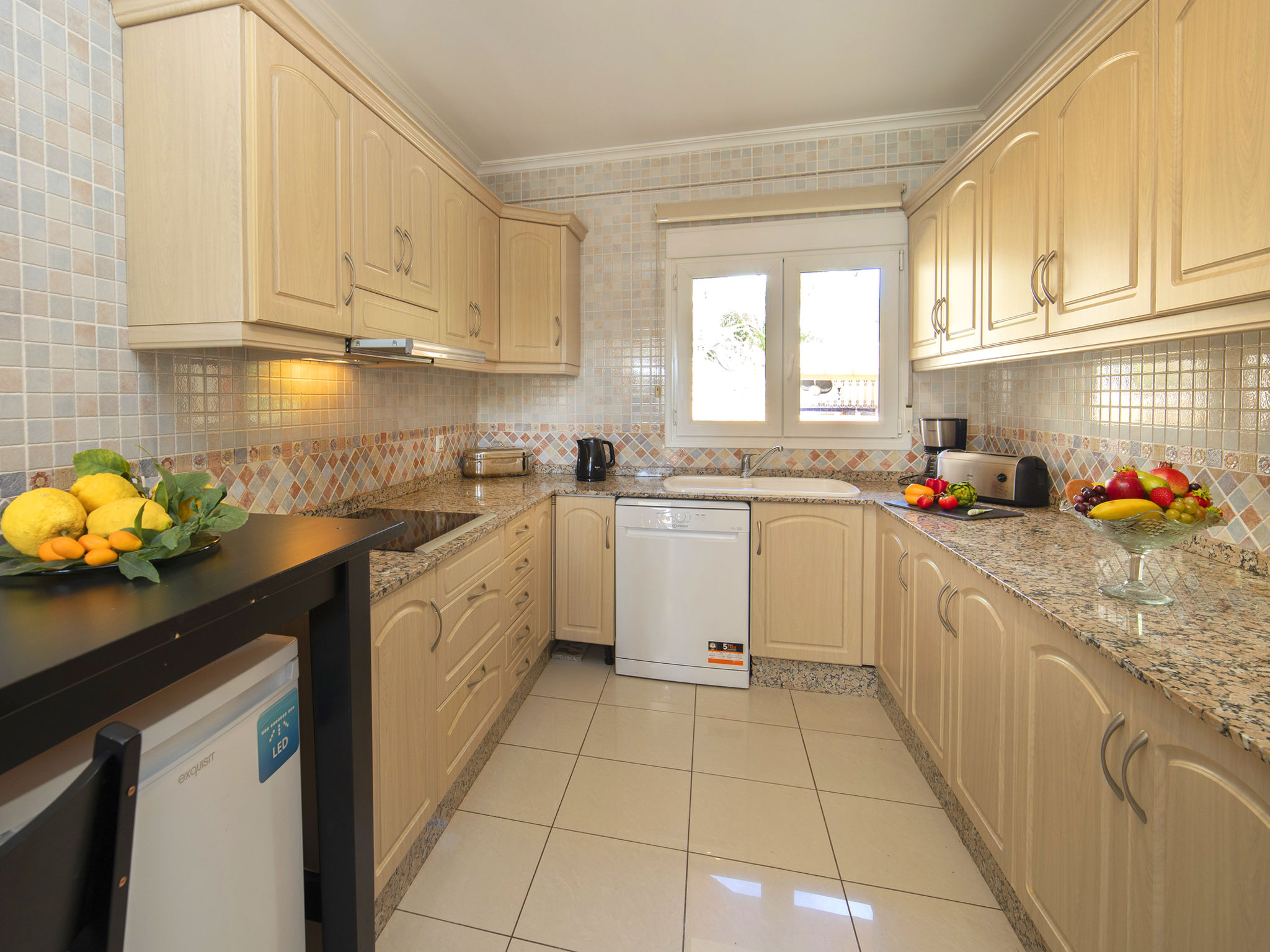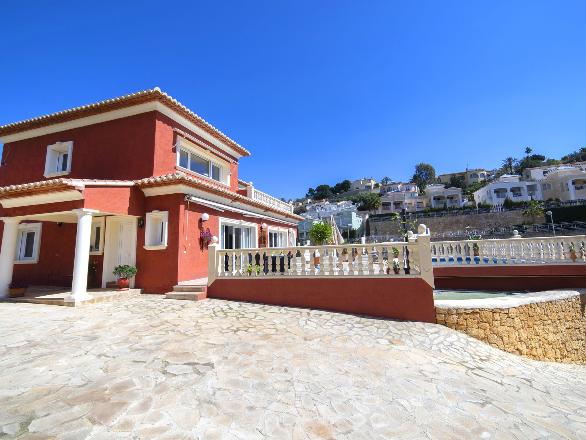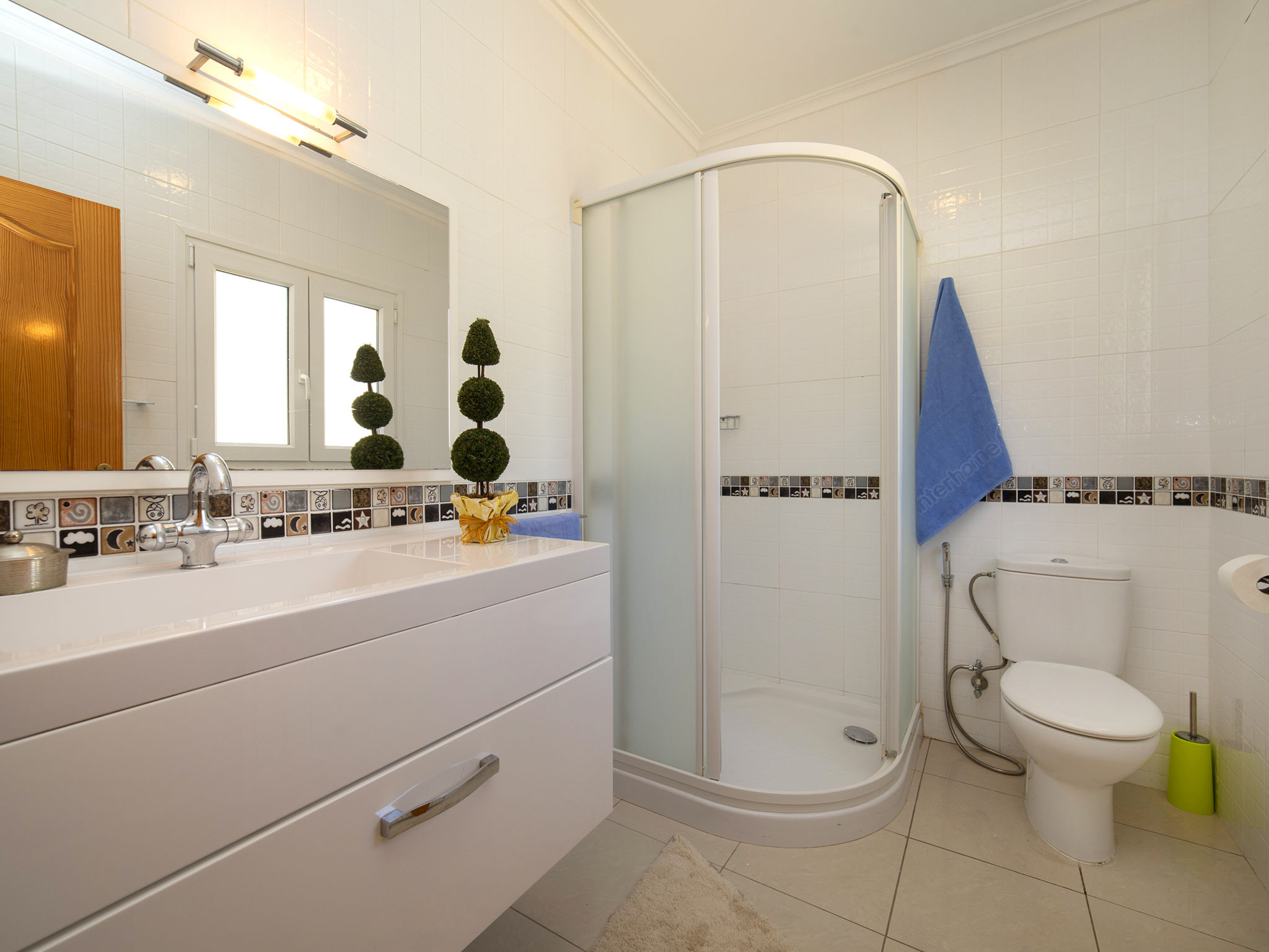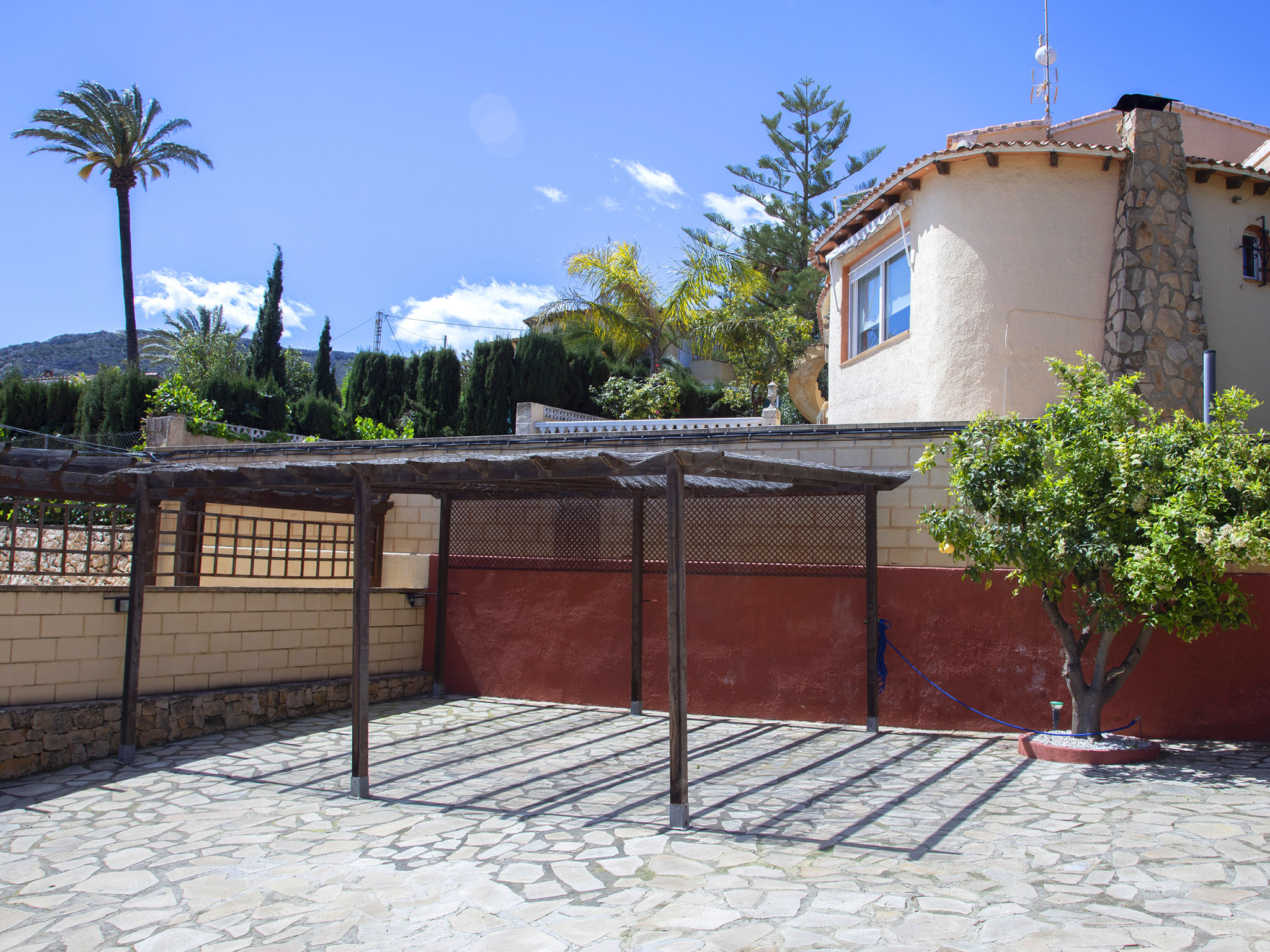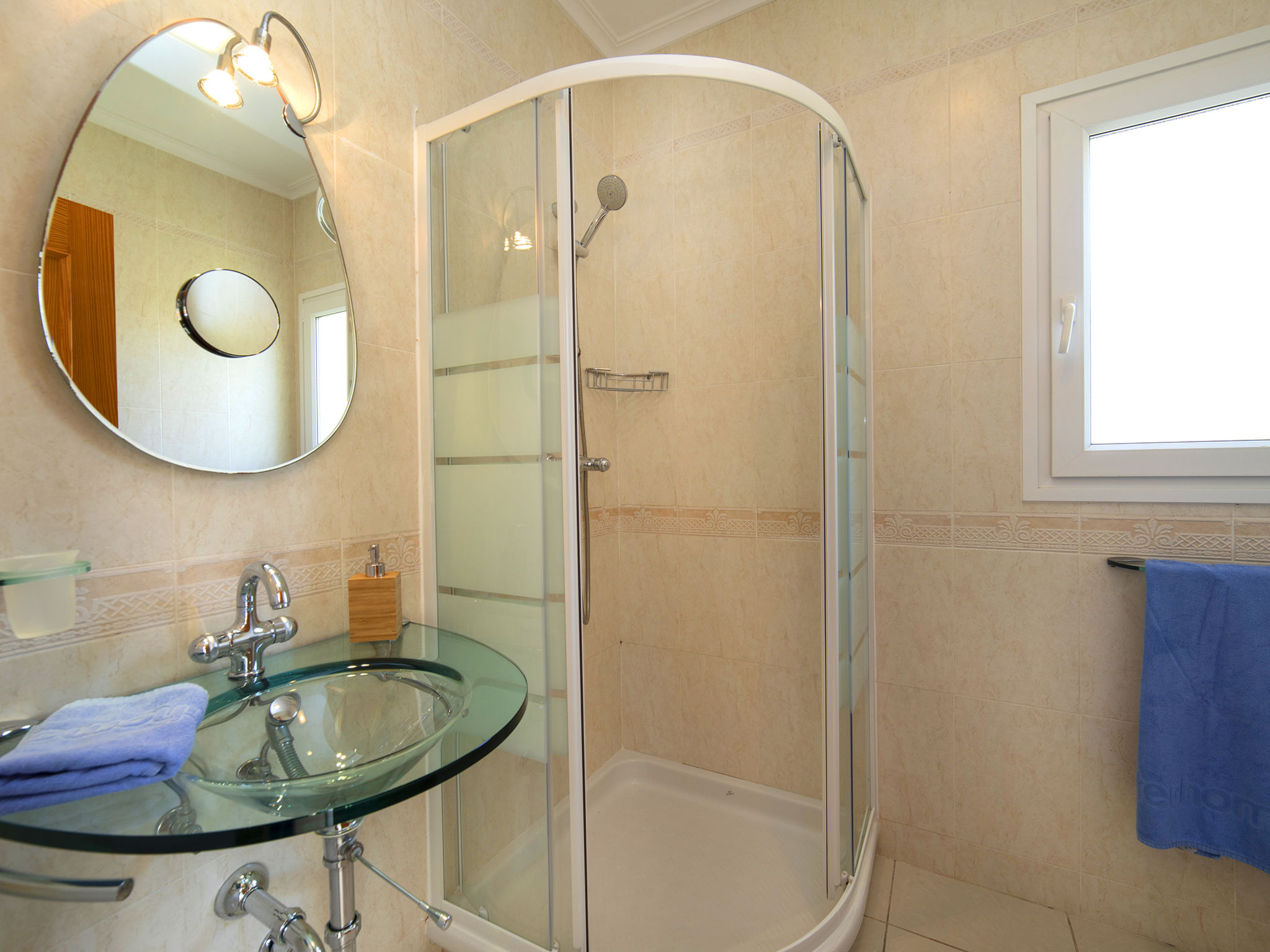 "Fleur", 7-Zimmer-Haus 224 m2 auf 2 Stockwerken. Hell, komfortabel und schön eingerichtet: Wohn-/Esszimmer 30 m2 mit Sat-TV, Digital-TV und Klimaanlage. Ausgang zur Terrasse. 1 Zimmer mit 1 franz. Bett (135 cm, Länge 190 cm), Dusche/WC, Hydromassage-Dusche und Klimaanlage. 2 Zimmer, jedes Zimmer mit 1 franz. Bett (150 cm, Länge 190 cm), Klimaanlage. Küche (Backofen, Geschirrspüler, 4 Glaskeramikherd Platten, Toaster, Wasserkocher, Mikrowelle, Tiefkühler, elektrische Kaffeemaschine). Dusche/WC. Heizung. Obergeschoss: (Aussentreppe) Wohn-/Esszimmer 25 m2 mit Sat-TV, Digital-TV und Klimaanlage. Ausgang zur Terrasse. 1 Zimmer mit 1 franz. Bett (135 cm, Länge 190 cm), Klimaanlage. Ausgang zur Terrasse. 1 Zimmer mit 1 Doppelbett (2 x 80 cm, Länge 190 cm), Klimaanlage. Ausgang zur Terrasse. Offene Küche (Backofen, 4 Glaskeramikherd Platten, Toaster, Wasserkocher, Mikrowelle, Tiefkühler, elektrische Kaffeemaschine). Dusche/WC. Heizung. Grosse Terrasse. Terrassenmöbel, Gartengrill, Liegestühle (10). Zur Verfügung: Waschmaschine, Wäschetrockner, Bügeleisen, Kinderhochstuhl, Babybett bis 2 Jahre, Haartrockner. Internet (Wireless LAN, gratis). Parkplatz beim Haus. R000000001