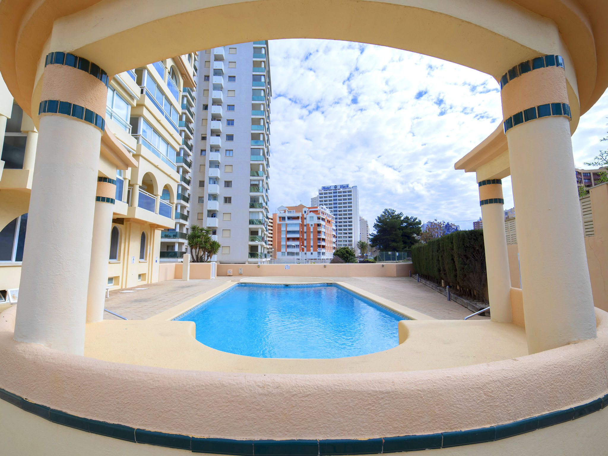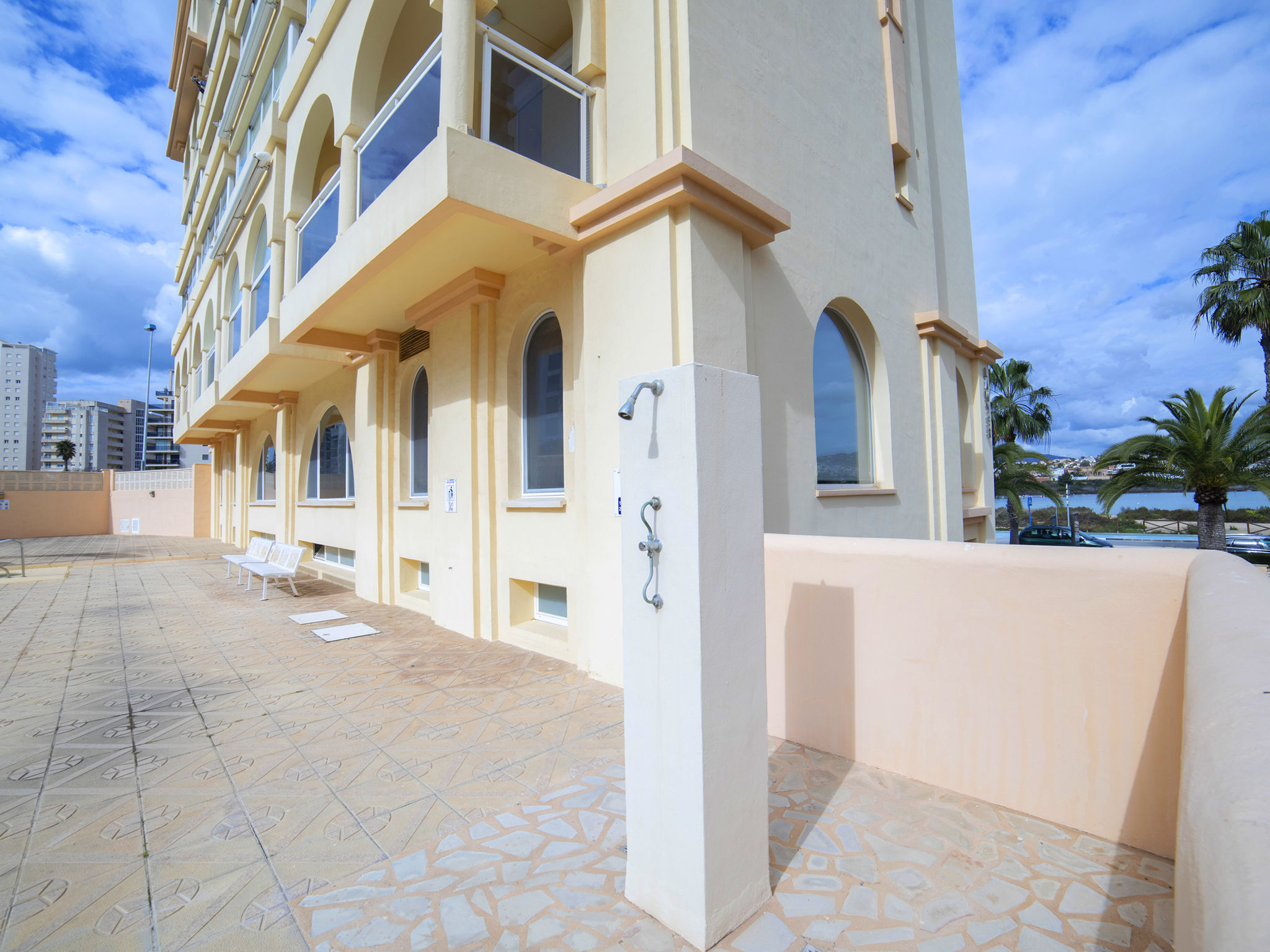 Playa Cantal Roig: Gemütliches Appartementhaus "Saladar". Im Ort, 1.1 km vom Zentrum von Calpe, 500 m vom Meer. Zur Mitbenutzung: Grundstück (eingezäunt), Schwimmbad (saisonale Verfügbarkeit: 01.Mai.-30.Sep.). Kinderbecken, Aussendusche. Im Hause: Fahrstuhl. Parkplatz Nr. 7. Einkaufsgeschäft 600 m, Supermarkt 850 m, Restaurant, Bar 500 m, Bushaltestelle 2.5 km, Bahnstation 3.4 km, Sandstrand 600 m. Sporthafen 1 km, Jacht-Hafen 1 km, Golfplatz (10 Loch) 10 km. Nahe gelegene Sehenswürdigkeiten: Aqualandia, Mundomar, Terra Mítica, Terra Natura, Benidorm Palace en Benidorm.
