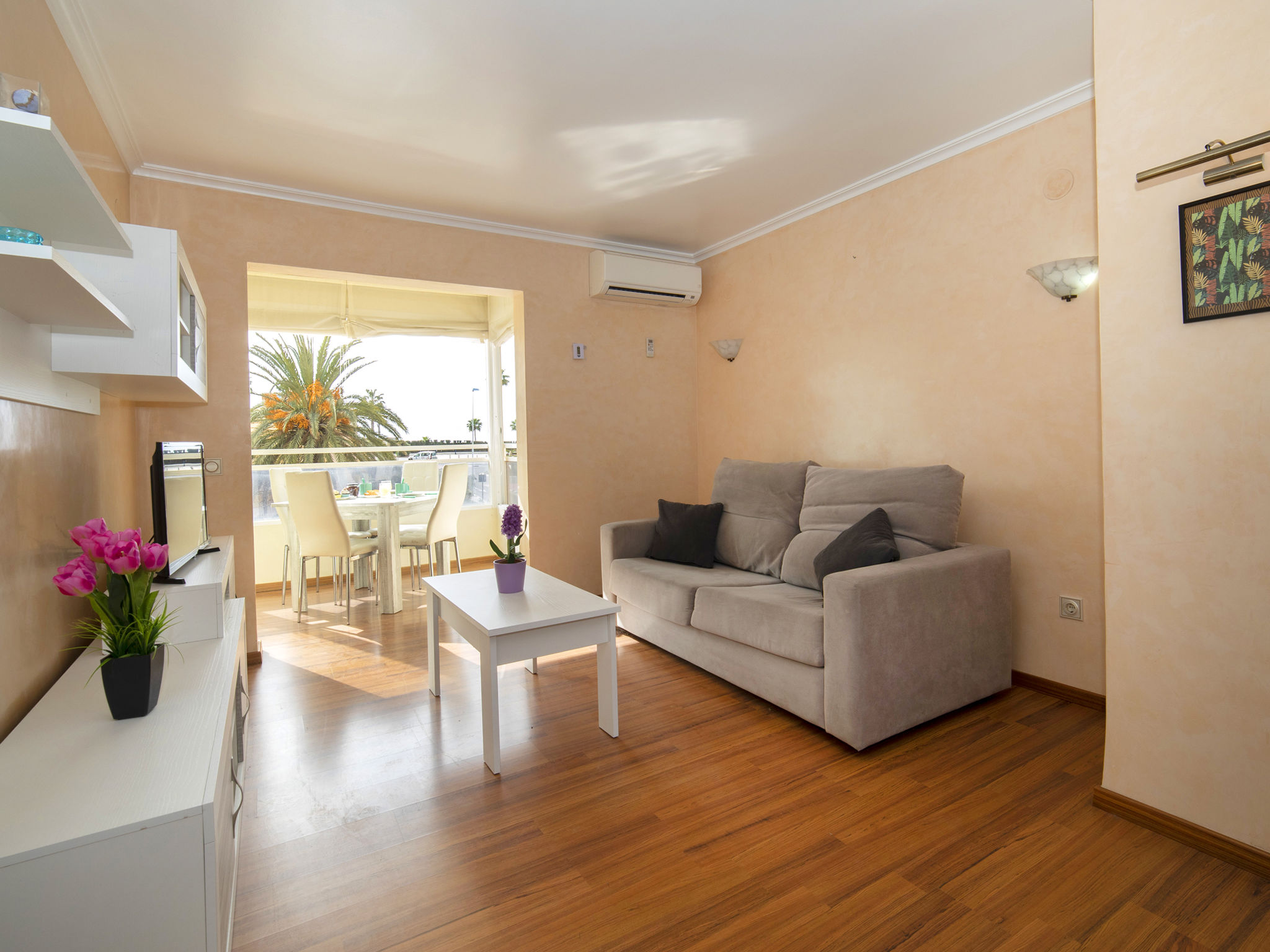 "Saladar", 3-Zimmer-Wohnung 50 m2 im 2. Stock. Komfortabel und gemütlich eingerichtet: Wohn-/Esszimmer mit Digital-TV, Klimaanlage und Warmluftheizung. Ausgang zur Terrasse. 1 Doppelzimmer 12 m2 mit 1 franz. Bett (150 cm, Länge 190 cm). 1 Zimmer 11 m2 mit 2 Betten (90 cm, Länge 190 cm). Offene Küche (Backofen, Geschirrspüler, 4 Glaskeramikherd Platten, 4 Induktionskochplatten, Toaster, Wasserkocher, Mikrowelle, elektrische Kaffeemaschine). Dusche/WC. Zur Verfügung: Waschmaschine, Bügeleisen, Haartrockner. Internet (Wireless LAN). Parkplatz Nr. 7. R0000000001