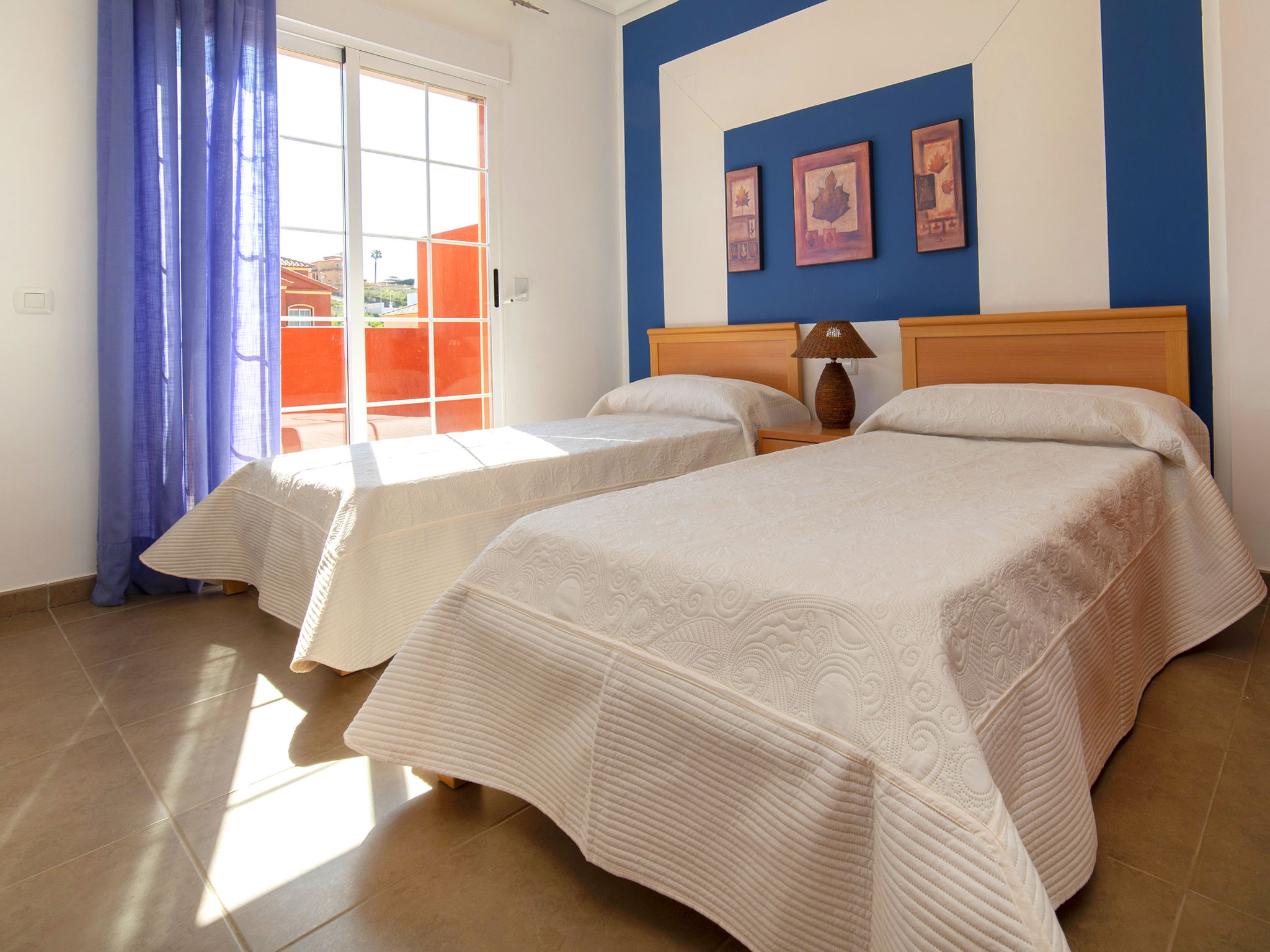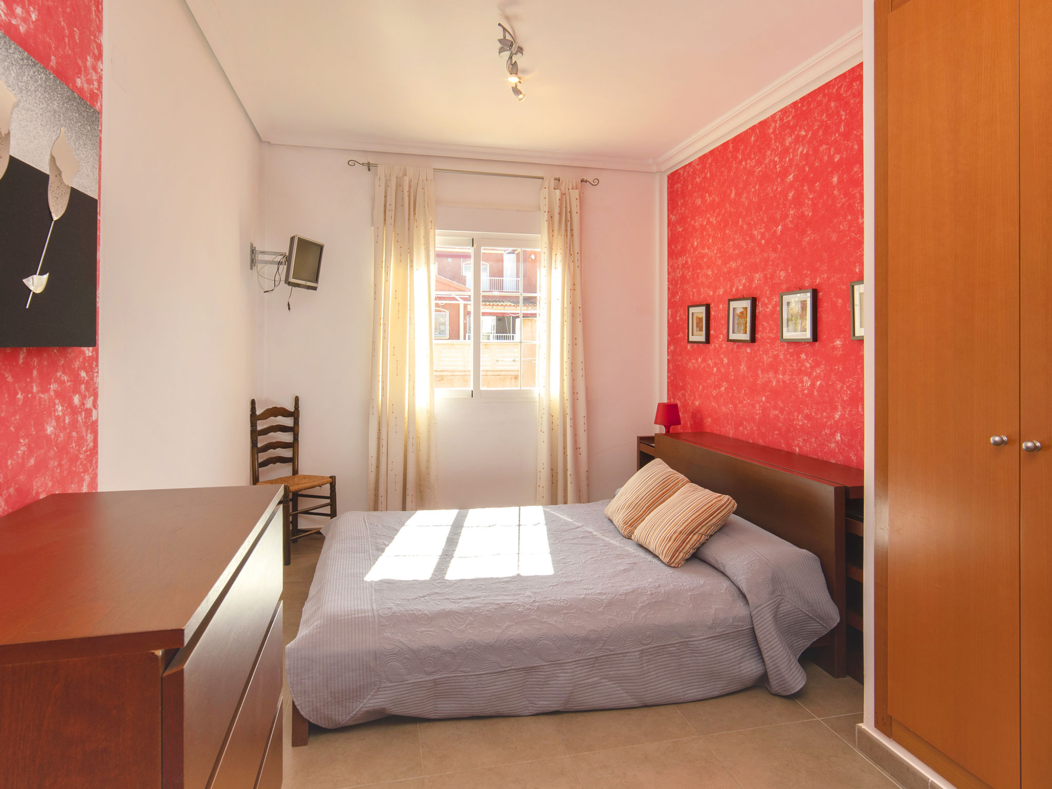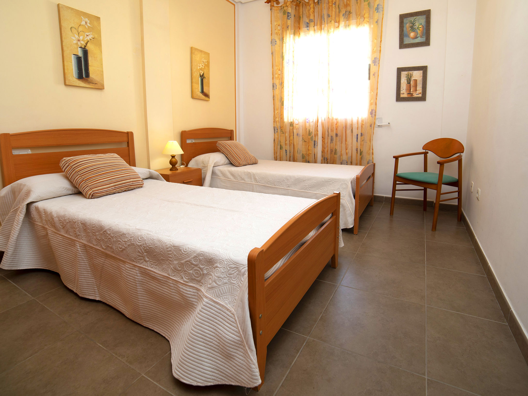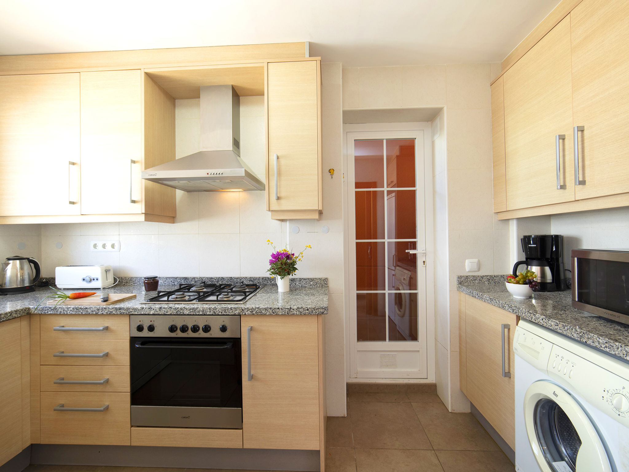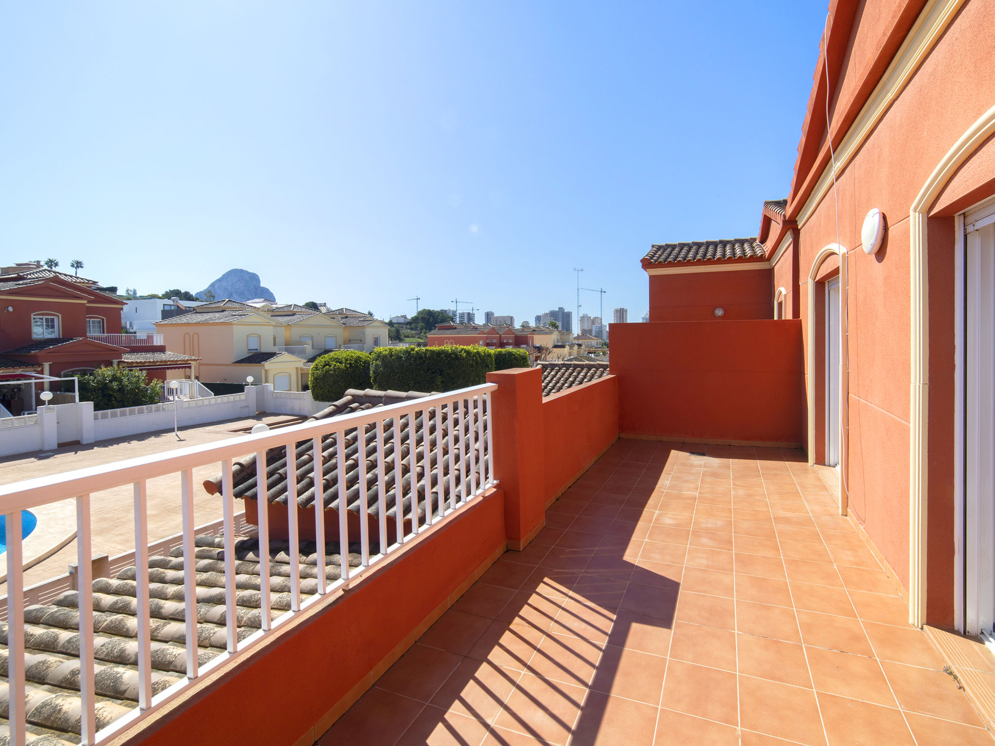 "Jazmines VI", 5-Zimmer-Reihenhaus 214 m2 auf 3 Stockwerken. Geräumig und hell, zweckmässig und komfortabel eingerichtet: offenes Wohn-/Esszimmer mit Sat-TV, Digital-TV, Klimaanlage und Warmluftheizung. Ausgang zur Terrasse. 1 Zimmer mit 1 franz. Bett (150 cm, Länge 200 cm), Dusche/Bidet/WC, Klimaanlage und Warmluftheizung. 1 Zimmer mit 2 Betten (90 cm, Länge 190 cm), Klimaanlage und Warmluftheizung. Küche (Backofen, Geschirrspüler, Toaster, Wasserkocher, Mikrowelle, elektrische Kaffeemaschine). Dusche/WC. Obergeschoss: 1 Zimmer mit 1 franz. Bett (135 cm, Länge 190 cm), Klimaanlage und Warmluftheizung. Ausgang zur Terrasse. 1 Zimmer mit 2 Betten (90 cm, Länge 190 cm), Klimaanlage und Warmluftheizung. Ausgang zur Terrasse. Bad/WC. Grosse Terrasse. Terrassenmöbel, Gartengrill. Zur Verfügung: Waschmaschine, Bügeleisen, Kinderhochstuhl, Babybett bis 2 Jahre, Haartrockner. Garage (2 Autos). Geeignet für Familien. R000000001