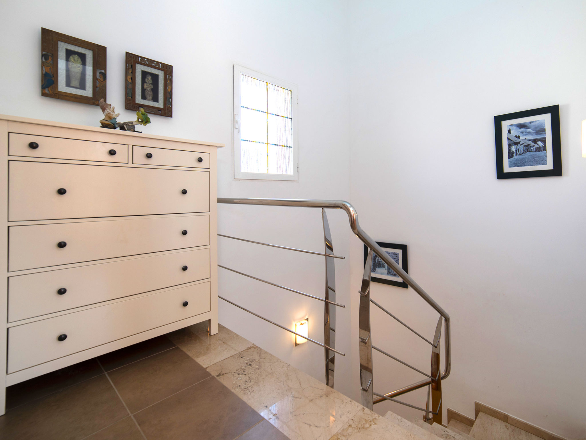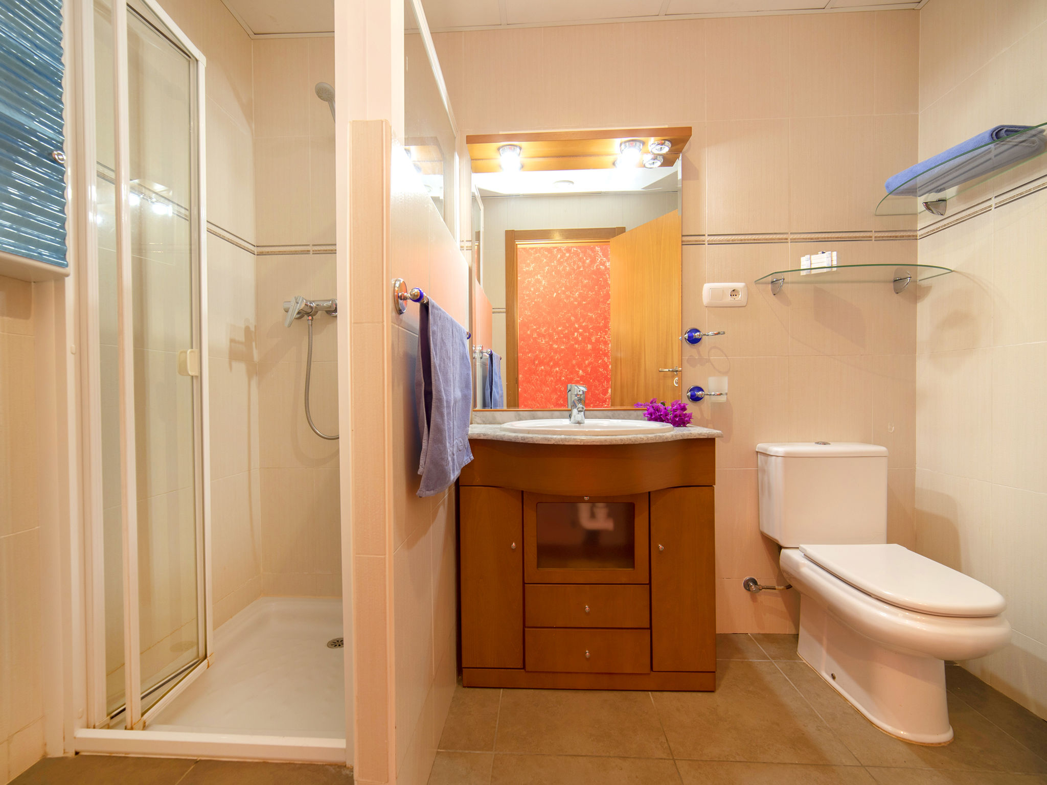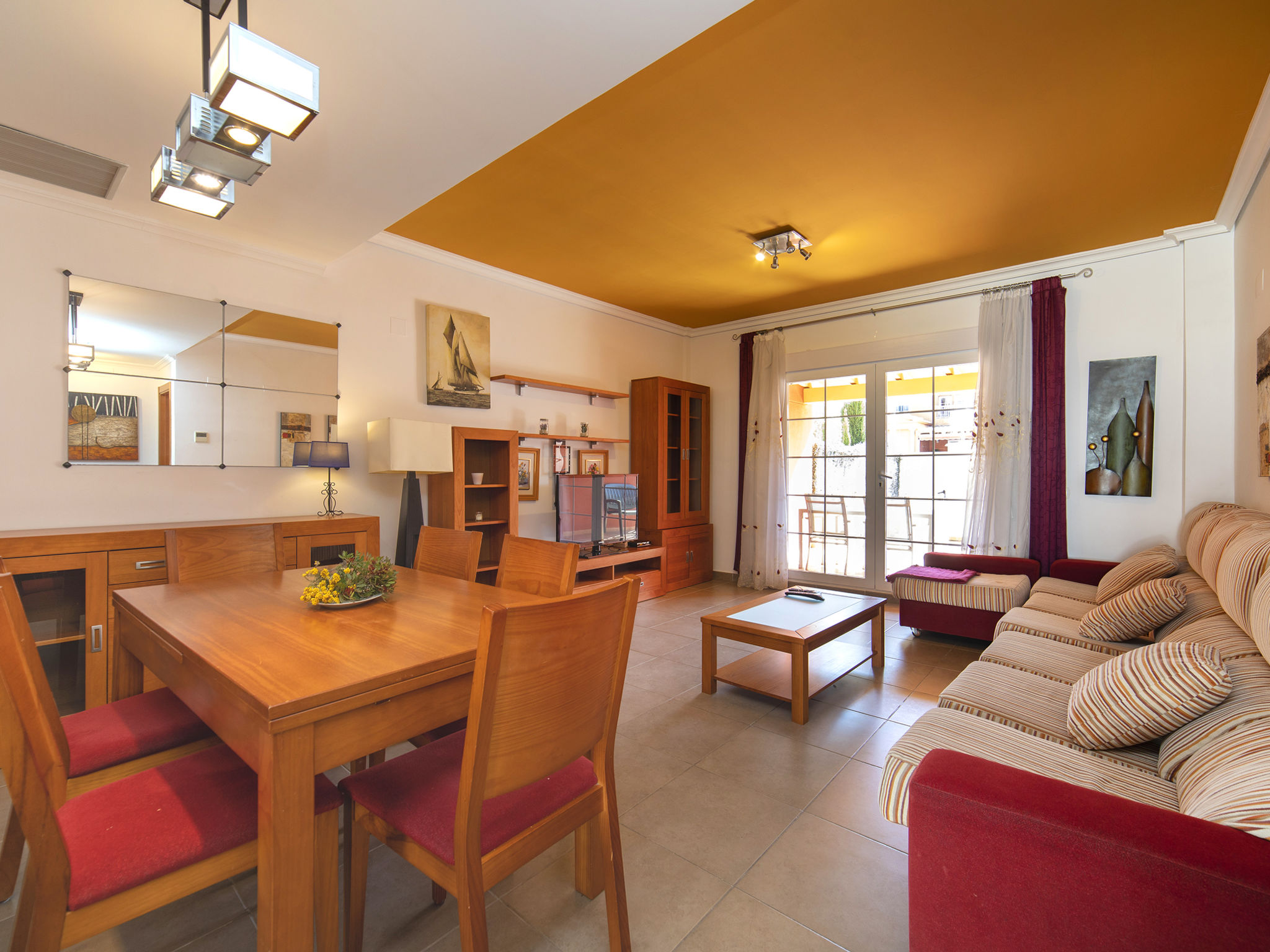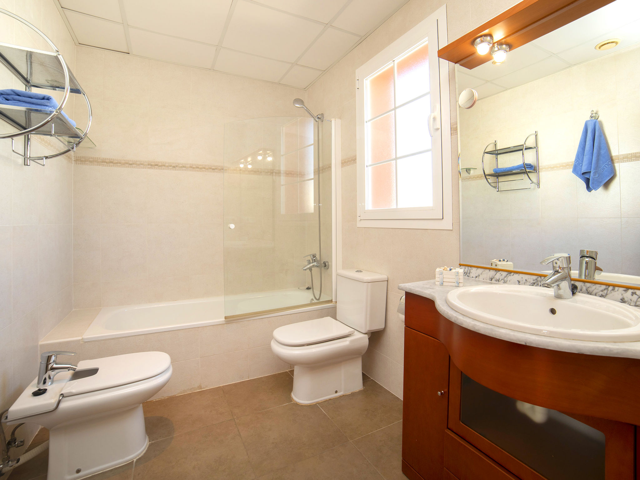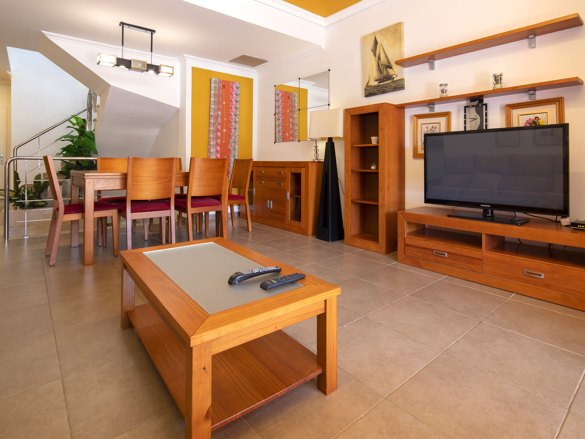 "Jazmines VI", 5-Zimmer-Reihenhaus 214 m2 auf 3 Stockwerken. Geräumig und hell, zweckmässig und komfortabel eingerichtet: offenes Wohn-/Esszimmer mit Sat-TV, Digital-TV, Klimaanlage und Warmluftheizung. Ausgang zur Terrasse. 1 Zimmer mit 1 franz. Bett (150 cm, Länge 200 cm), Dusche/Bidet/WC, Klimaanlage und Warmluftheizung. 1 Zimmer mit 2 Betten (90 cm, Länge 190 cm), Klimaanlage und Warmluftheizung. Küche (Backofen, Geschirrspüler, Toaster, Wasserkocher, Mikrowelle, elektrische Kaffeemaschine). Dusche/WC. Obergeschoss: 1 Zimmer mit 1 franz. Bett (135 cm, Länge 190 cm), Klimaanlage und Warmluftheizung. Ausgang zur Terrasse. 1 Zimmer mit 2 Betten (90 cm, Länge 190 cm), Klimaanlage und Warmluftheizung. Ausgang zur Terrasse. Bad/WC. Grosse Terrasse. Terrassenmöbel, Gartengrill. Zur Verfügung: Waschmaschine, Bügeleisen, Kinderhochstuhl, Babybett bis 2 Jahre, Haartrockner. Garage (2 Autos). Geeignet für Familien. R000000001