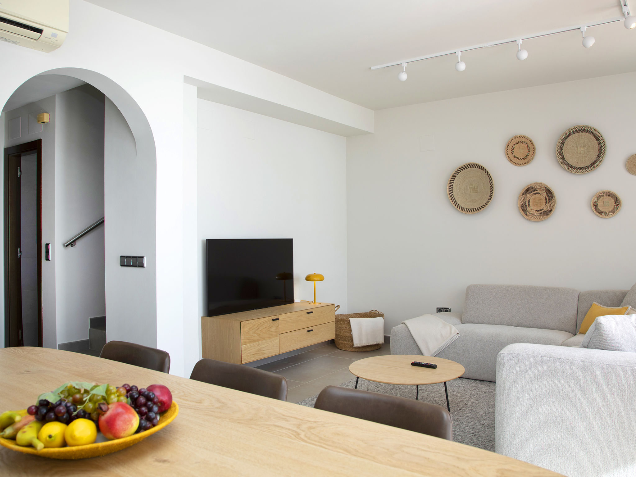 "Mirador de Les Bassetes", 4-Zimmer-Doppelhaushälfte 157 m2 auf 2 Stockwerken. Objekt geeignet für 4 Erwachsene + 2 Kinder. Geräumig und hell, schön und gemütlich eingerichtet: offenes Wohn-/Esszimmer mit Digital-TV, Klimaanlage und Warmluftheizung. Ausgang zur Terrasse, zum Schwimmbad. Offene Küche (Backofen, Geschirrspüler, 3 Induktionskochplatten, Toaster, Wasserkocher, Mikrowelle, elektrische Kaffeemaschine). Sep. WC. Heizung, Klimaanlage, Warmluftheizung. Obergeschoss: 1 Zimmer mit 1 Doppelbett (1 x 180 cm, Länge 200 cm), Bad/WC, Klimaanlage und Warmluftheizung. 1 Zimmer mit 1 Doppelbett (1 x 180 cm, Länge 200 cm), Klimaanlage und Warmluftheizung. 1 Zimmer mit 2 Betten (90 cm, Länge 200 cm), Klimaanlage und Warmluftheizung. Dusche/WC. Grosse Terrasse. Terrassenmöbel, Gartengrill, Liegestühle. Eingeschränkte Sicht auf das Meer und die Ortschaft. Zur Verfügung: Waschmaschine, Bügeleisen, Kinderhochstuhl, Babybett bis 2 Jahre, Haartrockner. Internet (Wireless LAN, gratis). Parkplatz. Bitte beachten: geeignet für Familien. Nichtraucher-Haus. R000000001