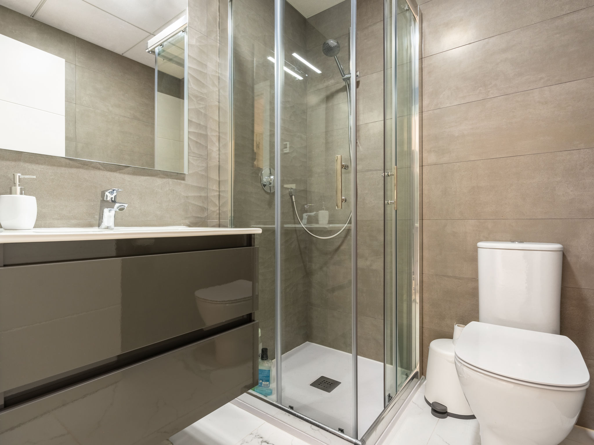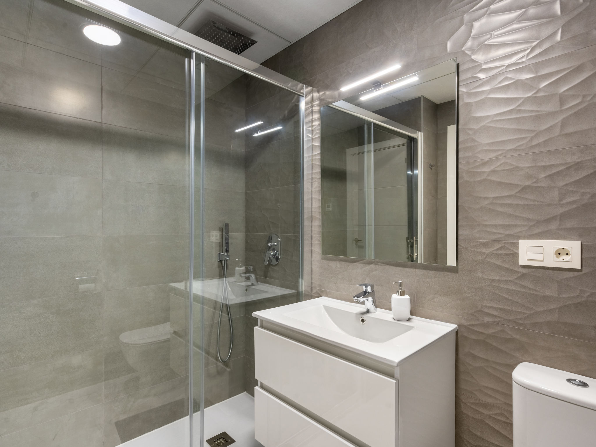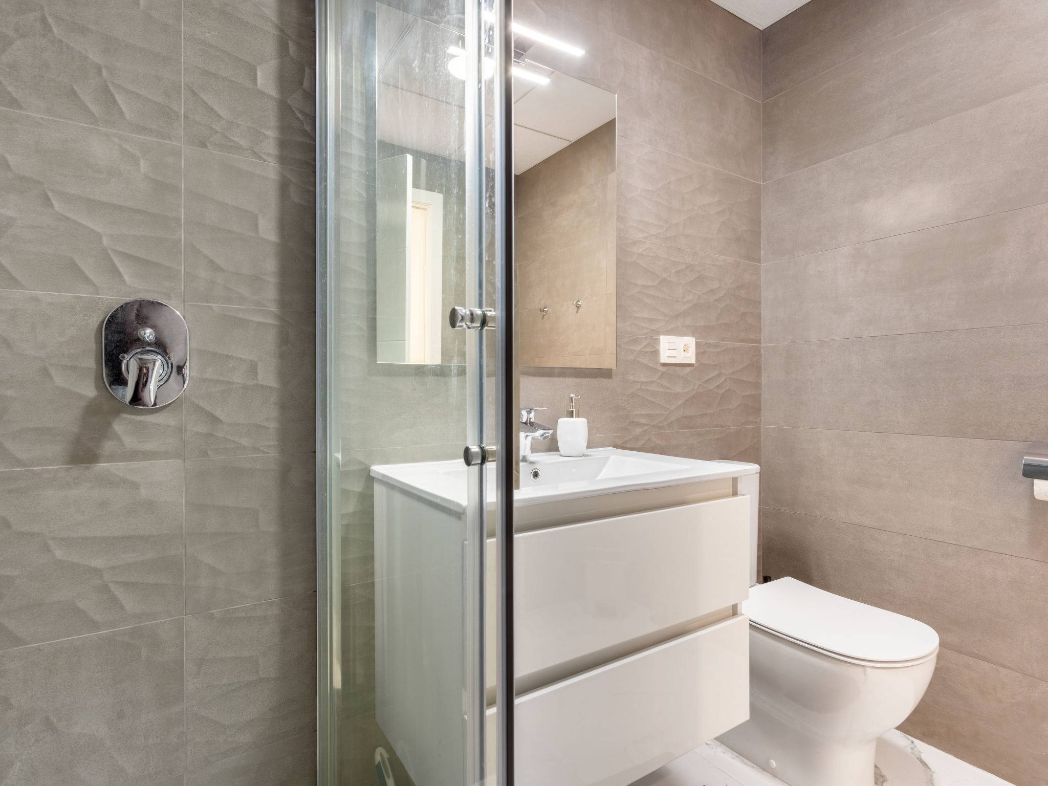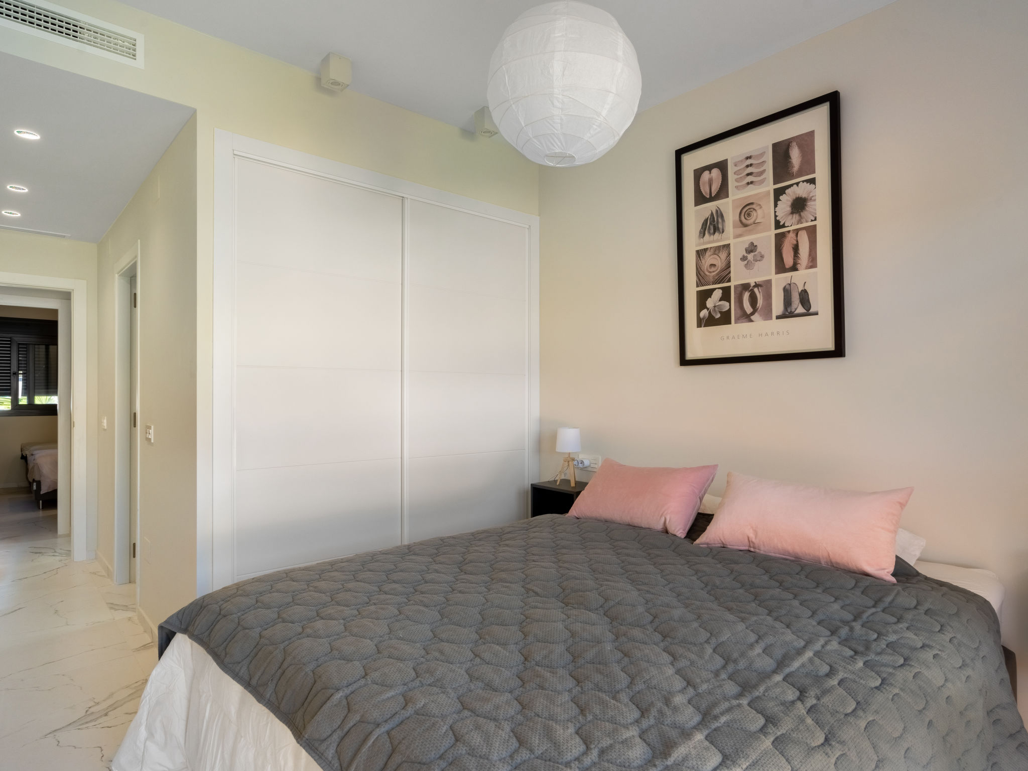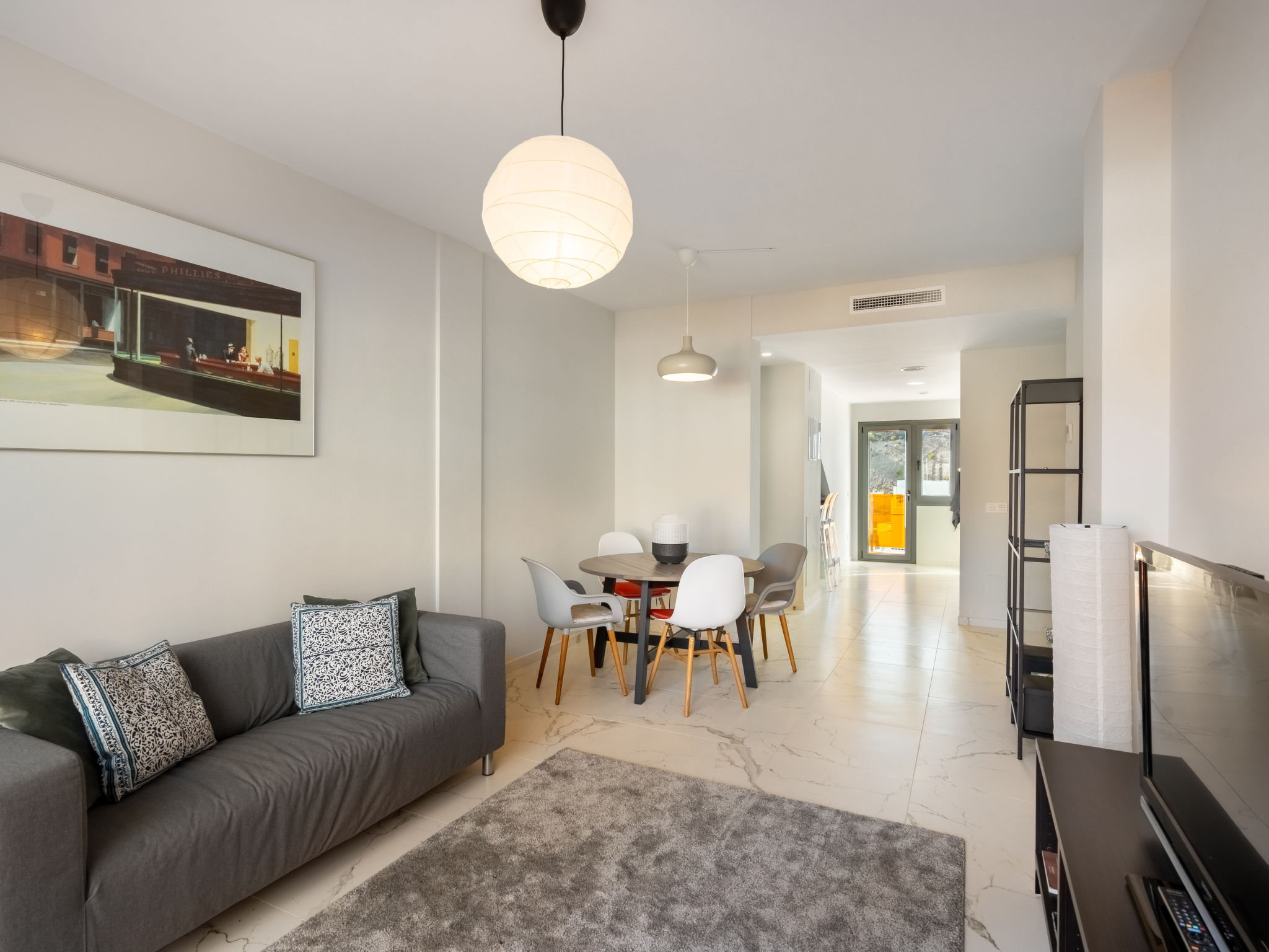 Modernes, komfortables Appartementhaus "Alegría Village", auf 3 Stockwerken, Baujahr 2021. Am Ortsrand, 4 km vom Zentrum von Benidorm, ausserhalb des Ortes, 2 km vom Zentrum von Finestrat, alleinstehende, ruhige, sonnige Lage, 4 km vom Meer, 4 km vom Strand. Zur Mitbenutzung: Grundstück (eingezäunt), Terrassengarten mit Rasen, Schwimmbad (7 x 20 m, 50 - 170 cm tief, saisonale Verfügbarkeit: 01.Jan.-31.Dez.). Aussendusche, Sitzplatz, Kinderspielplatz, Parkplatz auf dem Grundstück. Supermarkt 2 km, Restaurant 2 km, Bar 2 km. Golfplatz (9 Loch) 2 km, Wanderwege ab Haus 300 m. Nahe gelegene Sehenswürdigkeiten: Aqualandia 14 km, MundoMar 14 km, Terramítica 6 km, Terranatura 6 km, Alicante 44 km, Aeropuerto Alicante 58 km. Bitte beachten: kein Fahrstuhl vorhanden. Der Besitzer akzeptiert keine Jugendgruppen. Die Nachbarschaft ist sehr lärmempfindlich. Ruhe und gutes Benehmen wird erwartet.