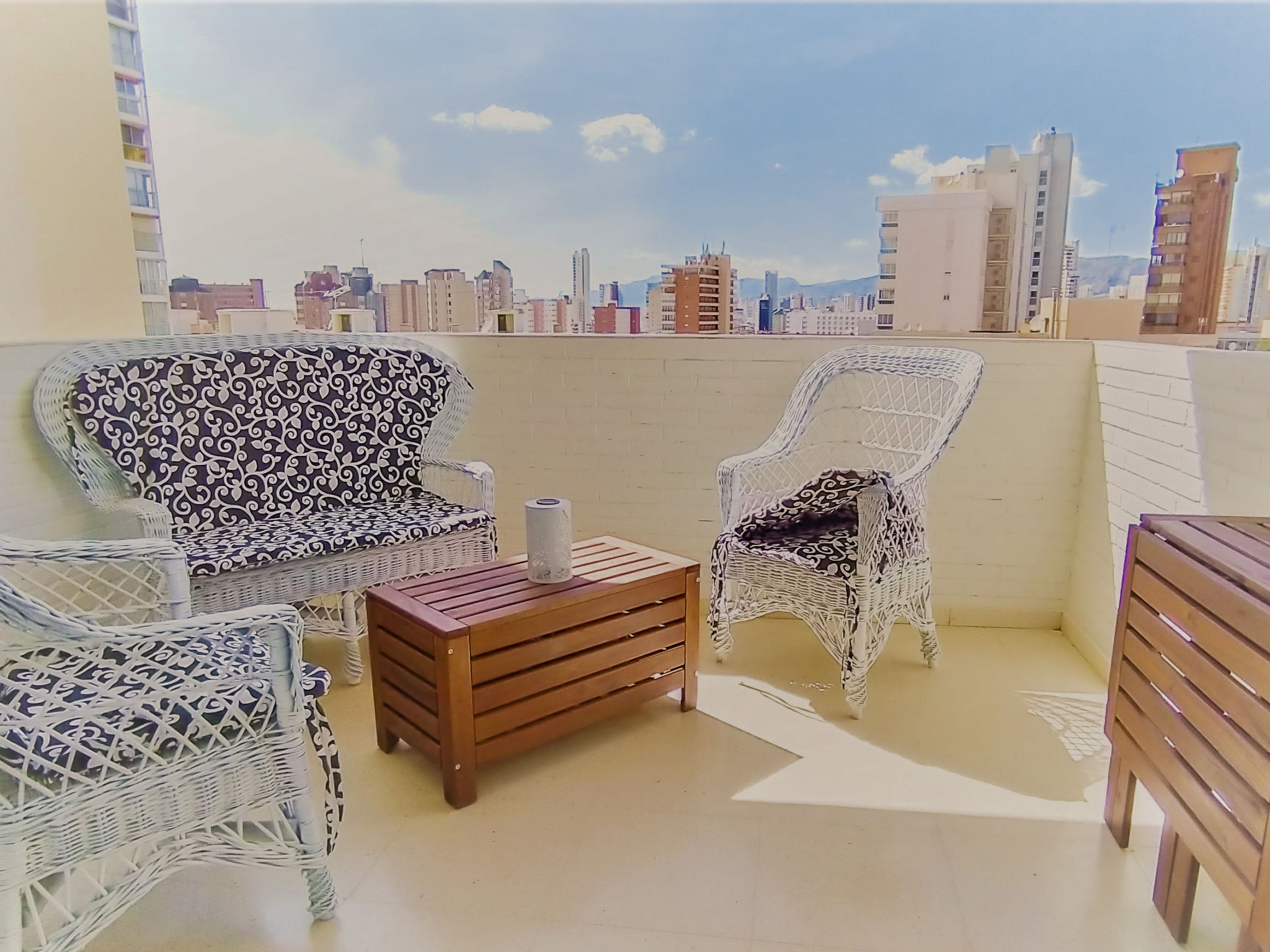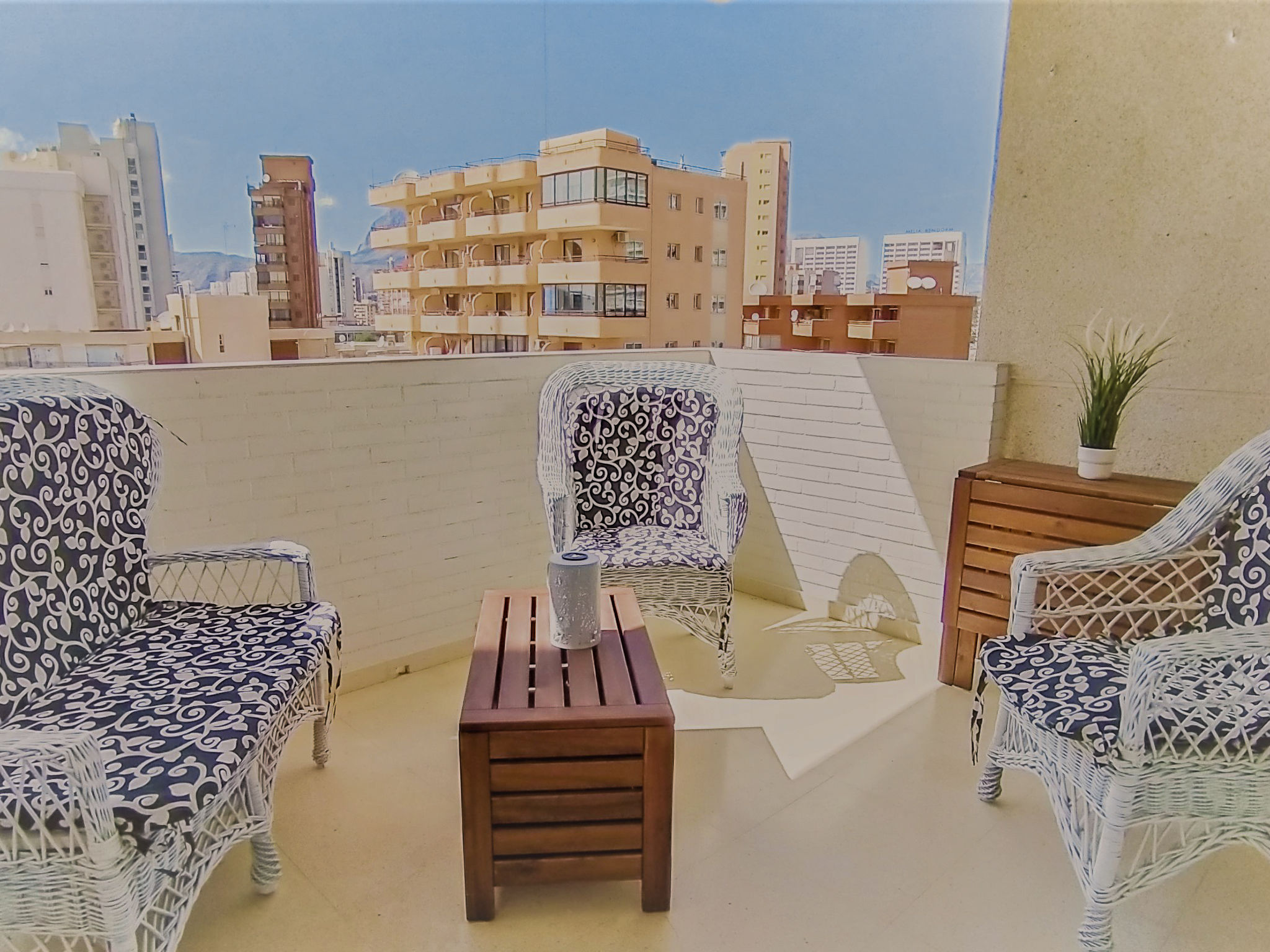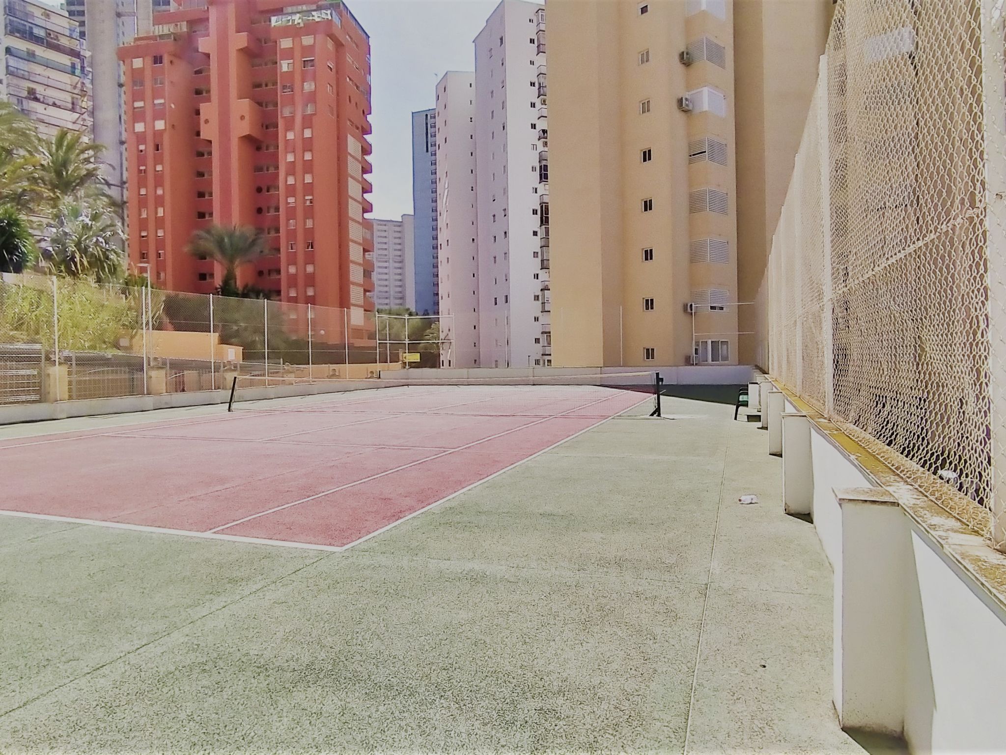 Playa Levante: Grosses Appartementhaus "Vacanza Torre San Marino", auf 26 Stockwerken. Im Bezirk Rincon De Loix, belebte, sonnige Lage am Hang, 800 m vom Meer, 800 m vom Strand. Zur Mitbenutzung: Grundstück (eingezäunt) mit Rasen und Pflanzen, Schwimmbad (20 x 20 m, 50 - 180 cm tief, saisonale Verfügbarkeit: 01.Jun.-30.Sep.). Kinderbecken, Aussendusche, Tennis (extra). In der Anlage: Fahrstuhl. Parkplatz auf dem Grundstück. Supermarkt 50 m, Restaurant 100 m, Bushaltestelle "Benidorm" 200 m, Bahnstation "Benidorm" 4 km. Golfplatz (18 Loch) 6 km, Wanderwege ab Haus 300 m. Nahe gelegene Sehenswürdigkeiten: Aqualandia 2 km, Mundomar 2 km, Benidorm Palace 2 km, Terra Mitica 6 km, Terra Natura 6 km, Alicante 40 km. Der Besitzer akzeptiert keine Jugendgruppen. Die Nachbarschaft ist sehr lärmempfindlich. Ruhe und gutes Benehmen wird erwartet.