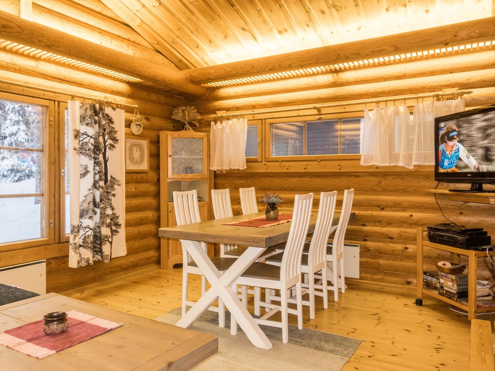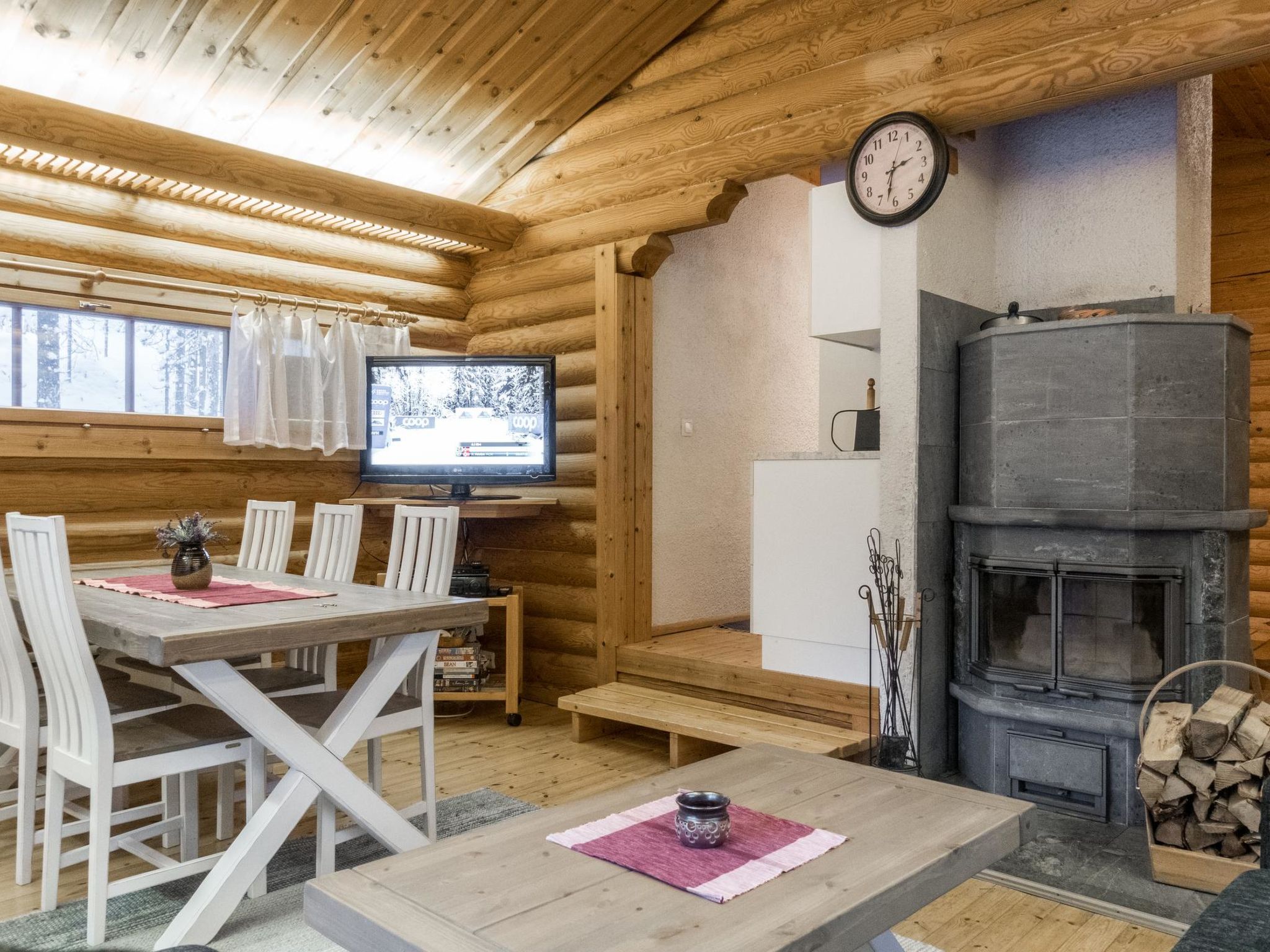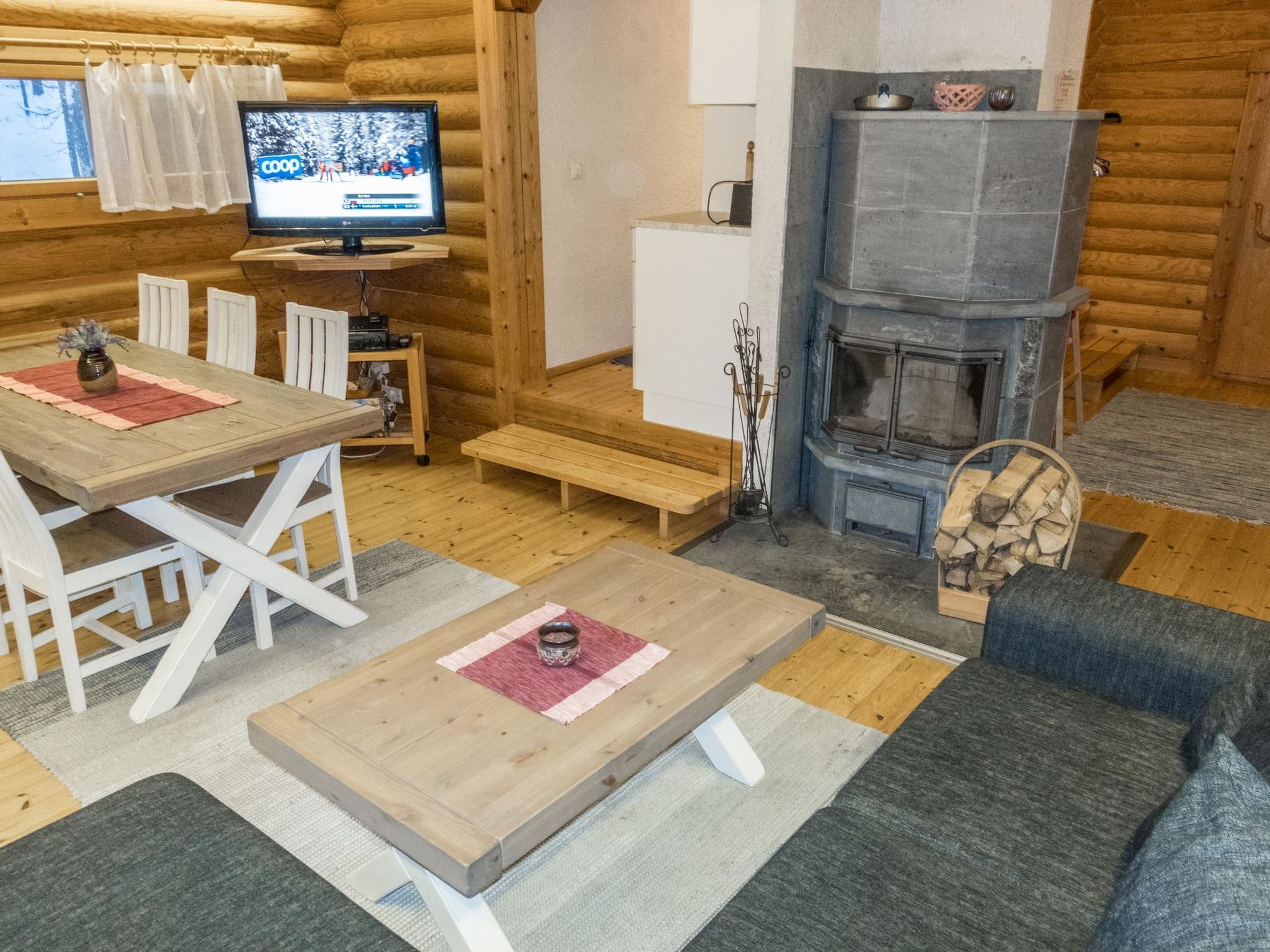 Maximal 1 Haustier/Hund erlaubt. Geräumige Blockhütte neben der Skipiste, am Fuße des Fjälls Sallatunturi. Etwas mehr als einen Kilometer zum Spa und den Skipisten. Rundblockhaus, Baujahr 1991. Wohnzimmer mit Schlafcouch, Schlafzimmer mit Doppelbett, ein weiteres Schlafzimmer mit Etagenbett (Breite 120 cm), Schlafzimmer mit Schlafboden (mit 2 Matratzen), Sauna, Waschraum und separatem WC. Küchenmöbel wurde im Jahr 2010 renoviert. Die Dienstleistungen des Touristenzentrums von Sallatunturi sind etwas mehr als einen Kilometer entfernt. Die nächste Skipiste erreichen Sie nach 1,4 km und die Sporthalle Salla nach 1,5 km. Kurhotel 1,2 km. Öffentlicher Badestrand mit Grill- und Feuerstelle in Hütte und Freibad in 2,2 km Entfernung. Rentierpark von Salla 3 km, Dienstleistungen des Gemeindezentrums von Salla 11 km.