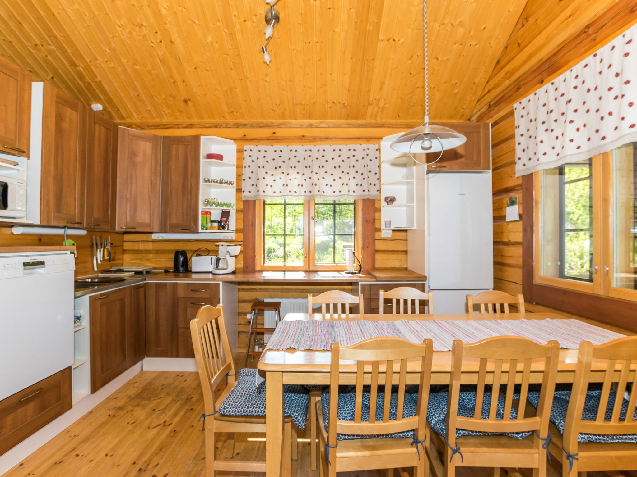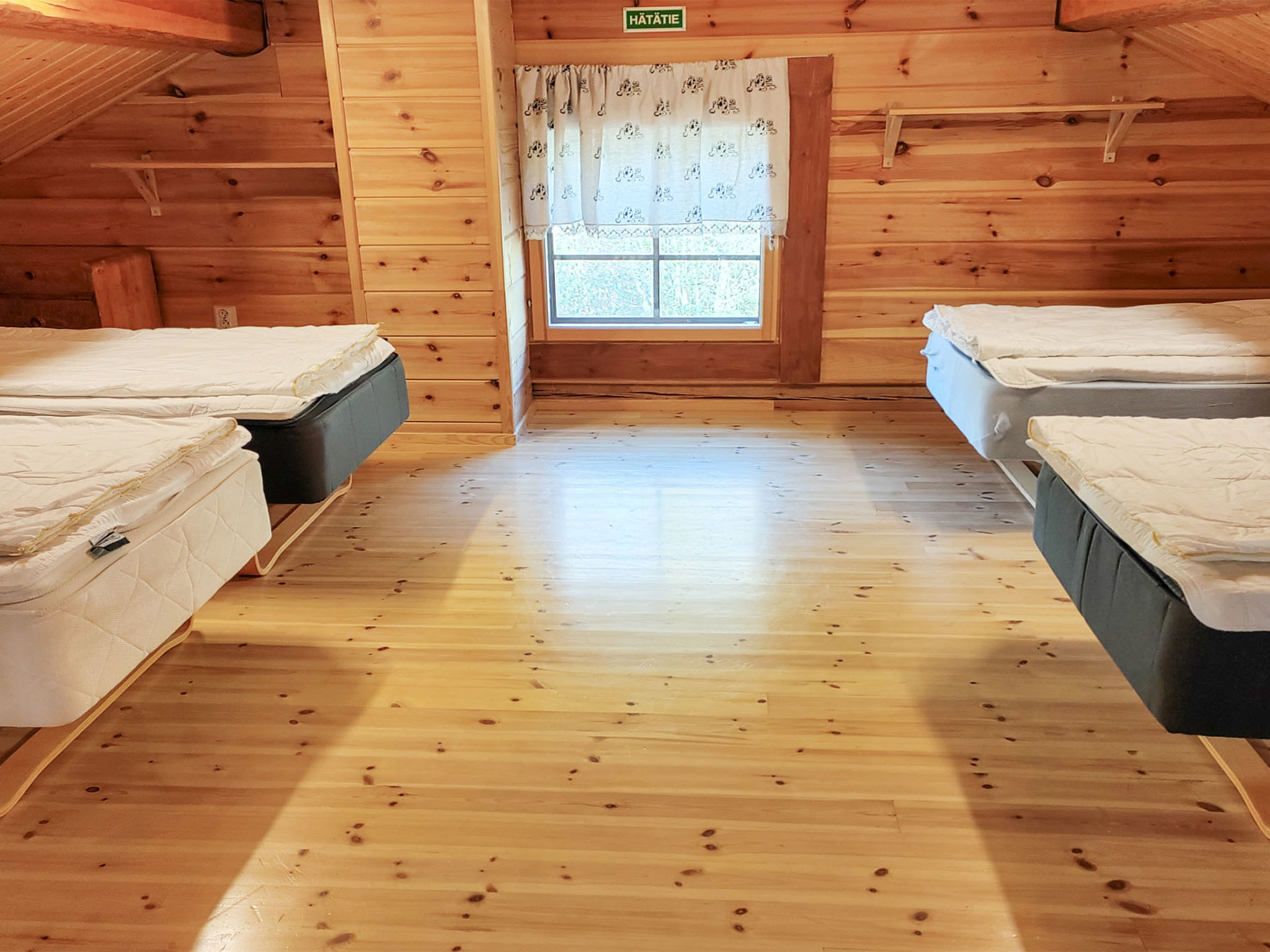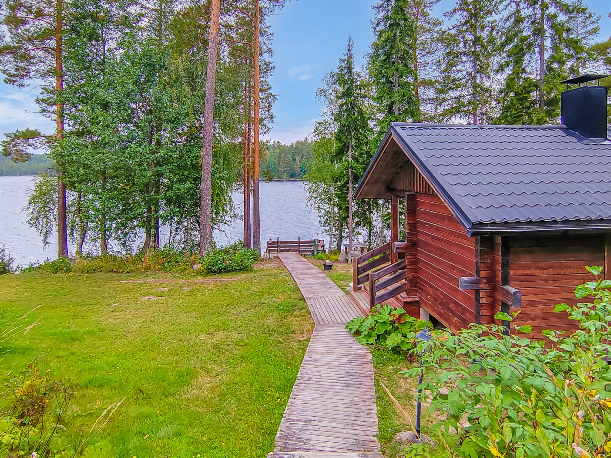 Maximal 2 Haustiere/Hunde erlaubt. Dieses Haus befindet sich in sehr ruhigen Lage, geeignet für Familienurlaub oder größere Gruppe. Es gibt Betten für bis zu 12 Personen. Haustiere gegen Aufpreis erlaubt, 25 € / Haustier. Der Nationalpark Leivonmäki liegt 10 km entfernt. 46 km von Jyväskylä, See Kivijärvi 35 m, zwei Anlegestellen, zwei Ruderboote und Kanu. Blockhaus, Baujahr 2012, Wohnzimmer mit 2 Schlafsofas (Bettmaße aufgeklappt, 140x190 cm), Wohnküche, Waschraum mit WC, Schlafzimmer 1: Doppelbett und ausziehbares Kinderbett, Schlafzimmer 2: zwei Betten, Dachboden mit 4 Betten. Außerdem befinden sich vier Schlafplätze im Nebengebäude im Hof. Das Nebengebäude ist nicht beheizt, Betten im Nebengebäude werden nicht als Betten gezählt. Die maximale Gästezahl beträgt 12 Personen. Seesauna (holzbeheizter Saunaofen), überdachter Kochbereich. Geräumiges und sonniges Grundstück. Die Seesauna hat eigenen Steg und am anderen Ende des Grundstücks gibt es flachen Sandstrand und separaten Steg. Im Hof gibt es viel Platz für Spiele im Freien und angenehmen Zeitvertreib. Nationalpark Leivonmäki, 10 km. Geschäft und Restaurant in Toivakka, 18 km. Letkaliiteri (Veranstaltungen und Live-Musik an Sommerwochenenden), 4,5 km.