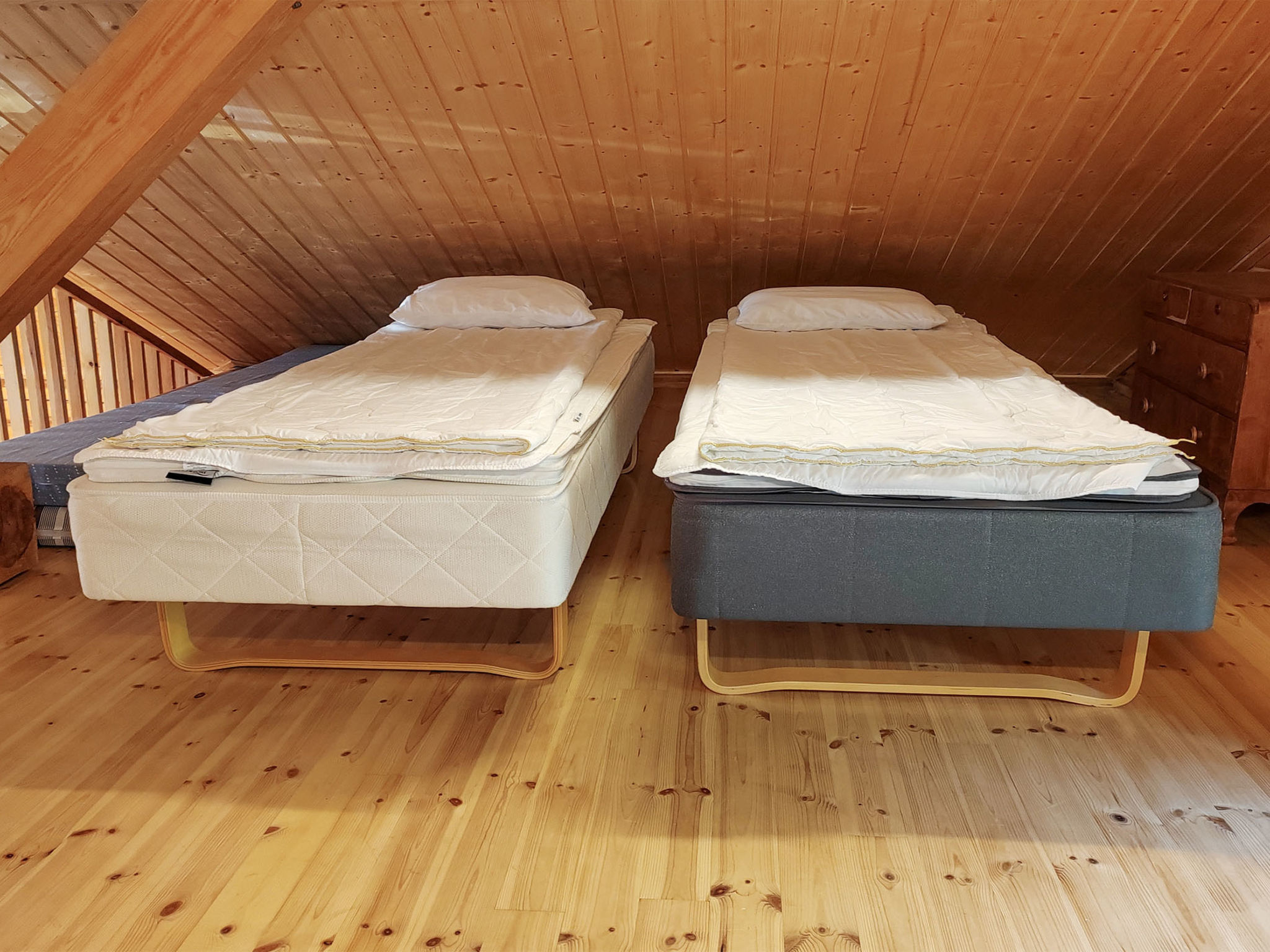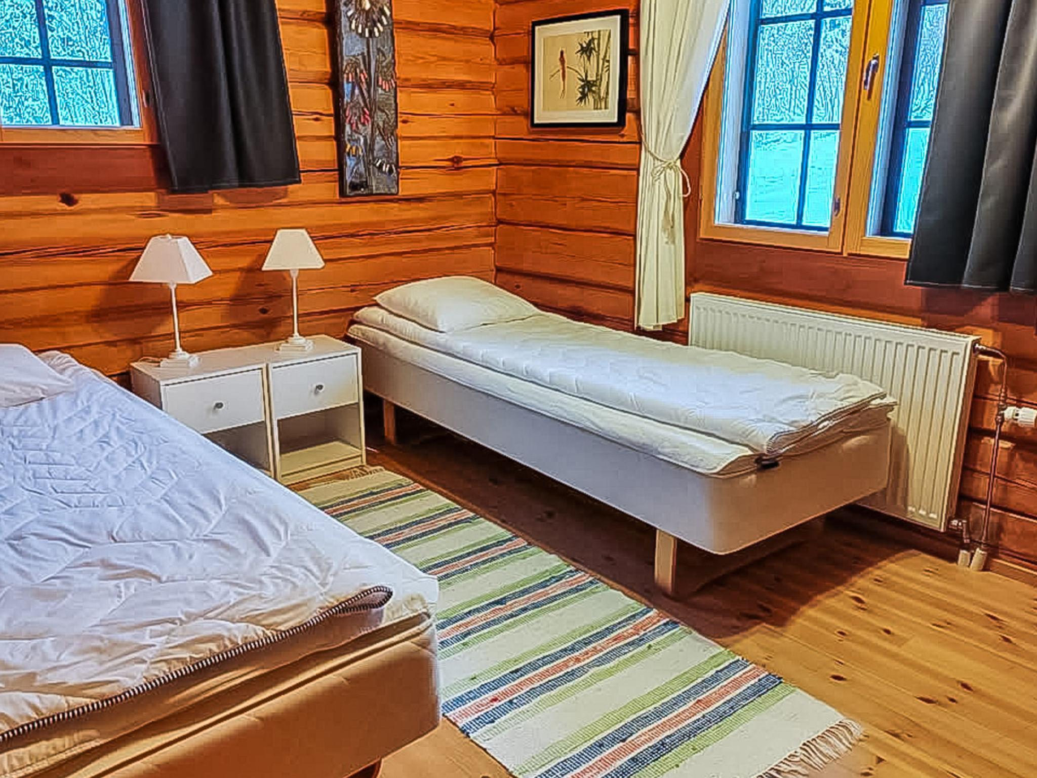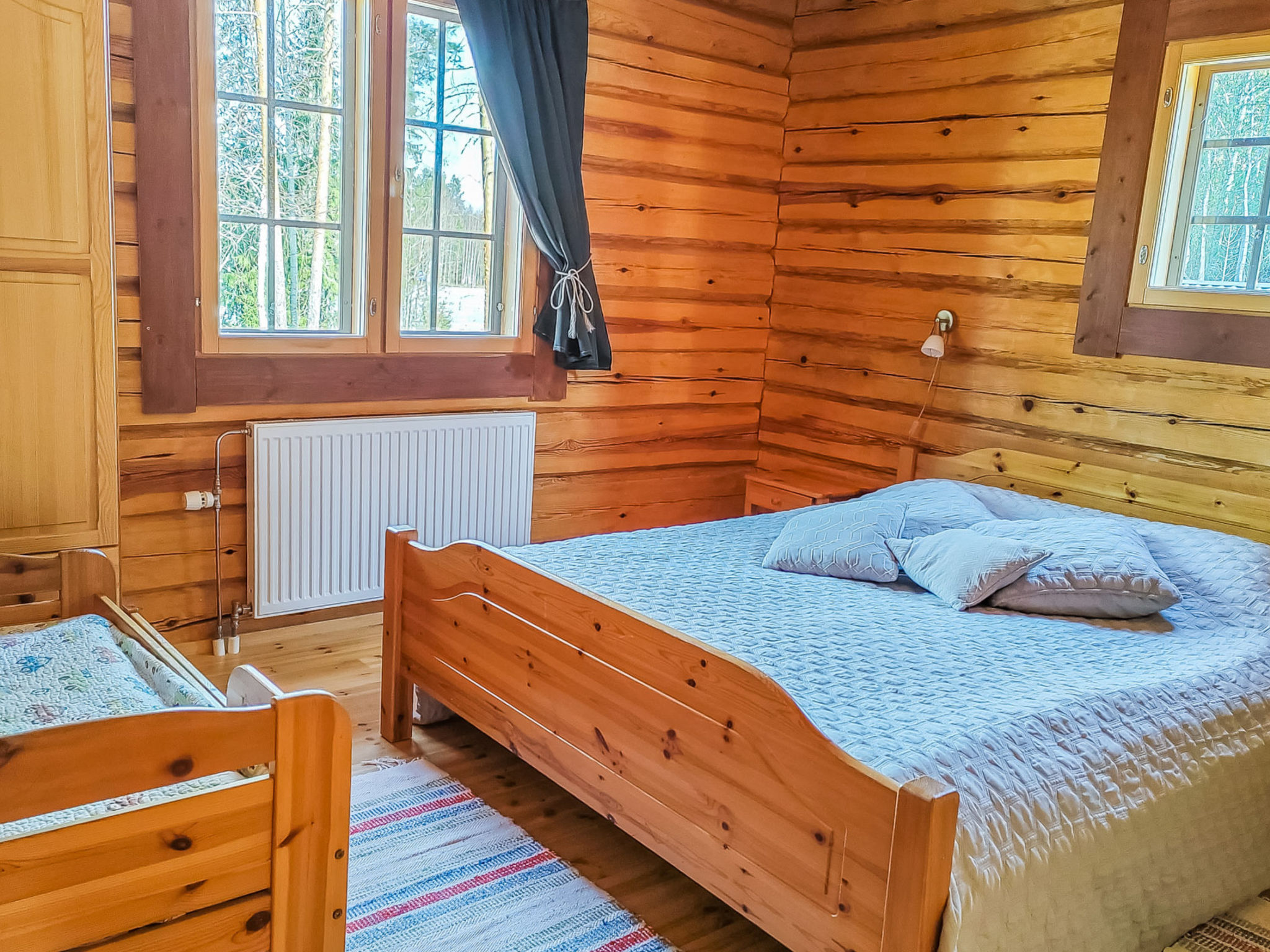 Maximal 2 Haustiere/Hunde erlaubt. Dieses Haus befindet sich in sehr ruhigen Lage, geeignet für Familienurlaub oder größere Gruppe. Es gibt Betten für bis zu 12 Personen. Haustiere gegen Aufpreis erlaubt, 25 € / Haustier. Der Nationalpark Leivonmäki liegt 10 km entfernt. 46 km von Jyväskylä, See Kivijärvi 35 m, zwei Anlegestellen, zwei Ruderboote und Kanu. Blockhaus, Baujahr 2012, Wohnzimmer mit 2 Schlafsofas (Bettmaße aufgeklappt, 140x190 cm), Wohnküche, Waschraum mit WC, Schlafzimmer 1: Doppelbett und ausziehbares Kinderbett, Schlafzimmer 2: zwei Betten, Dachboden mit 4 Betten. Außerdem befinden sich vier Schlafplätze im Nebengebäude im Hof. Das Nebengebäude ist nicht beheizt, Betten im Nebengebäude werden nicht als Betten gezählt. Die maximale Gästezahl beträgt 12 Personen. Seesauna (holzbeheizter Saunaofen), überdachter Kochbereich. Geräumiges und sonniges Grundstück. Die Seesauna hat eigenen Steg und am anderen Ende des Grundstücks gibt es flachen Sandstrand und separaten Steg. Im Hof gibt es viel Platz für Spiele im Freien und angenehmen Zeitvertreib. Nationalpark Leivonmäki, 10 km. Geschäft und Restaurant in Toivakka, 18 km. Letkaliiteri (Veranstaltungen und Live-Musik an Sommerwochenenden), 4,5 km.