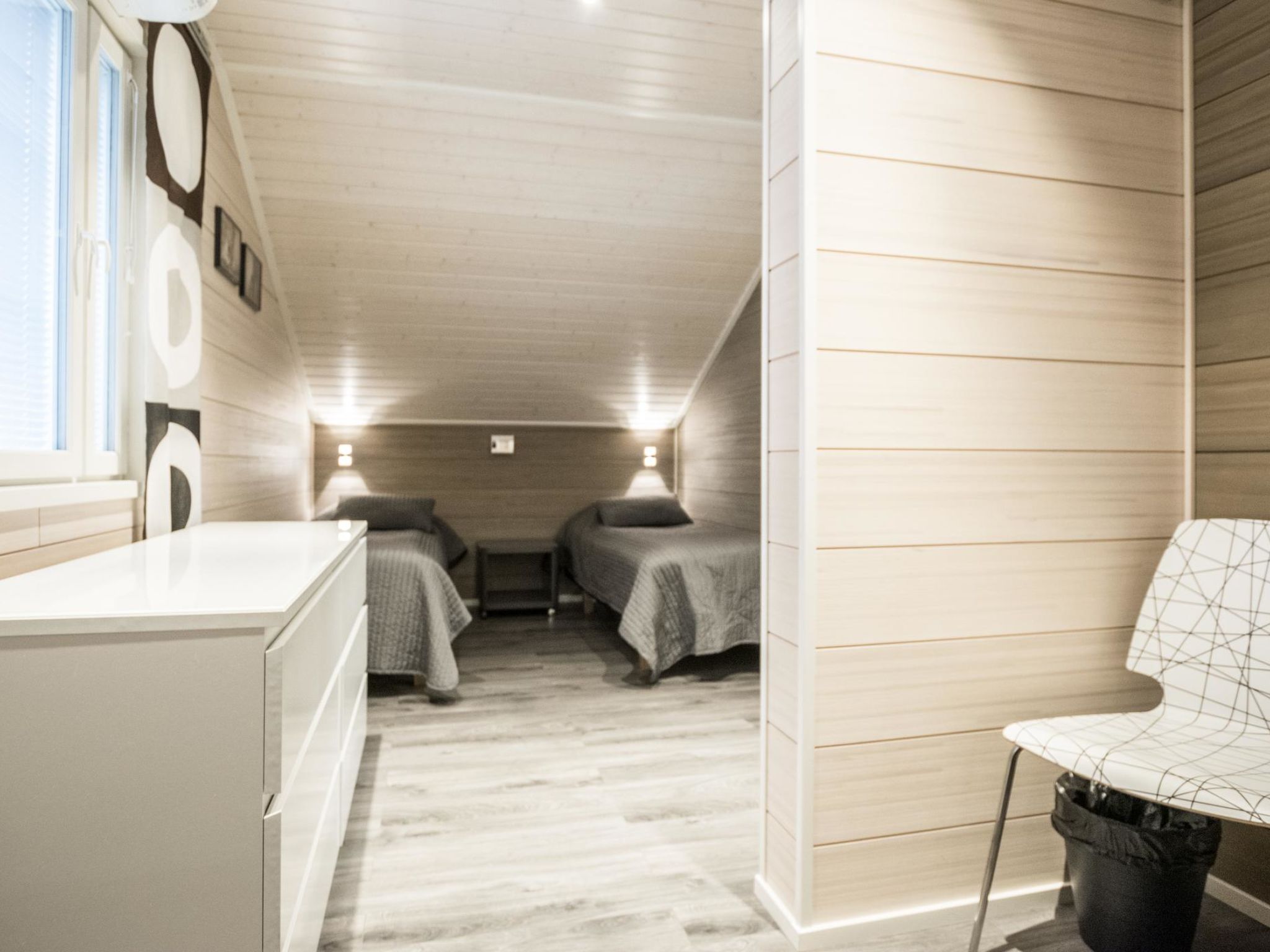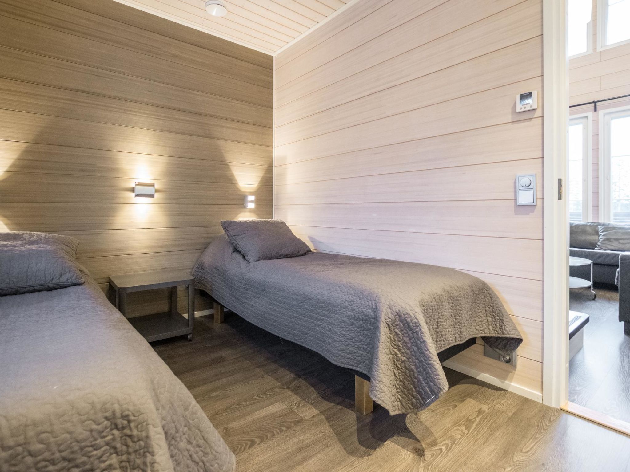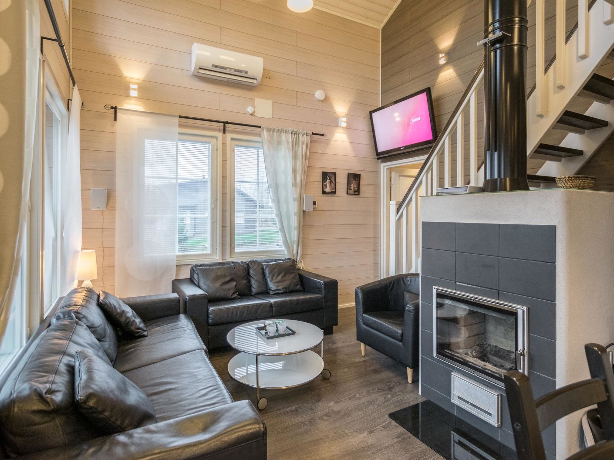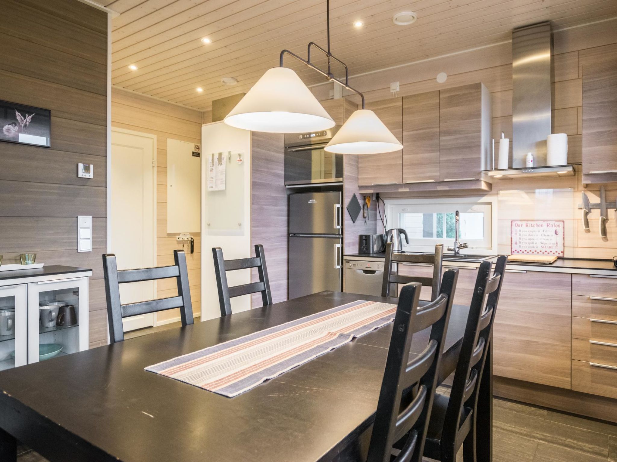 Maximal 2 Haustiere/Hunde erlaubt. 50 km südlich von Jyväskylä, See Patalahti 400 m, öffentlicher Strand zur Mitbenutzung. Eine voll ausgestattete zweistöckige Villa, im Skizentrum Himos (Baujahr 2013). Erdgeschoss: Wohnküche, Schlafzimmer mit 2 Betten, Sauna (Elektroherd), Badezimmer, WC, überdachte Terrasse und überdachte Veranda. Obergeschoss: Schlafzimmer mit 2 Betten, Schlafzimmer mit 4 Betten (die Betten sind als 2 Doppelbetten aufgestellt. Es gibt eine Trennwand, die Privatsphäre schafft), Toilette. Die Villa ist unter anderem ausgestattet mit: Lüftung mit Wärmerückgewinnung, Luftwärmepumpe mit Kühlfunktion im Ober- und Untergeschoss, Breitband-Internetzugang, Zentralstaubsauger, Wasch-Trockner-Kombination, ferngesteuerte Hausautomation, Zutrittskontrolle innen und aussen, Einbruchmeldeanlage, Kohlenmonoxid- und Brandmeldeanlage. In der Küche gibt es zusätzlich zur Standardausstattung Induktionsherd und Kombiofen. Haustiere sind unter den folgenden Bedingungen gegen eine Haustiergebühr von 65 e erlaubt (bitte zu Ihrer Reservierung hinzufügen, wenn Sie ein Haustier dabei haben): - 1 Haustier ist erlaubt - Hund oder Katze - Hunde und Katzen sind auf der Couch, im Bett und in der Sauna nicht erlaubt - Die maximale Widerristhöhe des Hundes beträgt 60 cm - Der Tierhalter haftet für Schäden an Eigentum, Möbeln oder anderen Einrichtungsgegenständen, die durch das Tier verursacht werden. Hochwertiges und voll ausgestattetes gemütliches Ferienhaus in der Nähe aller Himos-Dienstleistungen. Die Lage ist ruhig und doch sind alle Annehmlichkeiten leicht zu erreichen, HimosArena 500 m, Skilift 500 m, Golfplatz 500 m. Nebenan befindet sich eine identische Villa 11596 (wenn Sie auch Villa 11596 buchen, ist der Ort für größere Gruppen mit maximal 16 Personen geeignet). Der nächste Nachbar ist ca. 100 Meter entfernt. Die Innenausstattung der Villa Nummenranta wurde mit den bestmöglichen Produkten auf umweltfreundliche Weise hergestellt.