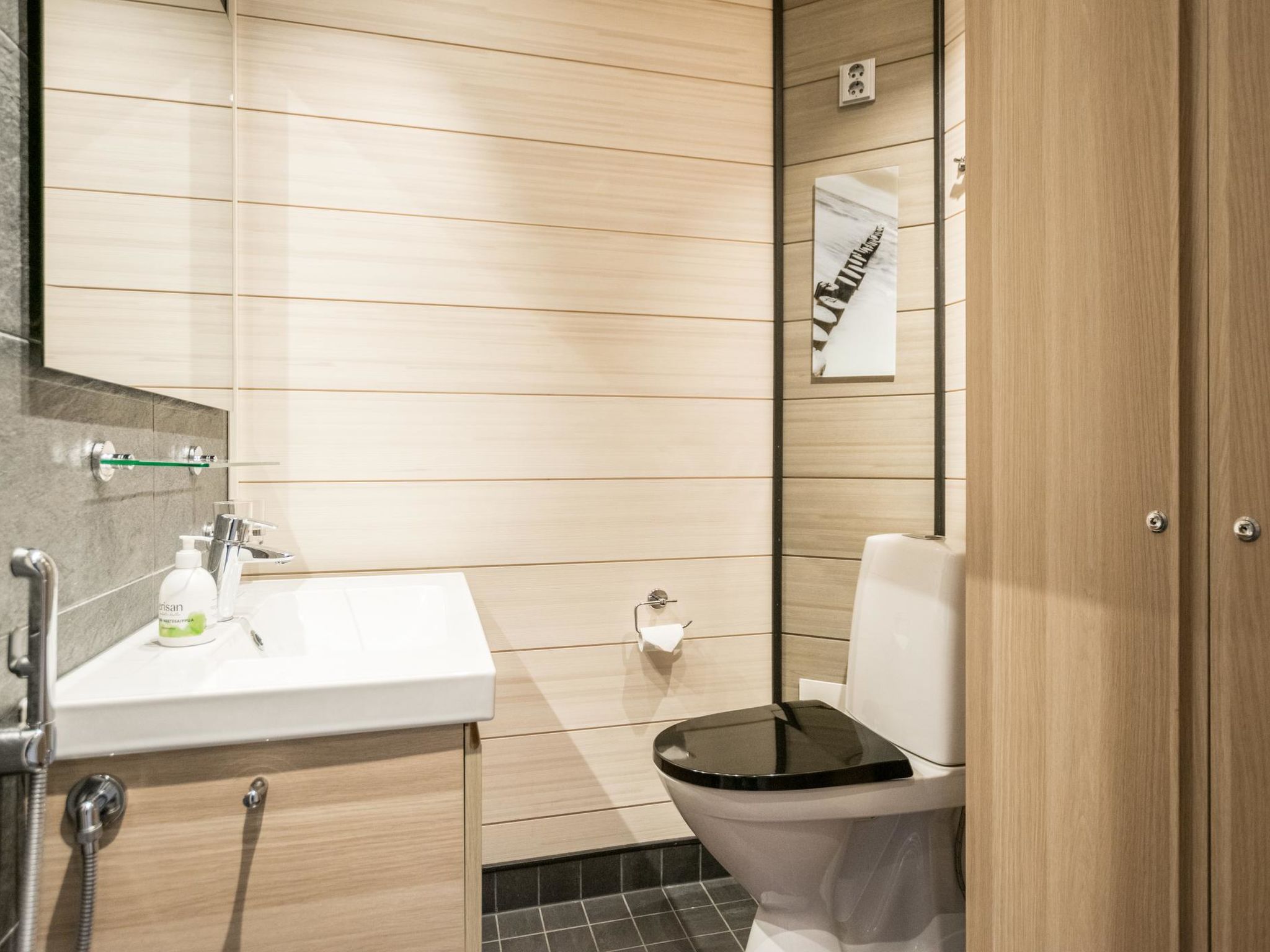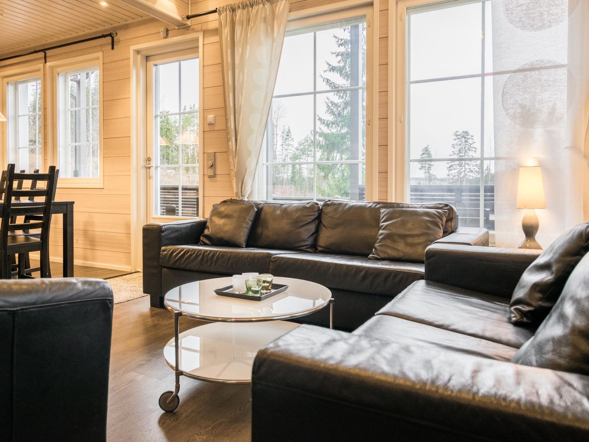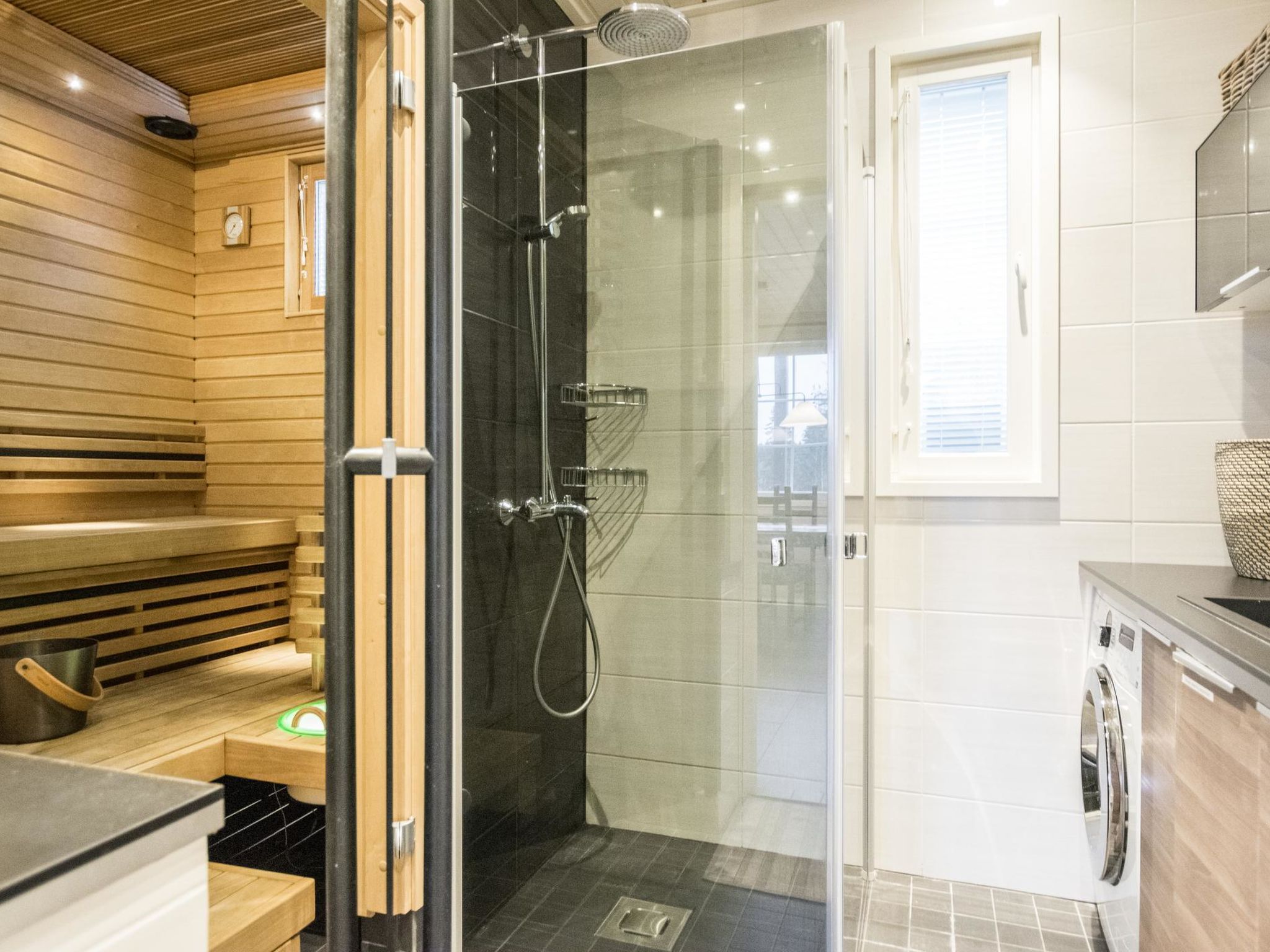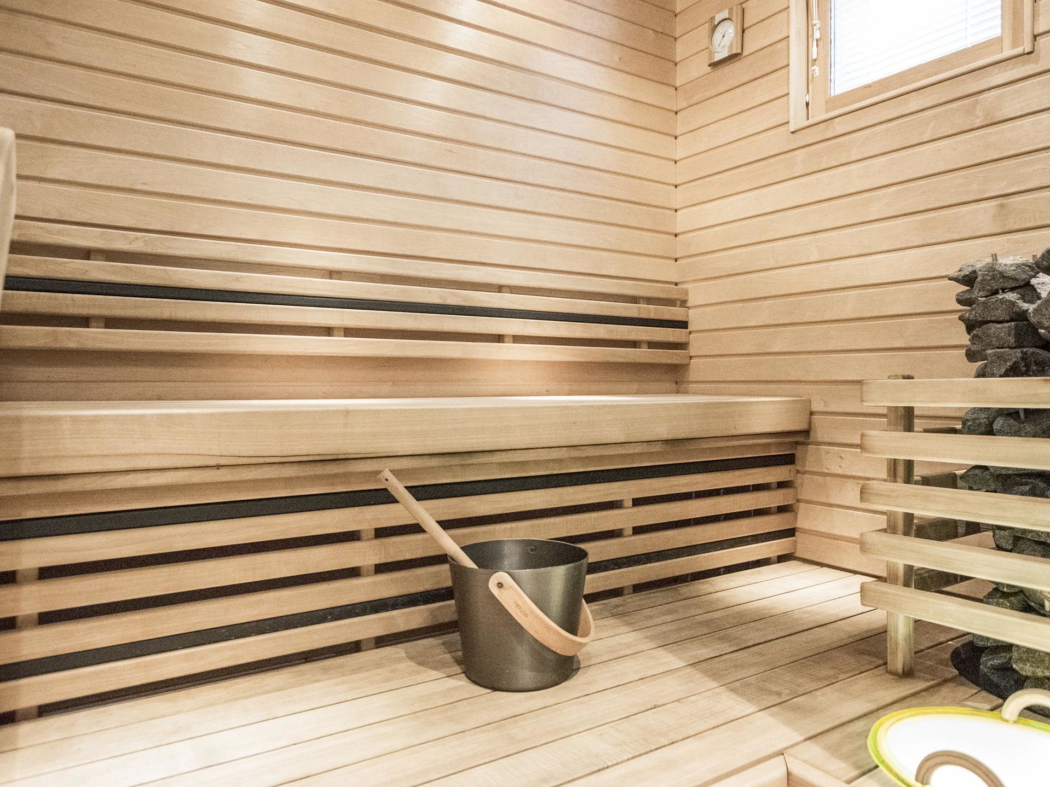 Maximal 2 Haustiere/Hunde erlaubt. 50 km südlich von Jyväskylä, See Patalahti 400 m, öffentlicher Strand zur Mitbenutzung. Eine voll ausgestattete zweistöckige Villa, im Skizentrum Himos (Baujahr 2013). Erdgeschoss: Wohnküche, Schlafzimmer mit 2 Betten, Sauna (Elektroherd), Badezimmer, WC, überdachte Terrasse und überdachte Veranda. Obergeschoss: Schlafzimmer mit 2 Betten, Schlafzimmer mit 4 Betten (die Betten sind als 2 Doppelbetten aufgestellt. Es gibt eine Trennwand, die Privatsphäre schafft), Toilette. Die Villa ist unter anderem ausgestattet mit: Lüftung mit Wärmerückgewinnung, Luftwärmepumpe mit Kühlfunktion im Ober- und Untergeschoss, Breitband-Internetzugang, Zentralstaubsauger, Wasch-Trockner-Kombination, ferngesteuerte Hausautomation, Zutrittskontrolle innen und aussen, Einbruchmeldeanlage, Kohlenmonoxid- und Brandmeldeanlage. In der Küche gibt es zusätzlich zur Standardausstattung Induktionsherd und Kombiofen. Haustiere sind unter den folgenden Bedingungen gegen eine Haustiergebühr von 65 e erlaubt (bitte zu Ihrer Reservierung hinzufügen, wenn Sie ein Haustier dabei haben): - 1 Haustier ist erlaubt - Hund oder Katze - Hunde und Katzen sind auf der Couch, im Bett und in der Sauna nicht erlaubt - Die maximale Widerristhöhe des Hundes beträgt 60 cm - Der Tierhalter haftet für Schäden an Eigentum, Möbeln oder anderen Einrichtungsgegenständen, die durch das Tier verursacht werden. Hochwertiges und voll ausgestattetes gemütliches Ferienhaus in der Nähe aller Himos-Dienstleistungen. Die Lage ist ruhig und doch sind alle Annehmlichkeiten leicht zu erreichen, HimosArena 500 m, Skilift 500 m, Golfplatz 500 m. Nebenan befindet sich eine identische Villa 11596 (wenn Sie auch Villa 11596 buchen, ist der Ort für größere Gruppen mit maximal 16 Personen geeignet). Der nächste Nachbar ist ca. 100 Meter entfernt. Die Innenausstattung der Villa Nummenranta wurde mit den bestmöglichen Produkten auf umweltfreundliche Weise hergestellt.