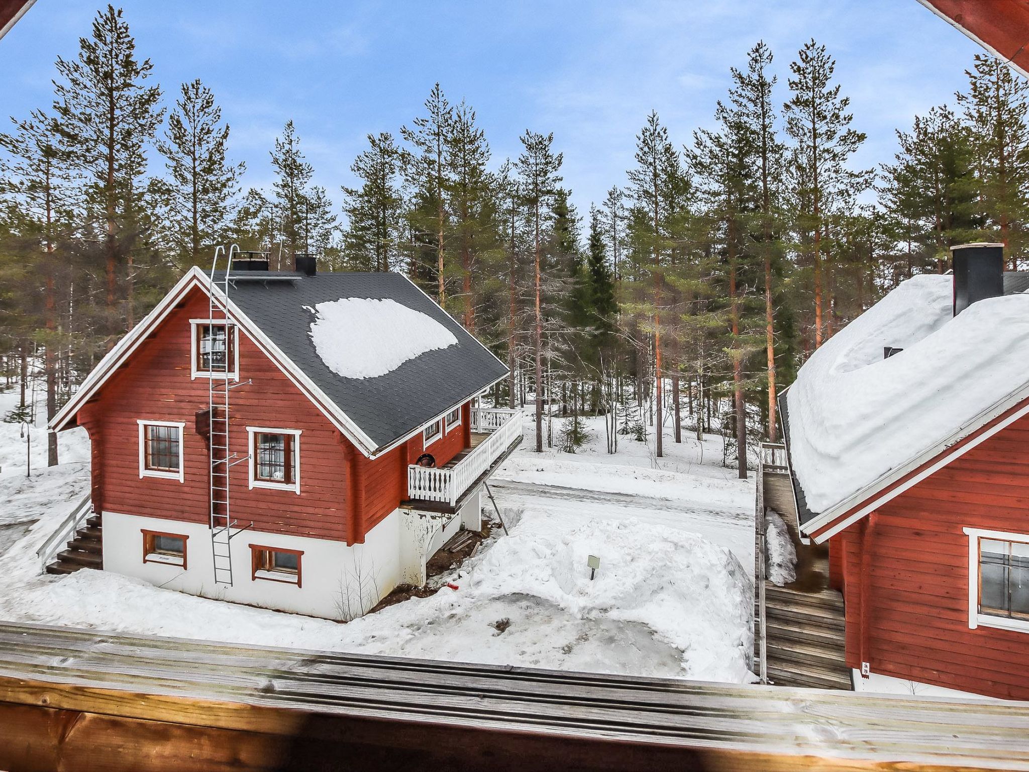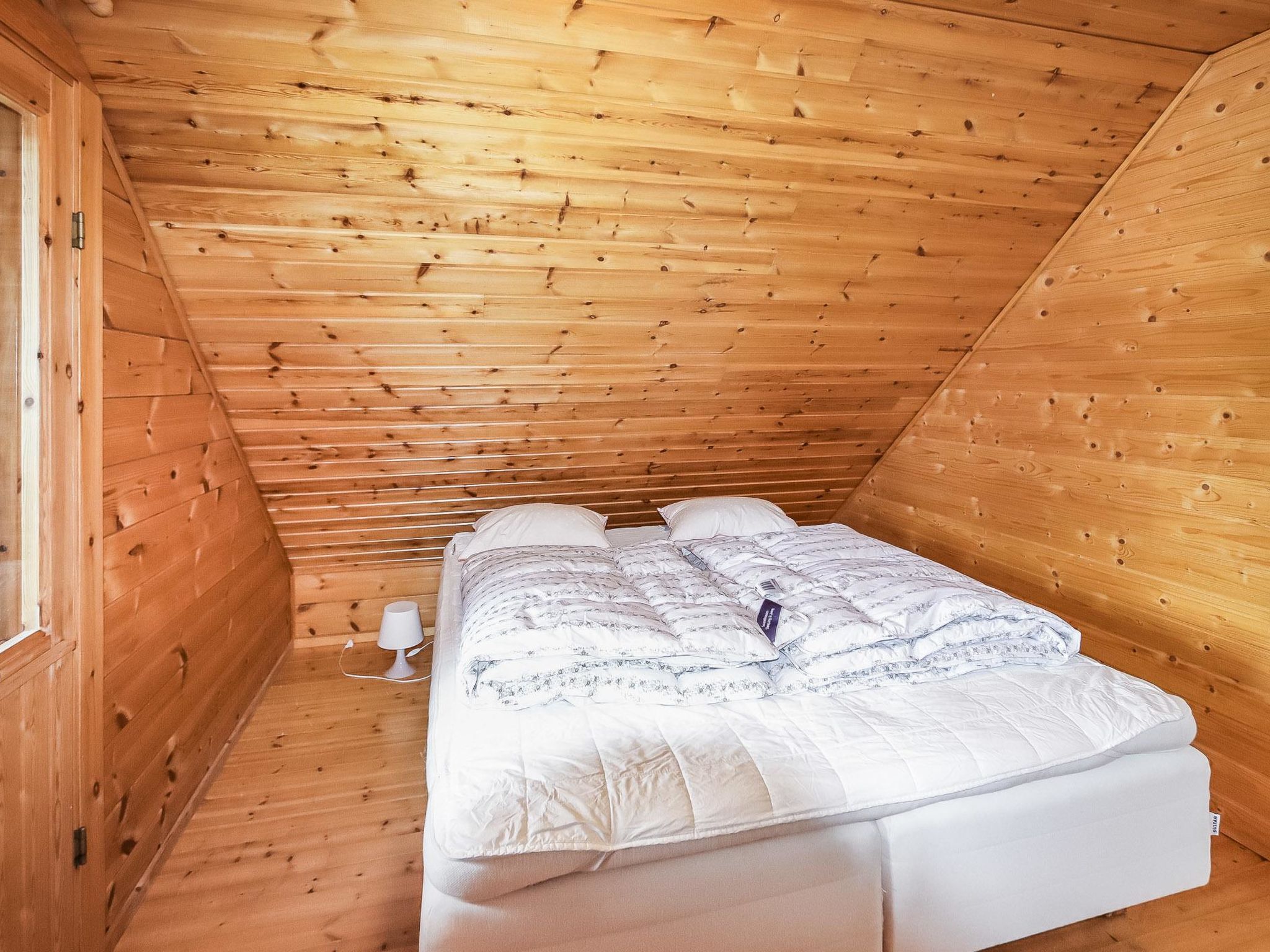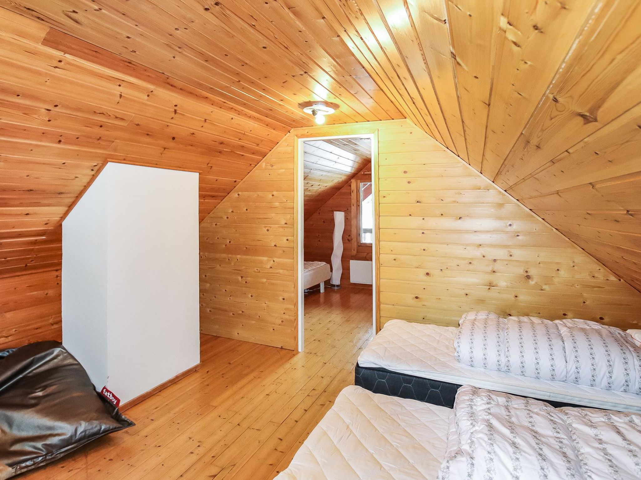 The upstairs of a semi-detached house located in the Ukkohalla tourism centre, 8 persons, 75m2, built in 1991. Kitchen, 2 sleeping corner, loft, sauna, shower room/toilet, balcony, fireplace, bunk beds in the sleeping corners, 4 beds on the loft.