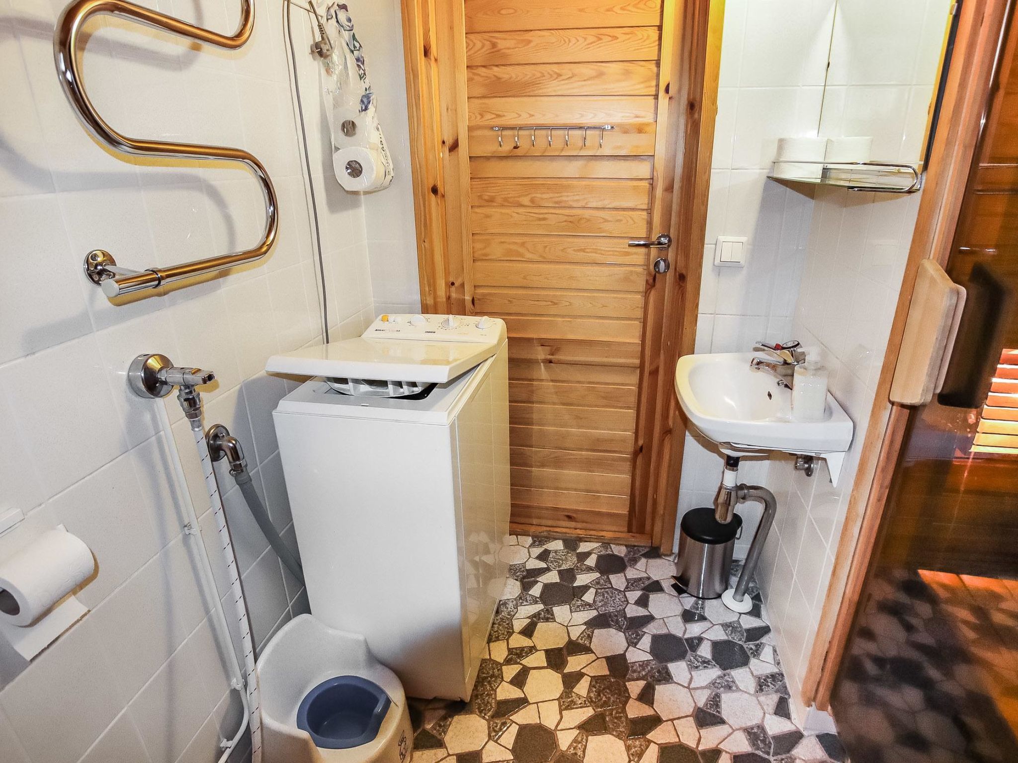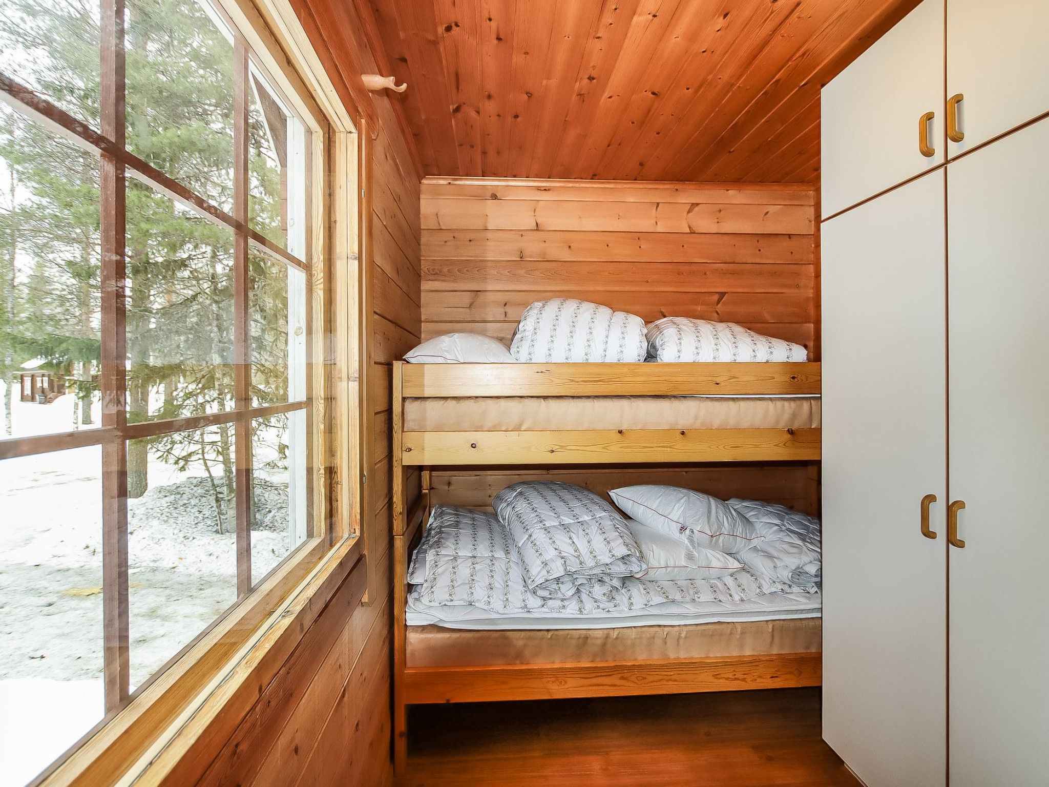 Price includes 1 bag of firewood. Extra wood from caretaker 10 euroa/bag. Ukkohalla: Tourism centre located by Lake Syväjärvi, with an information centre, store, restaurant, spa, slope centre, snowmobile tracks, ski tracks, programme services, Cable Wakeboard, beach (further information at www.ukkohalla.fi). Disatnce to the Ukkohalla services 1,5 km. Kajaani airport 86 km, Oulu 170 km, Helsinki 650 km, bus stop Hyrynsalmi 18 km, railway station Kontiomäki 66 km. Pets prohibited, beautiful view over the slopes and Lake Syväjärvi. Cottage is available at 4.00pm on arriving day - till 12.00 on departure day.