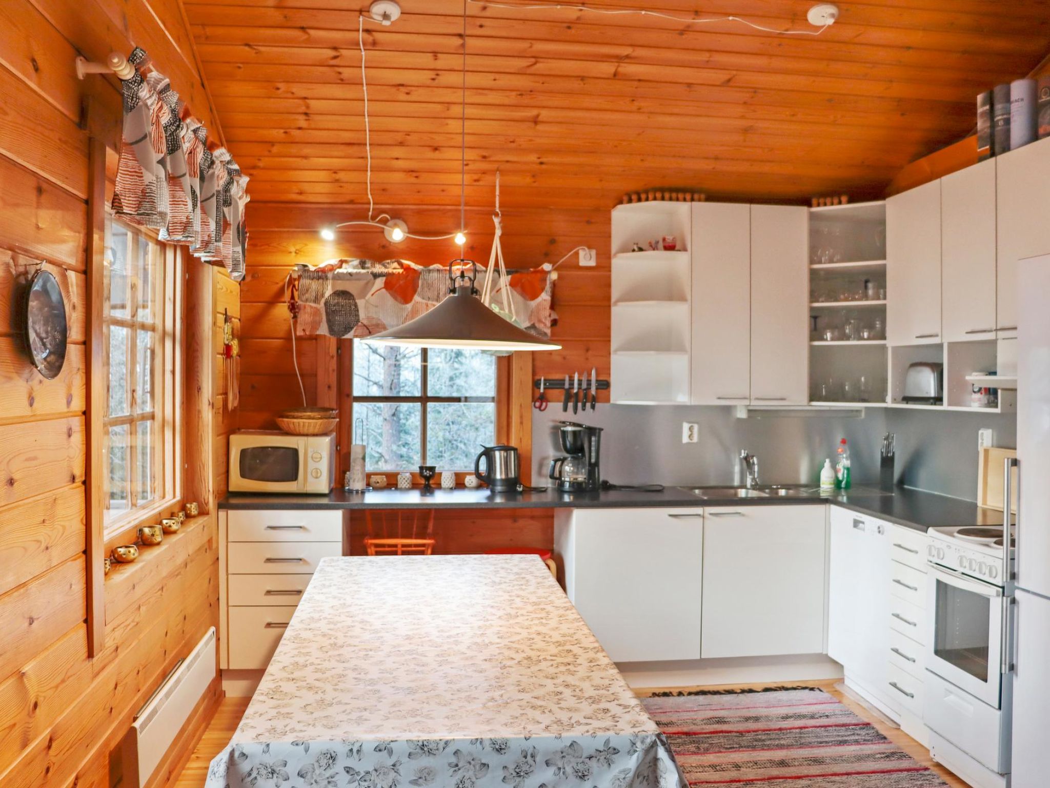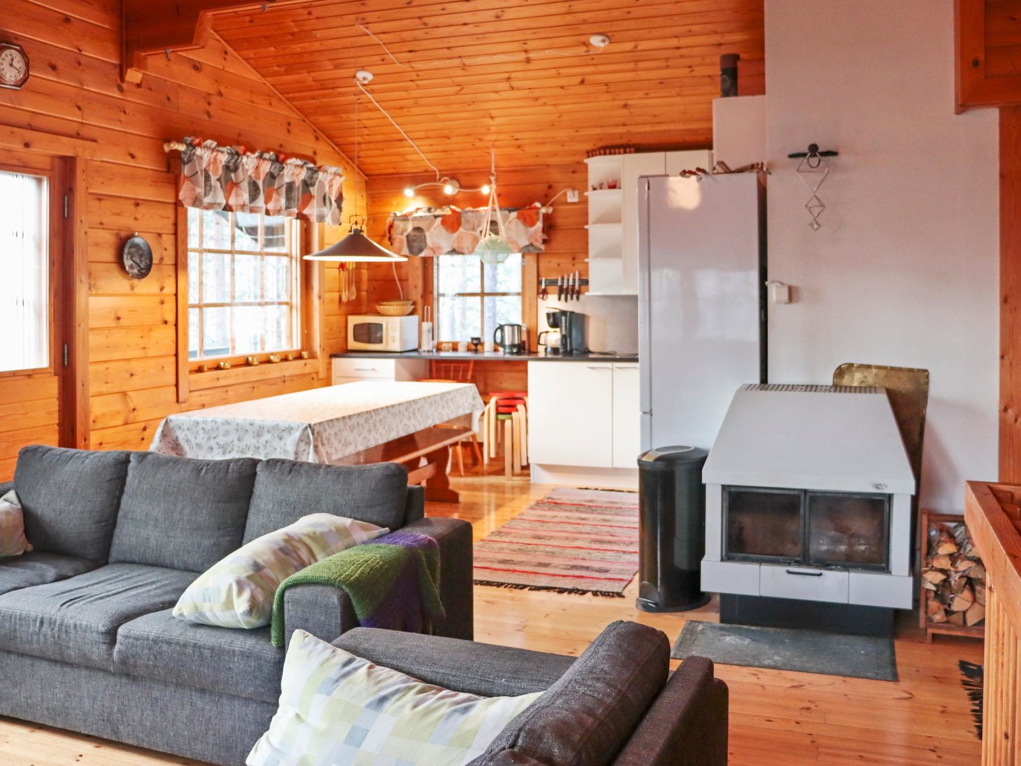 Ukkohalla: Tourism centre located by Lake Syväjärvi, with an information centre, store, restaurant, Kotipizza pizzeria, spa, slope centre, snowmobile tracks, ski tracks, programme services, Cable Wakeboard, beach (further information at www.ukkohalla.fi). Disatnce to the Ukkohalla services 1,5 km. Kajaani airport 86 km, Oulu 170 km, Helsinki 650 km, bus stop Hyrynsalmi 18 km, railway station Kontiomäki 66 km. Pets allowed, beautiful view over the slopes and Lake Syväjärvi. Cottage is available at 4.00pm on arriving day - till 12.00 on departure day.