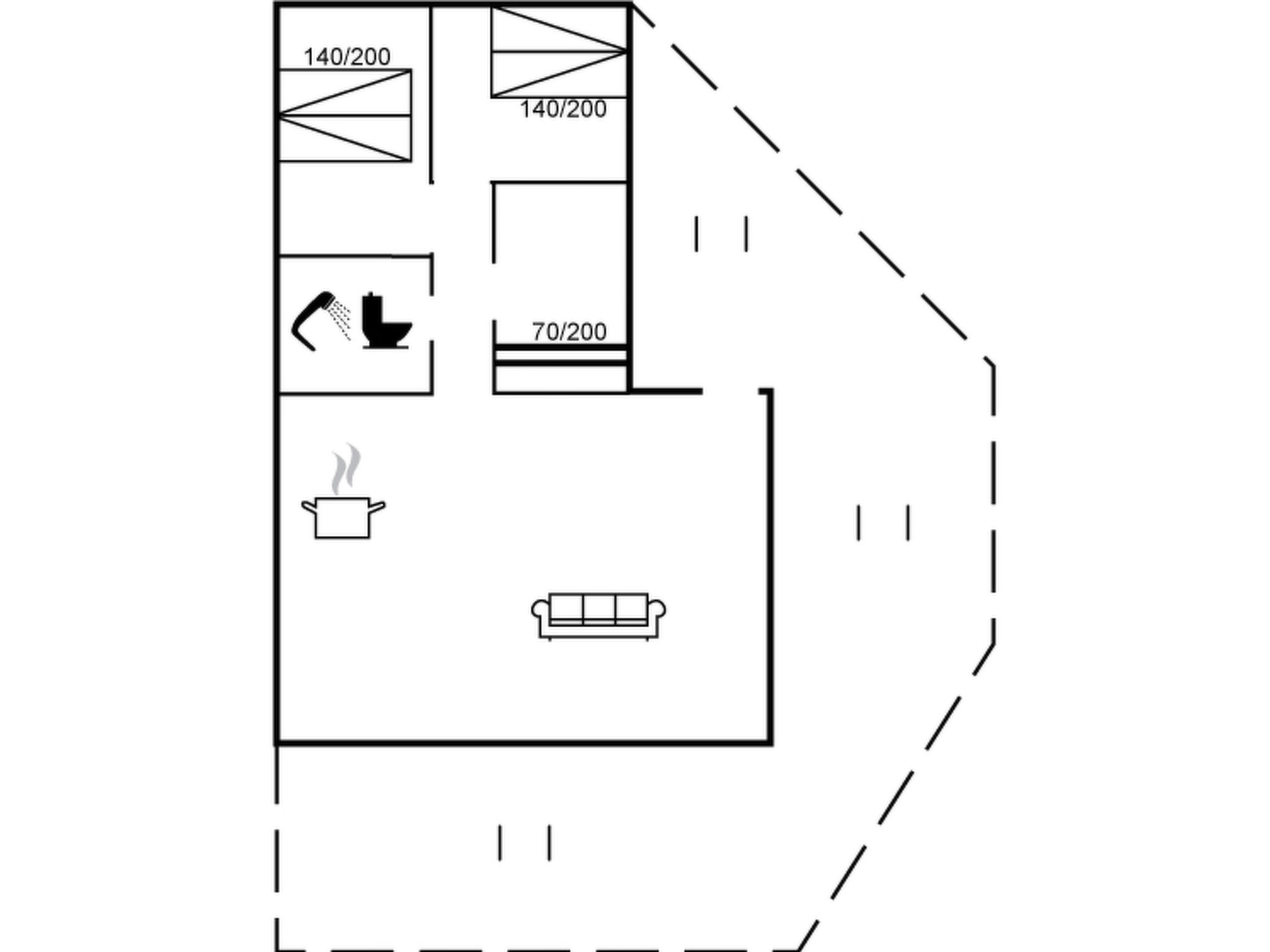 "Kjeld" - 900m from the sea", 3-Zimmer-Haus 65 m2. Objekt geeignet für 6 Erwachsene. Wohnzimmer mit TV, Radio, CD, Stereoanlage und DVD. 1 Zimmer mit 1 x 2 Etagenbetten. 1 Zimmer mit 1 Doppelbett. 1 Zimmer mit 1 Doppelbett. Küche (Backofen, Geschirrspüler, 4 Glaskeramikplatten, Mikrowelle, Tiefkühler). Dusche/WC. Zur Verfügung: Internet (WLAN). Bitte beachten: Nichtraucher-Unterkunft. 400-143102