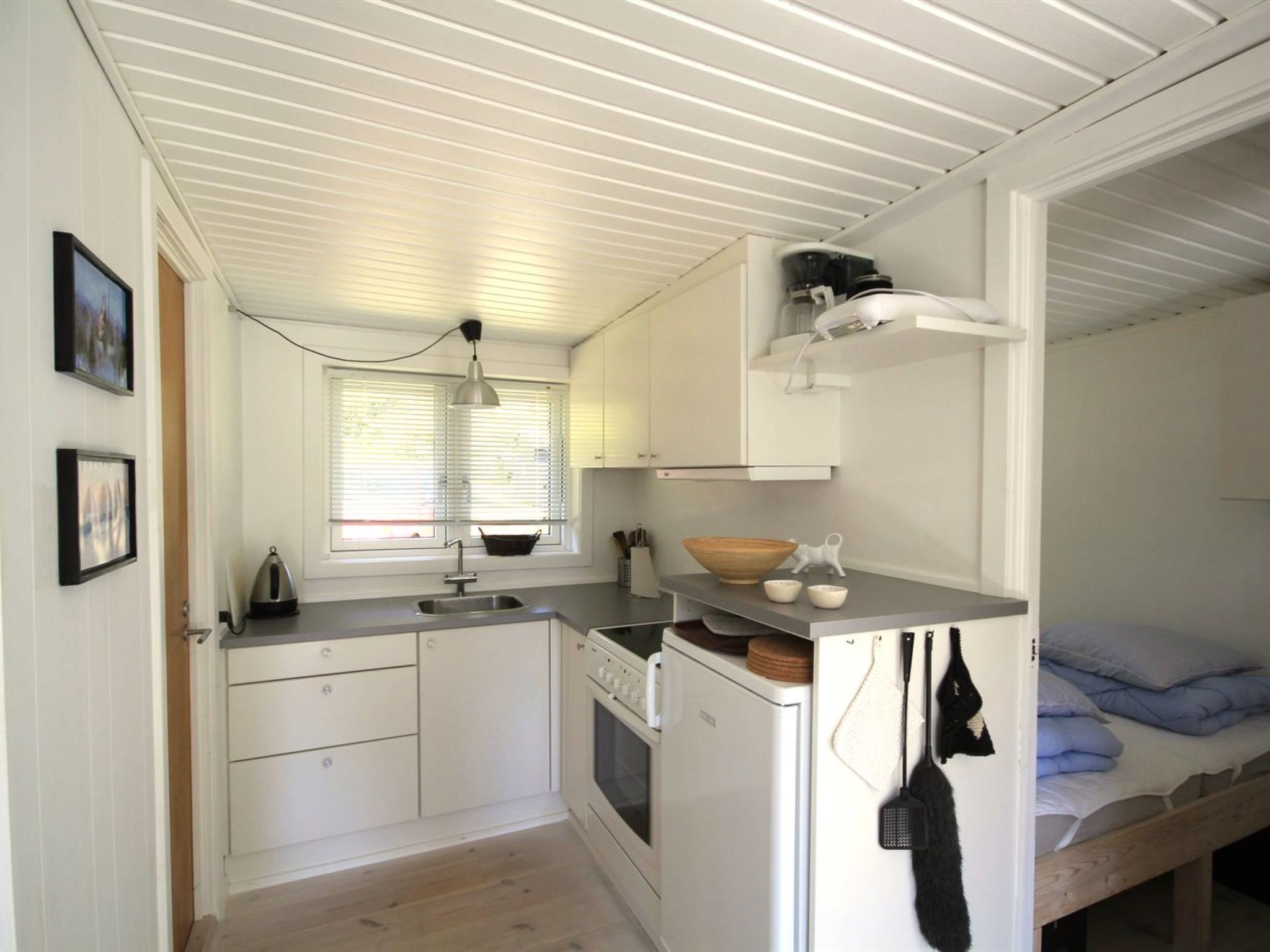 "Talvikki" - 250m from the sea", 3-Zimmer-Haus 42 m2. Objekt geeignet für 4 Erwachsene. Wohnzimmer mit 1 Diwanbett, TV, CD und Stereoanlage. 1 Zimmer mit 1 Doppelbett. 1 Zimmer mit 1 Bett. Küche (Backofen, 4 Glaskeramikplatten, Tiefkühler). Dusche/WC. Terrasse 10 m2, überdacht. Zur Verfügung: Internet (WLAN). Bitte beachten: Nichtraucher-Unterkunft. 400-104085