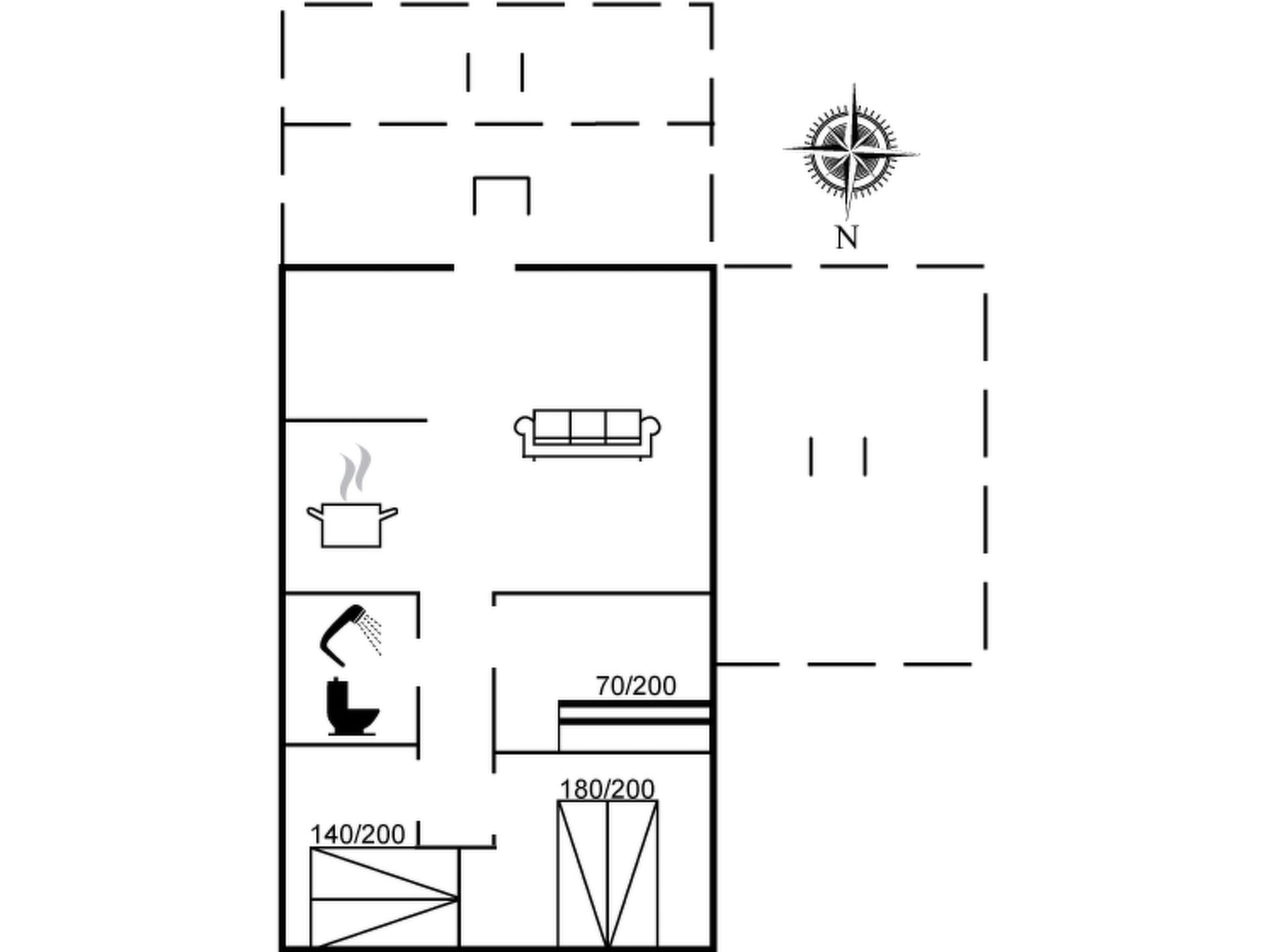"Eeske" - 800m from the sea", 3-Zimmer-Haus 58 m2. Objekt geeignet für 6 Erwachsene. Wohnzimmer mit TV, CD und Stereoanlage. 1 Zimmer mit 1 Doppelbett. 1 Zimmer mit 1 Doppelbett. 1 Zimmer mit 1 x 2 Etagenbetten. Küche (Backofen, Geschirrspüler, 4 Glaskeramikplatten, Mikrowelle, Tiefkühler). Dusche/WC. Terrasse 11 m2, überdacht. Zur Verfügung: Internet (WLAN). 400-271321
