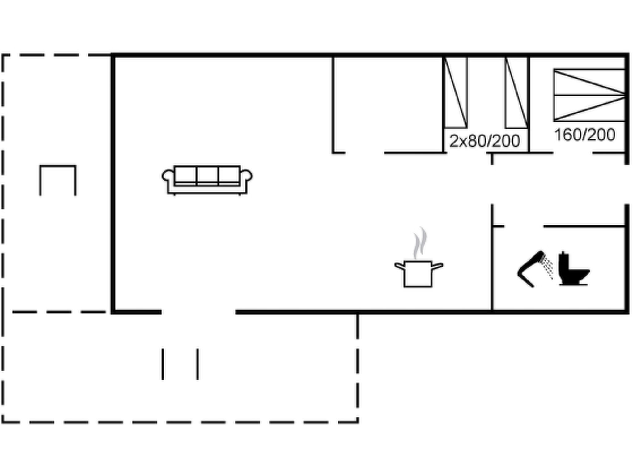 "Aave" - 800m from the sea", 2-Zimmer-Haus 56 m2. Objekt geeignet für 4 Erwachsene. Wohnzimmer mit TV und Radio. 1 Zimmer mit 1 Doppelbett. 1 Zimmer mit 2 Betten. Küche (Backofen, 4 Glaskeramikplatten, Mikrowelle). Dusche/WC. Zur Verfügung: Internet (WLAN). Bitte beachten: Nichtraucher-Unterkunft. Buchungen sind nur zu touristischen Zwecken erlaubt. 400-271240