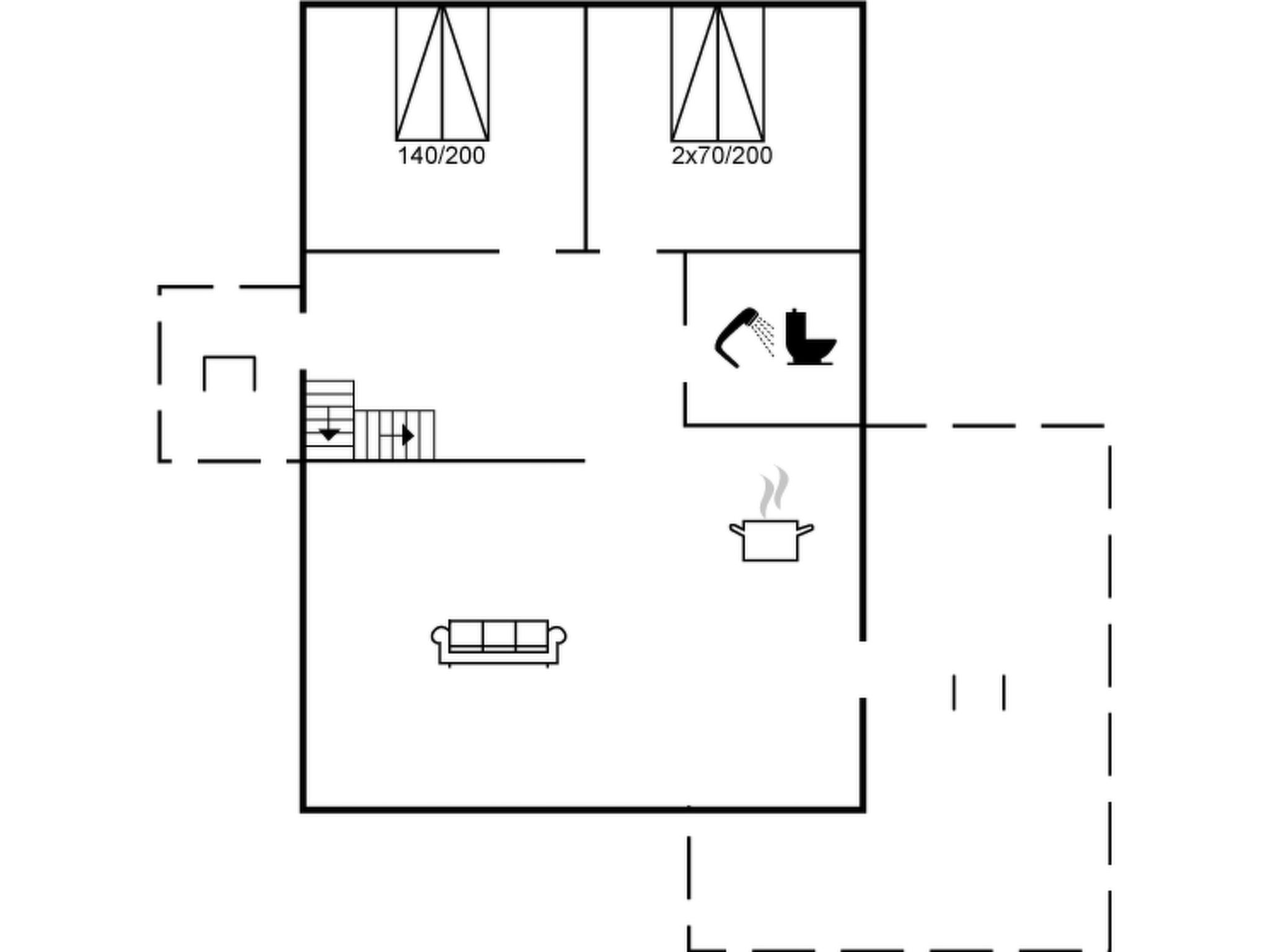 Einfamilienhaus, Baujahr 1991. 250 m vom Meer. Zur Alleinbenutzung: naturbelassenes Grundstück 1'200 m2. Terrasse (12 m2), Grill, Kinderspielplatz (Schaukel). Im Hause: Waschmaschine. Parkplatz beim Haus. Lebensmittelgeschäft 800 m. Golfplatz 8 km.