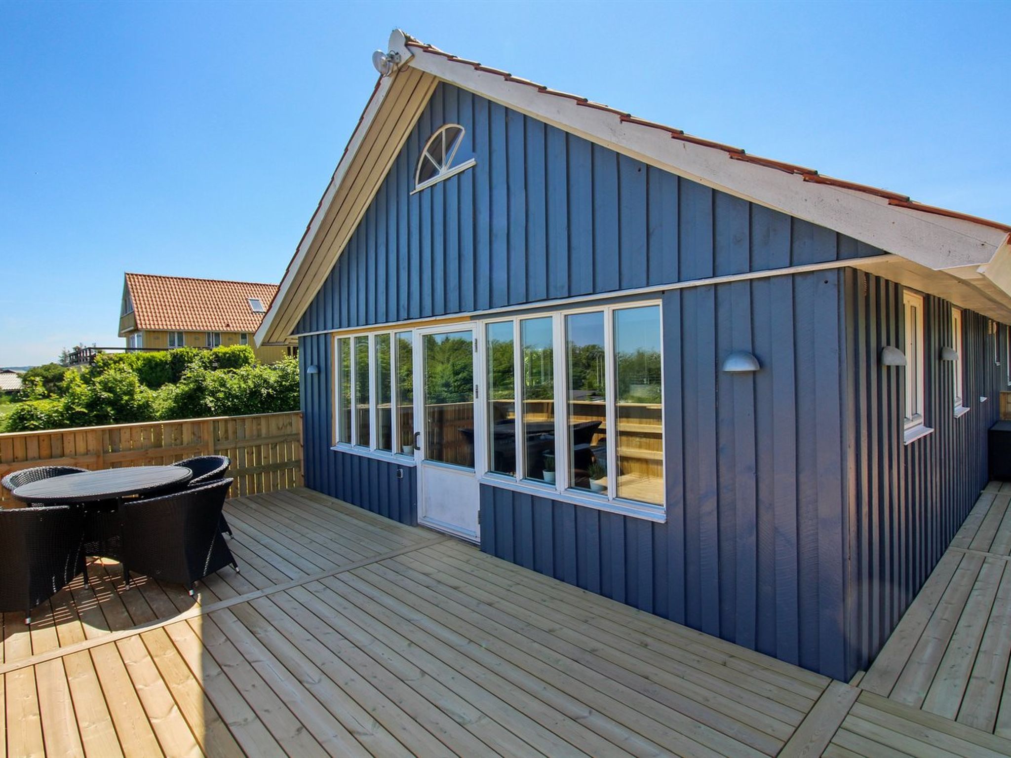 Einfamilienhaus, Baujahr 2003. 150 m vom Meer. Zur Alleinbenutzung: naturbelassenes Grundstück 1'200 m2. Terrasse (35 m2). Im Hause: Waschmaschine. Parkplatz beim Haus. Carport. Lebensmittelgeschäft 1.2 km. Golfplatz 7.5 km. Der Besitzer akzeptiert keine Jugendgruppen.