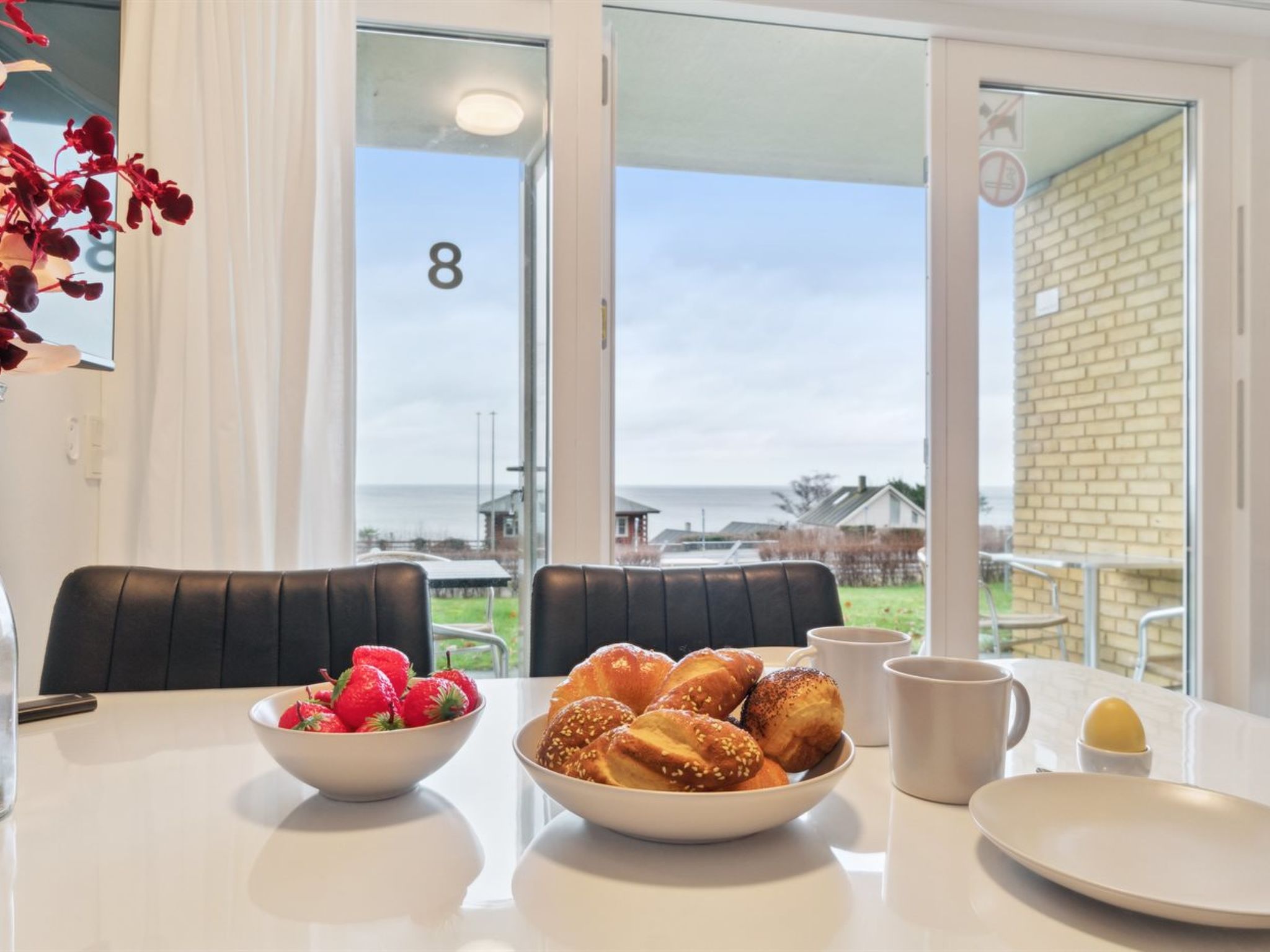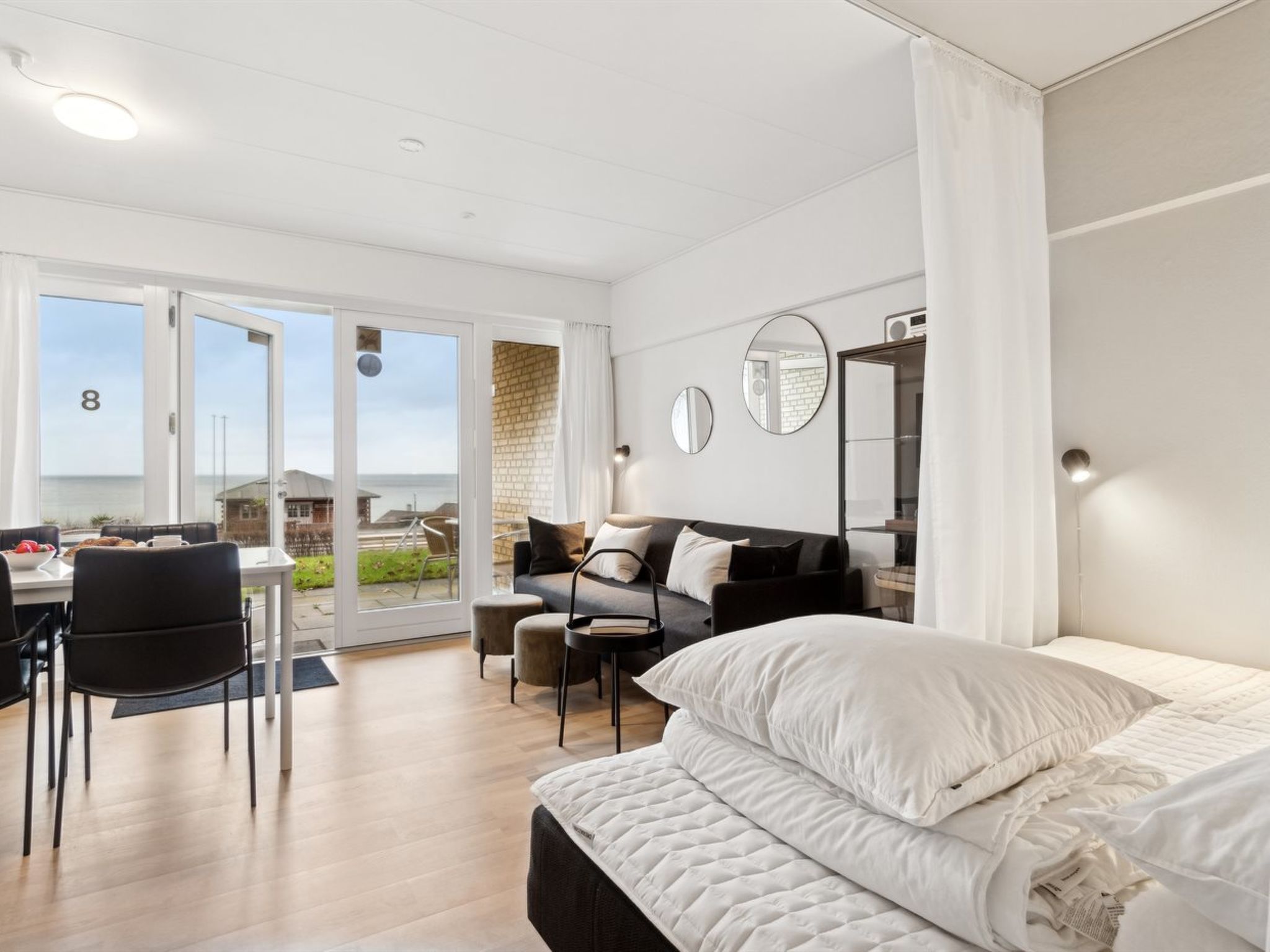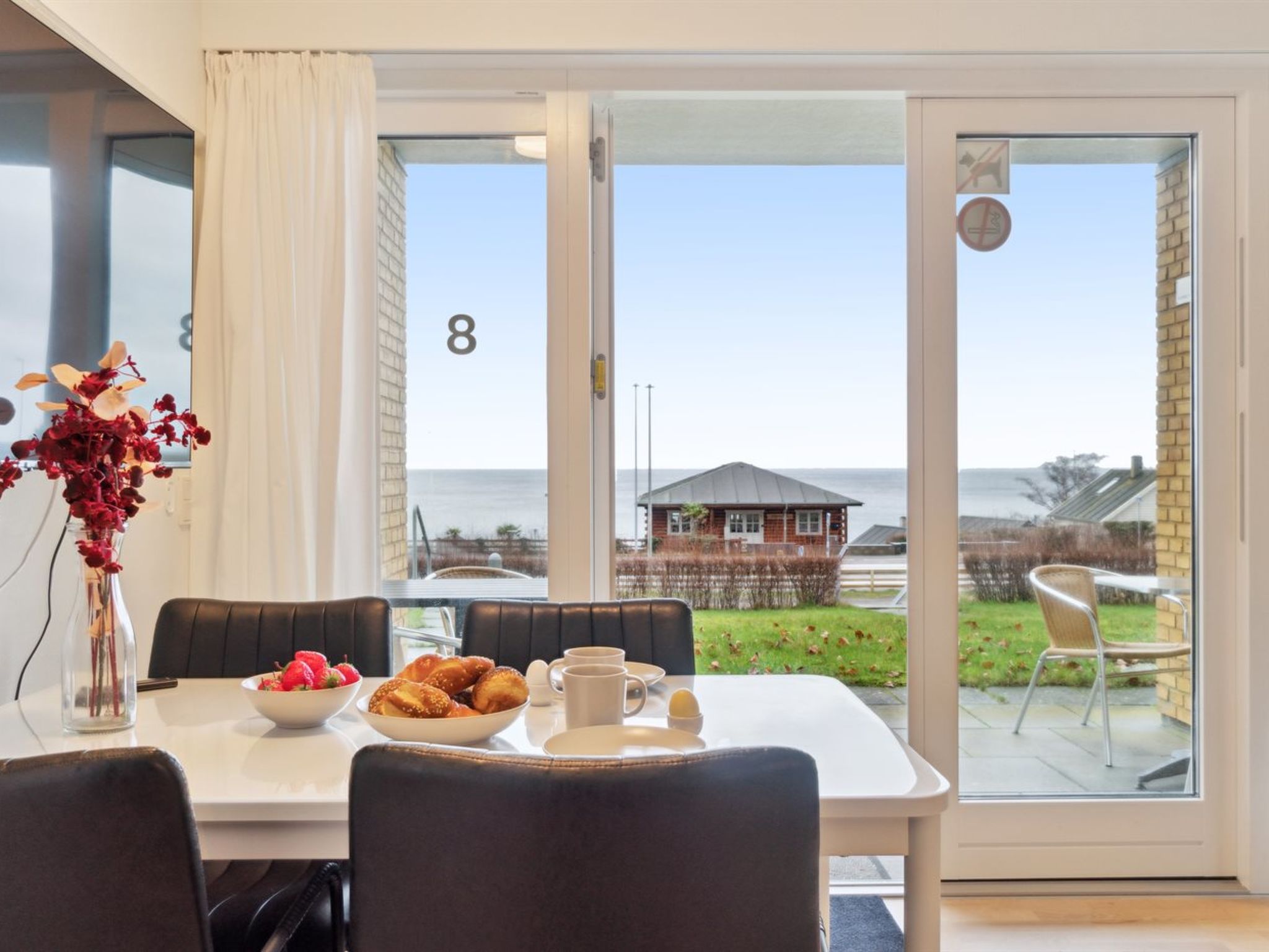 "Annelie" - 75m from the sea",Wohnung 26 m2. Objekt geeignet für 2 Erwachsene. Wohnzimmer mit 1 Doppeldiwanbett, 1 Doppelbett, TV und Radio. Küche (Backofen, Geschirrspüler, 2 Glaskeramikplatten, Mikrowelle, Tiefkühler). Dusche/WC. Terrasse 8 m2, überdacht. Sicht auf das Meer. Zur Verfügung: Internet (WLAN). Parkplatz beim Haus. Bitte beachten: Nichtraucher-Unterkunft. 400-286407