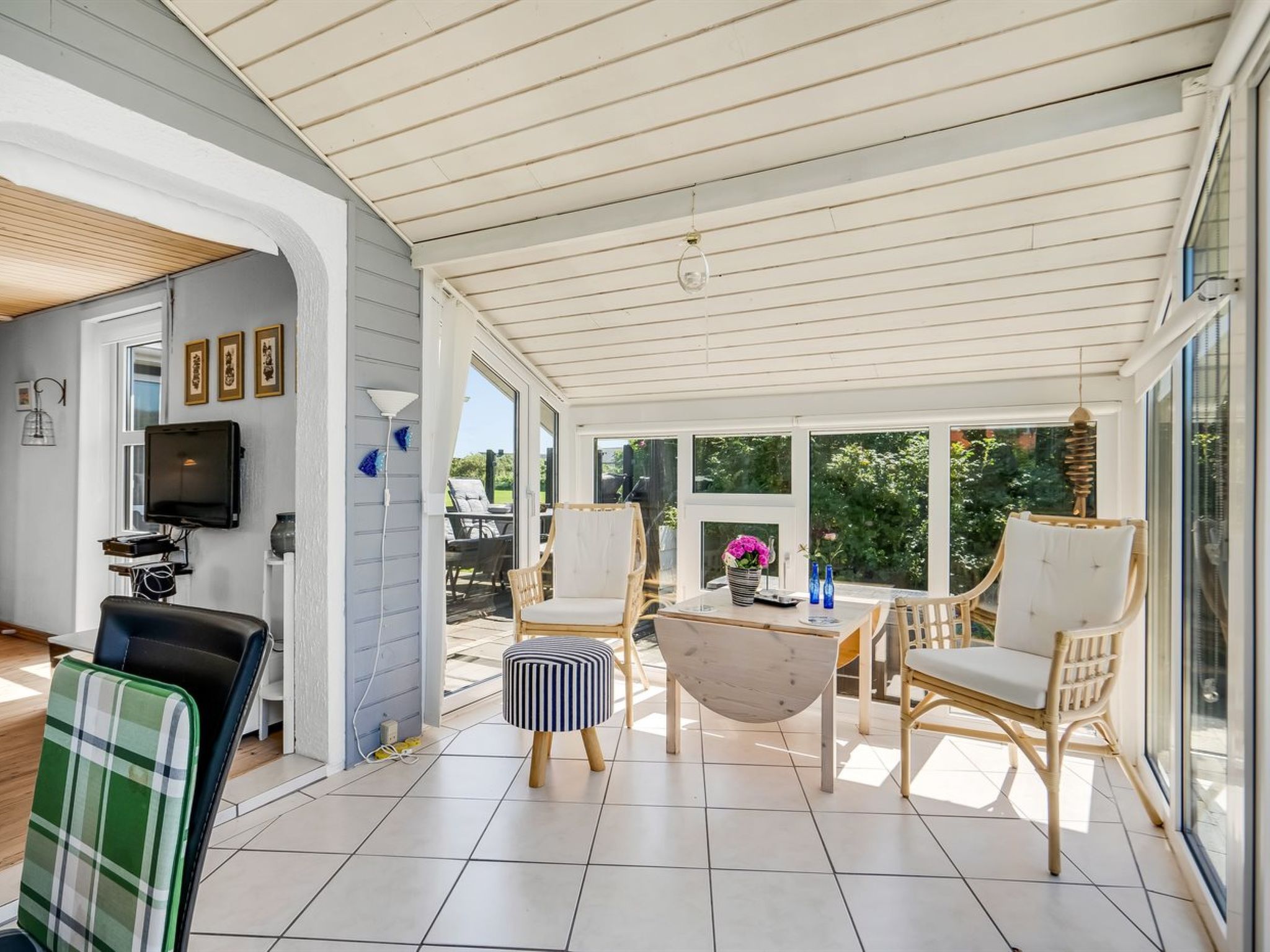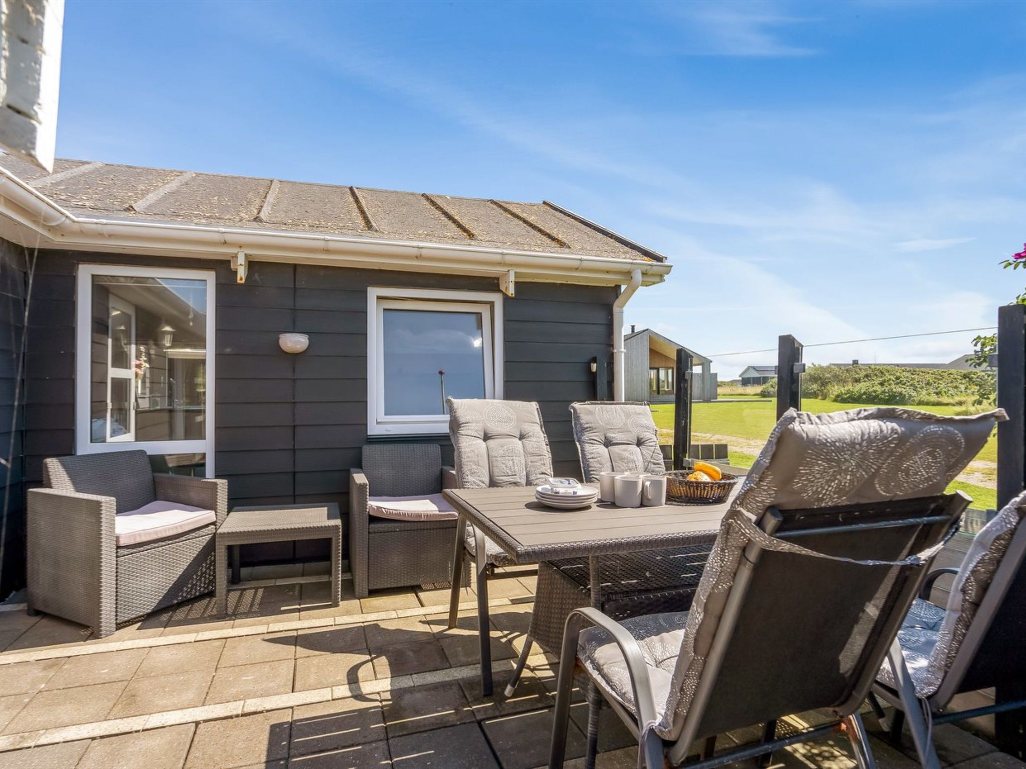 "Telse" - 375m from the sea", 2-Zimmer-Haus 70 m2. Objekt geeignet für 6 Erwachsene. Wohnzimmer mit TV, Radio, CD und DVD. 1 Zimmer mit 1 Doppelbett. 1 Zimmer mit 2 x 2 Etagenbetten. Küche (Backofen, Geschirrspüler, 4 Glaskeramikplatten, Mikrowelle, Tiefkühler). Dusche/WC. Bitte beachten: Nichtraucher-Unterkunft. Maximal 2 Haustiere/Hunde erlaubt. 849-74356
