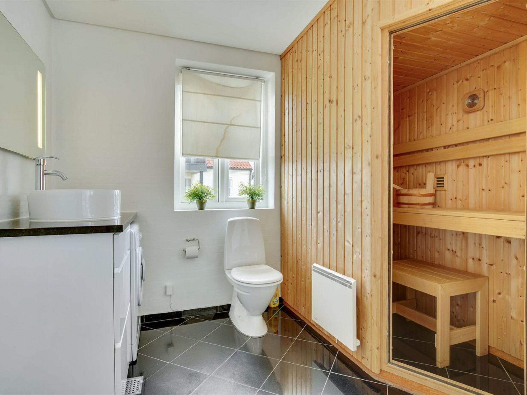 Einfamilienhaus, Baujahr 2008. 200 m vom Meer. Zur Alleinbenutzung: naturbelassenes Grundstück 550 m2. Terrasse (20 m2). Im Hause: Sauna, Waschmaschine. Parkplatz beim Haus. E-Ladestation. Lebensmittelgeschäft 400 m. Der Besitzer akzeptiert keine Jugendgruppen.