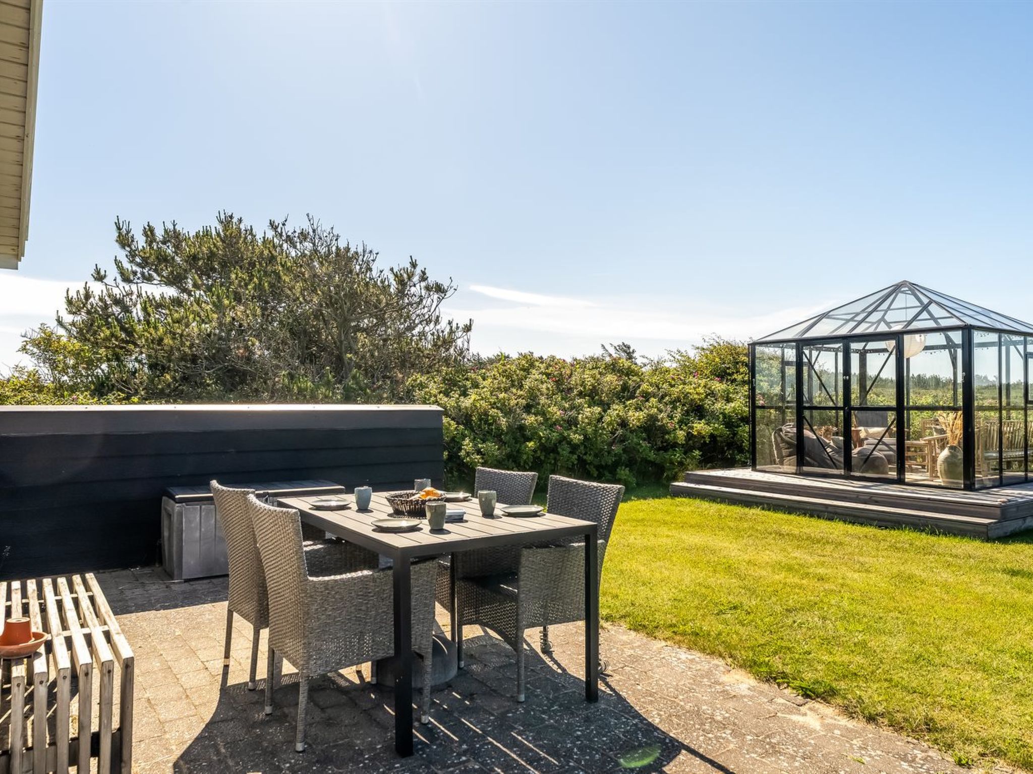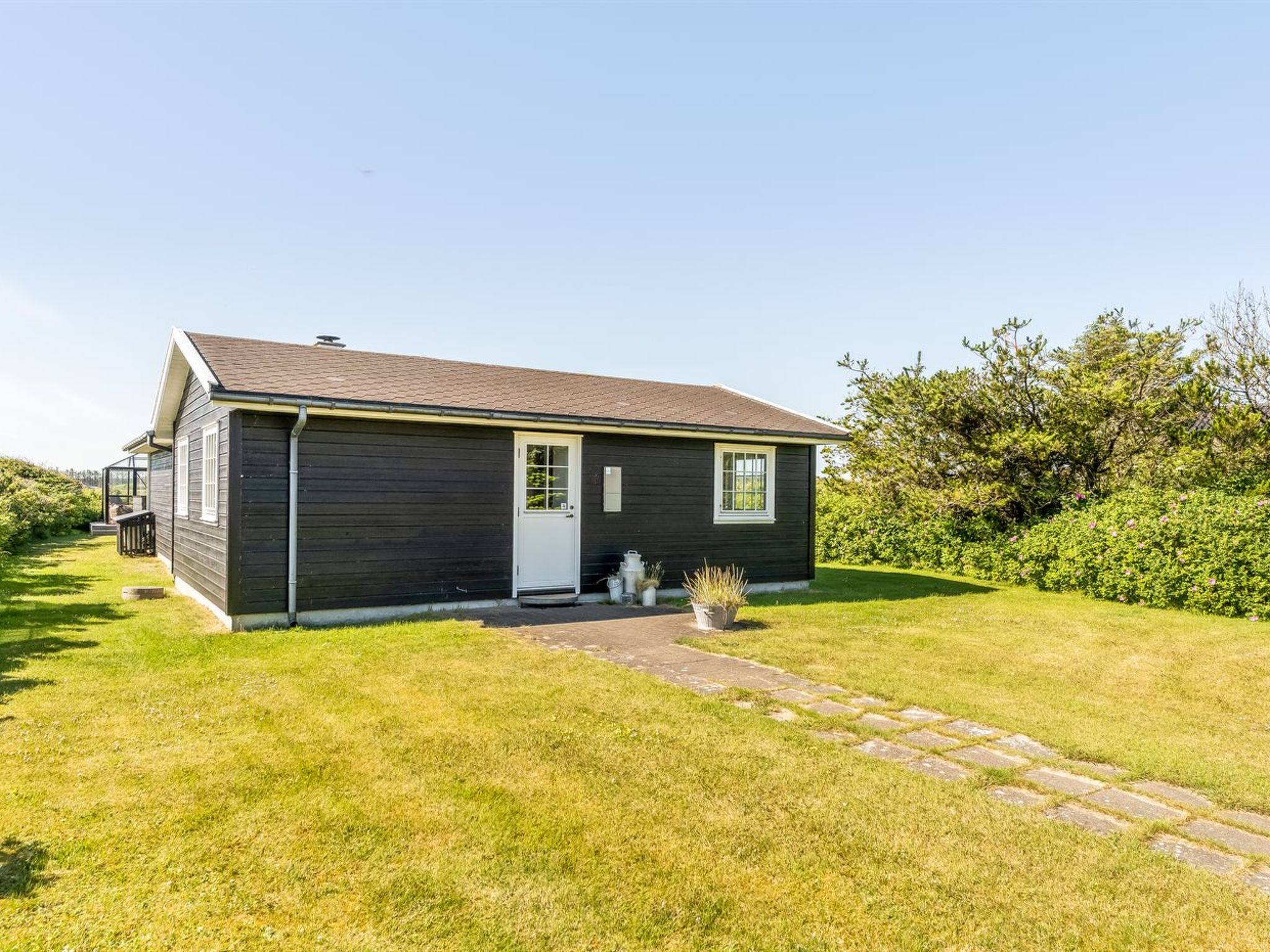 Einfamilienhaus, Baujahr 2000. 700 m vom Meer. Zur Alleinbenutzung: naturbelassenes Grundstück 1'983 m2. Terrasse (60 m2), Kinderspielplatz. Im Hause: Waschmaschine, Wäschetrockner. Parkplatz beim Haus. E-Ladestation. Lebensmittelgeschäft 1.4 km. Der Besitzer akzeptiert keine Jugendgruppen.