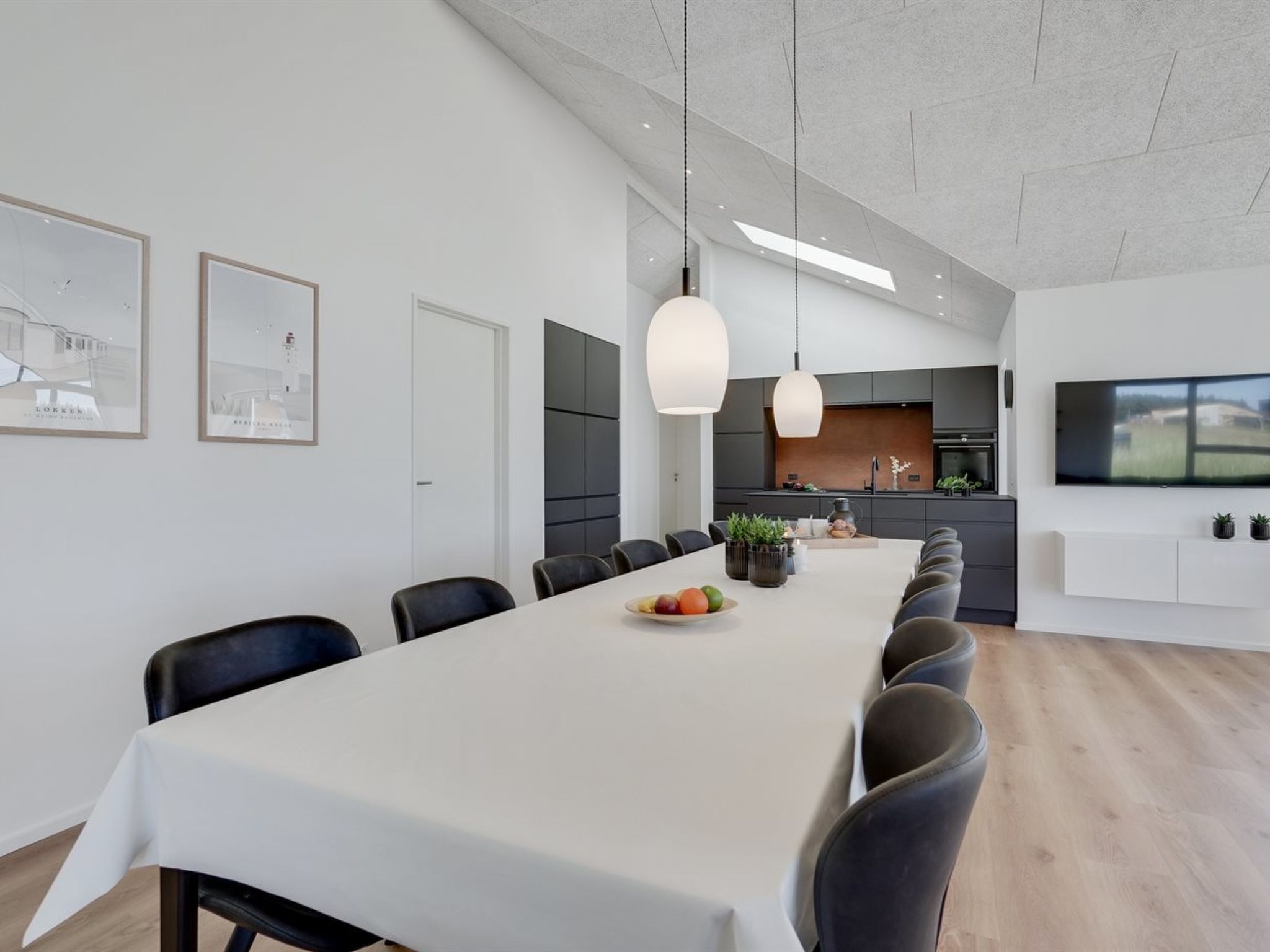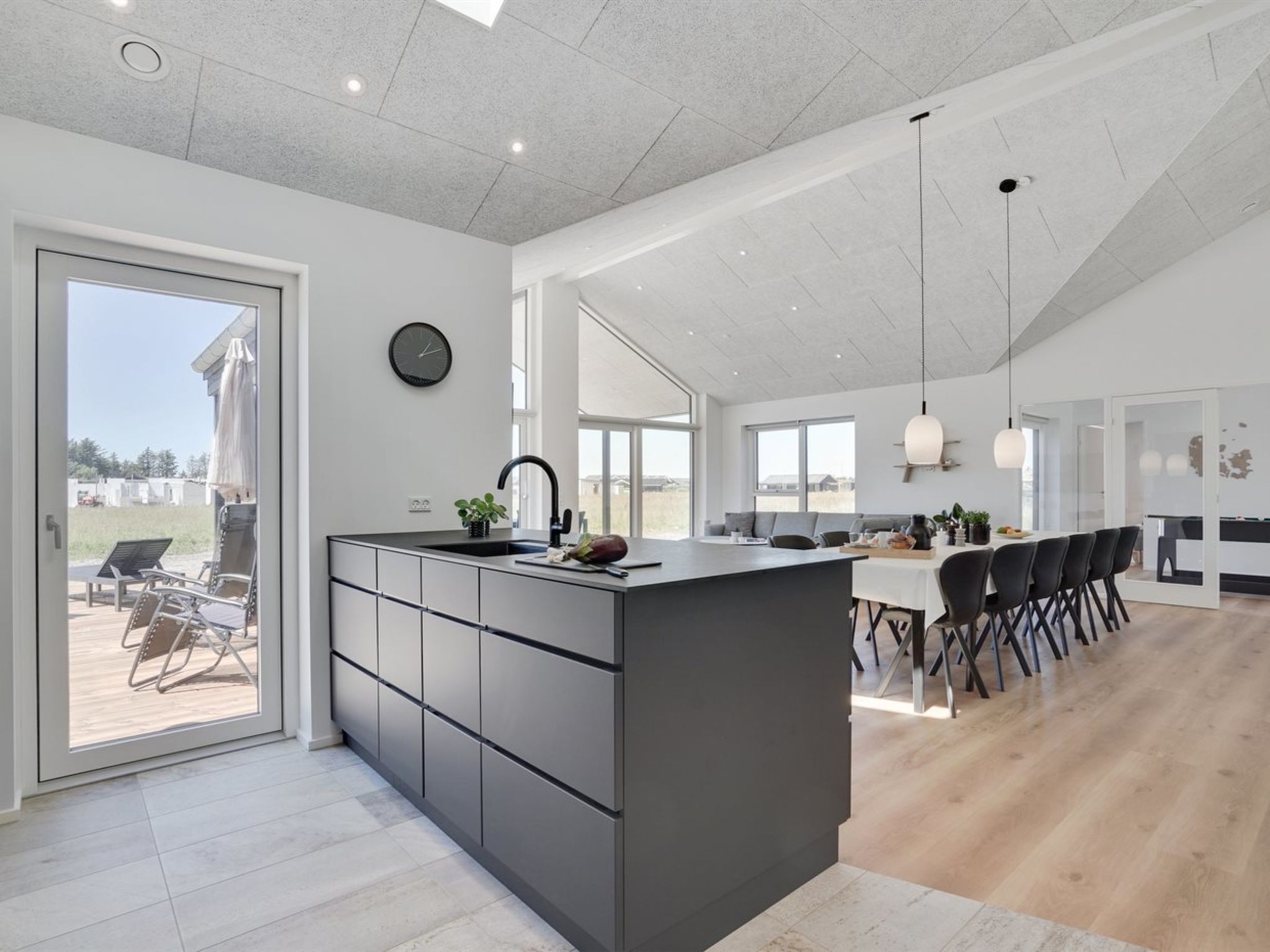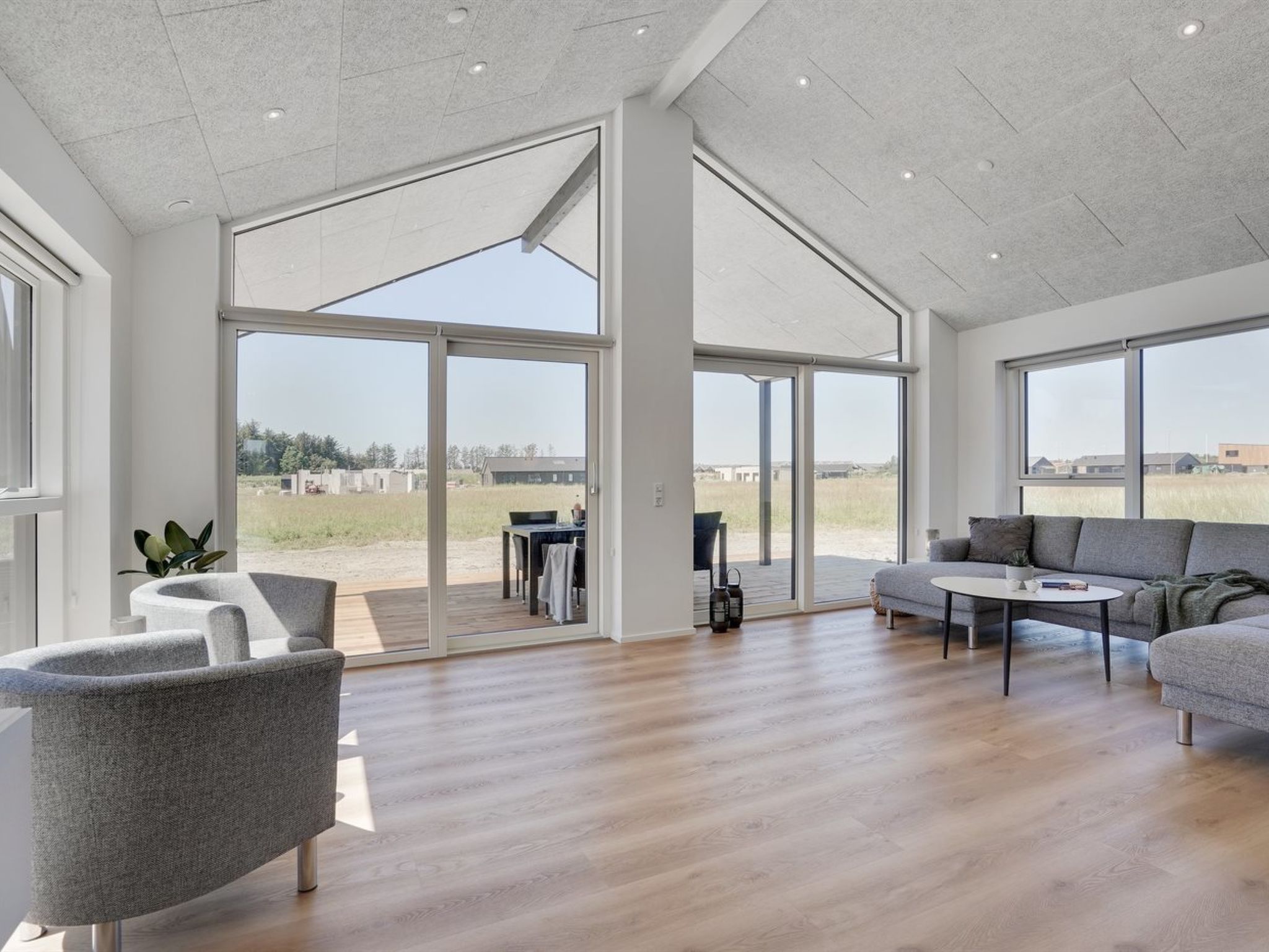 Einfamilienhaus, Baujahr 2022. 950 m vom Meer. Zur Alleinbenutzung: naturbelassenes Grundstück 595 m2. Aussendusche, Grill, Kinderspielplatz (Rutschbahn, Schaukel). Im Hause: Sauna, Waschmaschine, Wäschetrockner. Parkplatz beim Haus. Carport. E-Ladestation. Lebensmittelgeschäft 800 m. Golfplatz 200 m. Der Besitzer akzeptiert keine Jugendgruppen.