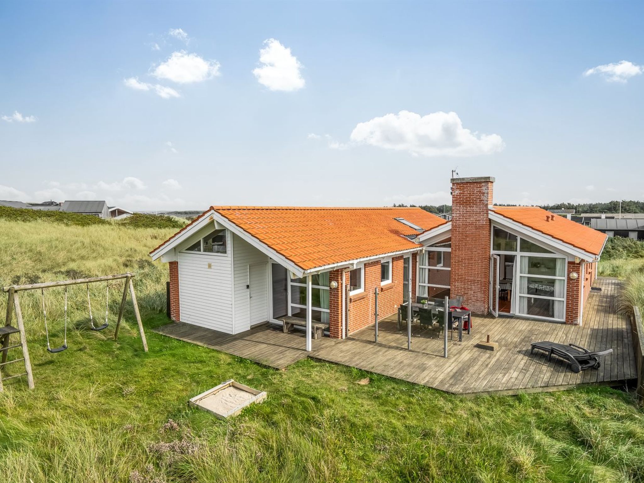 Einfamilienhaus, Baujahr 1987. 150 m vom Meer. Zur Alleinbenutzung: Grundstück 1'600 m2. Terrasse (120 m2), Kinderspielplatz (Schaukel). Im Hause: Tischfussball, Waschmaschine, Wäschetrockner. Parkplatz beim Haus. Lebensmittelgeschäft 500 m. Golfplatz 11.5 km. Der Besitzer akzeptiert keine Jugendgruppen.