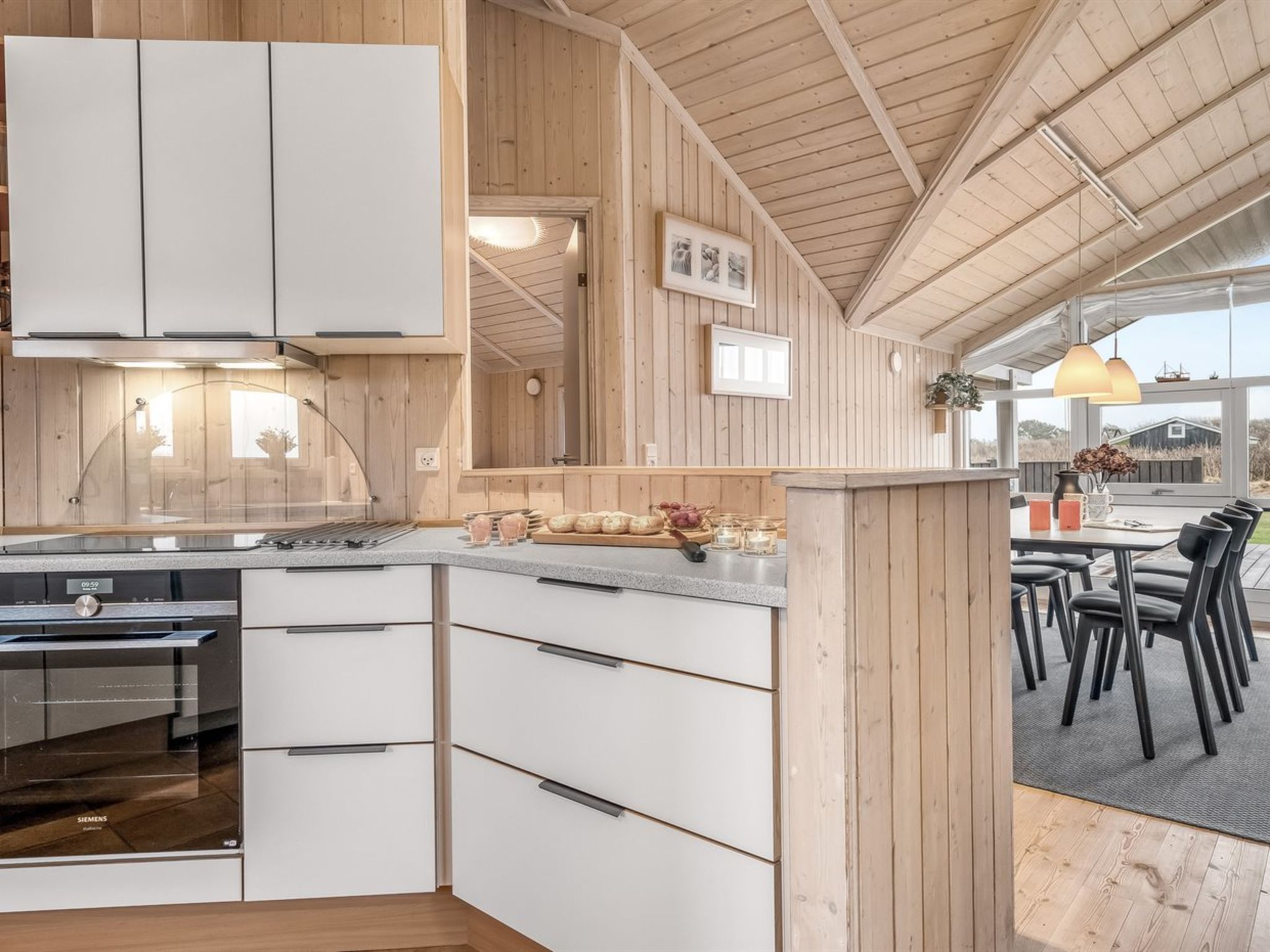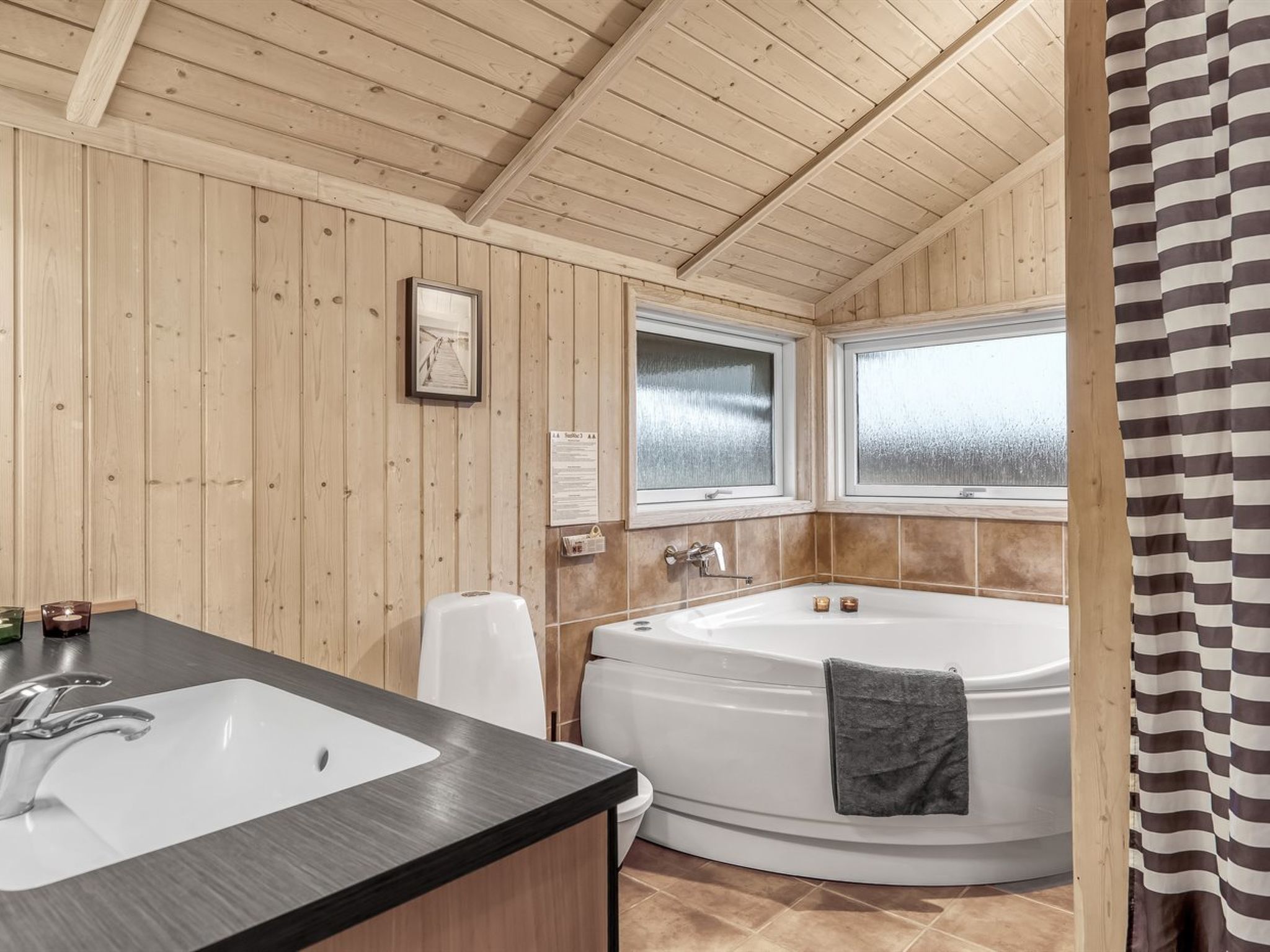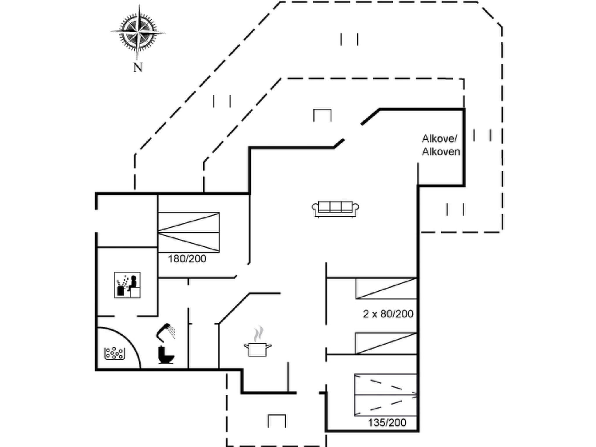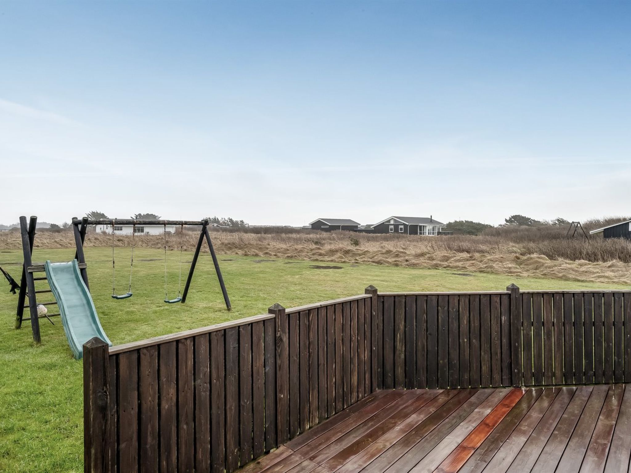 Einfamilienhaus, Baujahr 2001. 200 m vom Meer. Zur Alleinbenutzung: naturbelassenes Grundstück 2'600 m2. Terrasse (90 m2), Kinderspielplatz (Rutschbahn, Schaukel). Im Hause: Sauna, Waschmaschine. Parkplatz beim Haus. Lebensmittelgeschäft 1 km. Golfplatz 2 km. Der Besitzer akzeptiert keine Jugendgruppen.