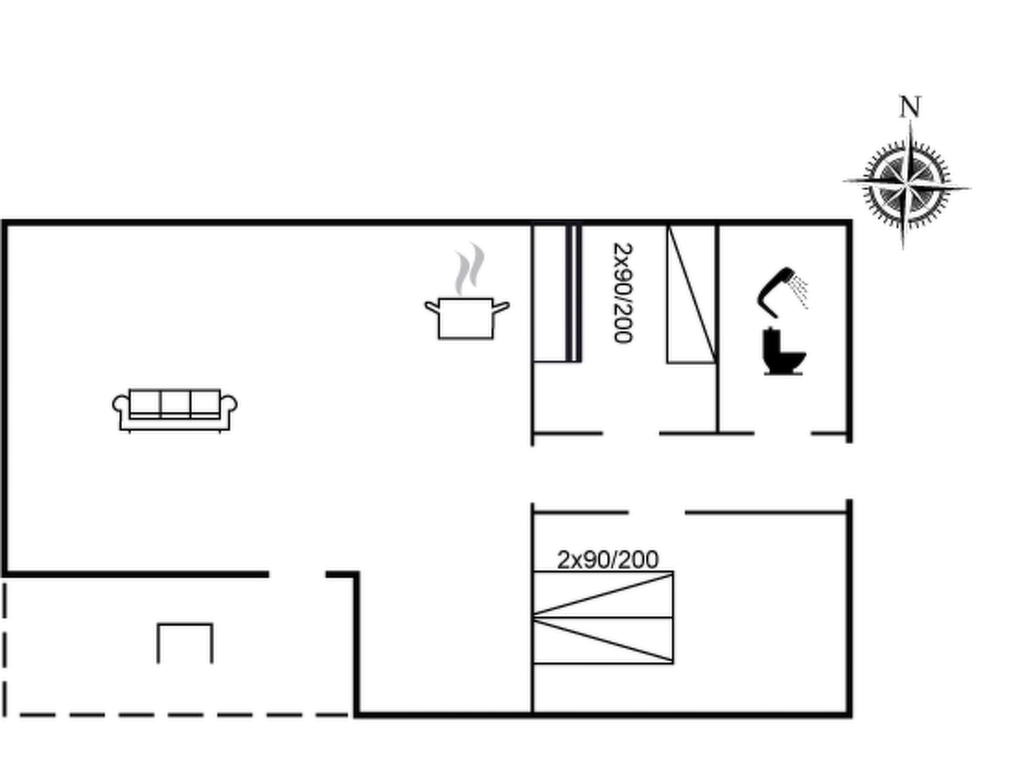 Einfamilienhaus, Baujahr 1974. 100 m vom Meer. Zur Alleinbenutzung: naturbelassenes Grundstück 2'480 m2. Terrasse (9 m2), Parkplatz beim Haus. E-Ladestation. Lebensmittelgeschäft 6 km. Der Besitzer akzeptiert keine Jugendgruppen.