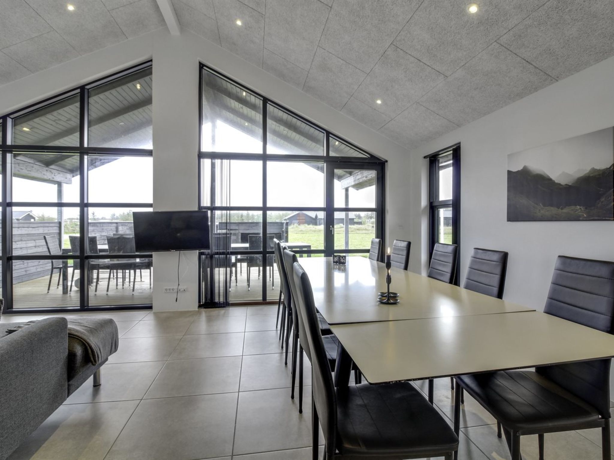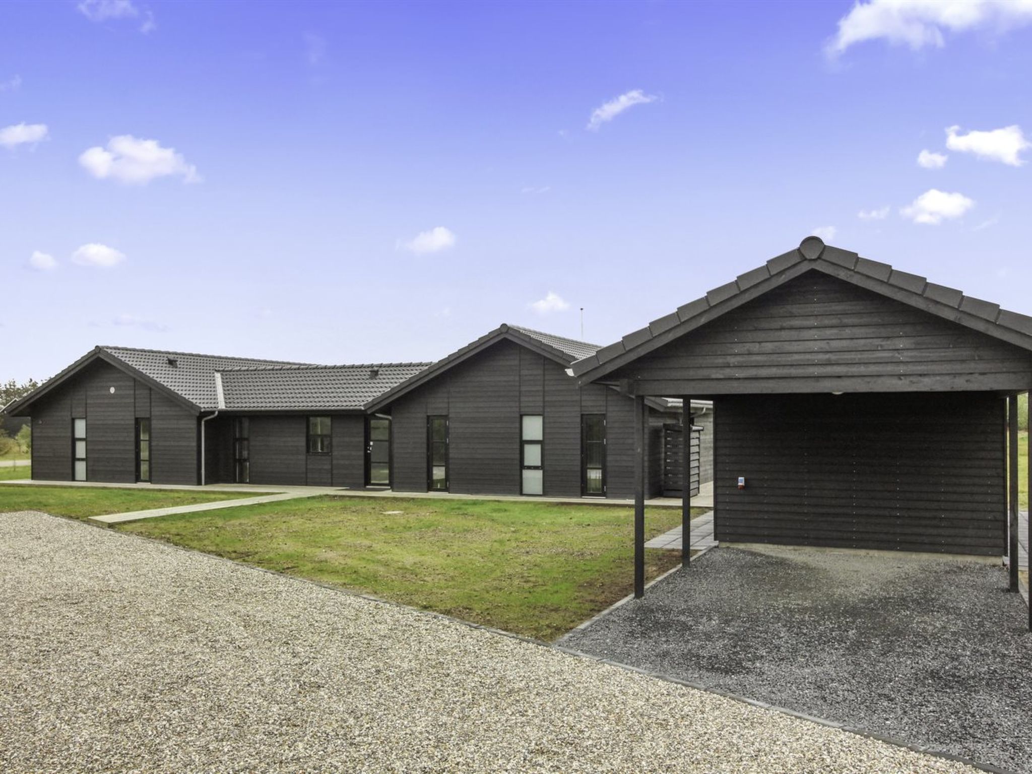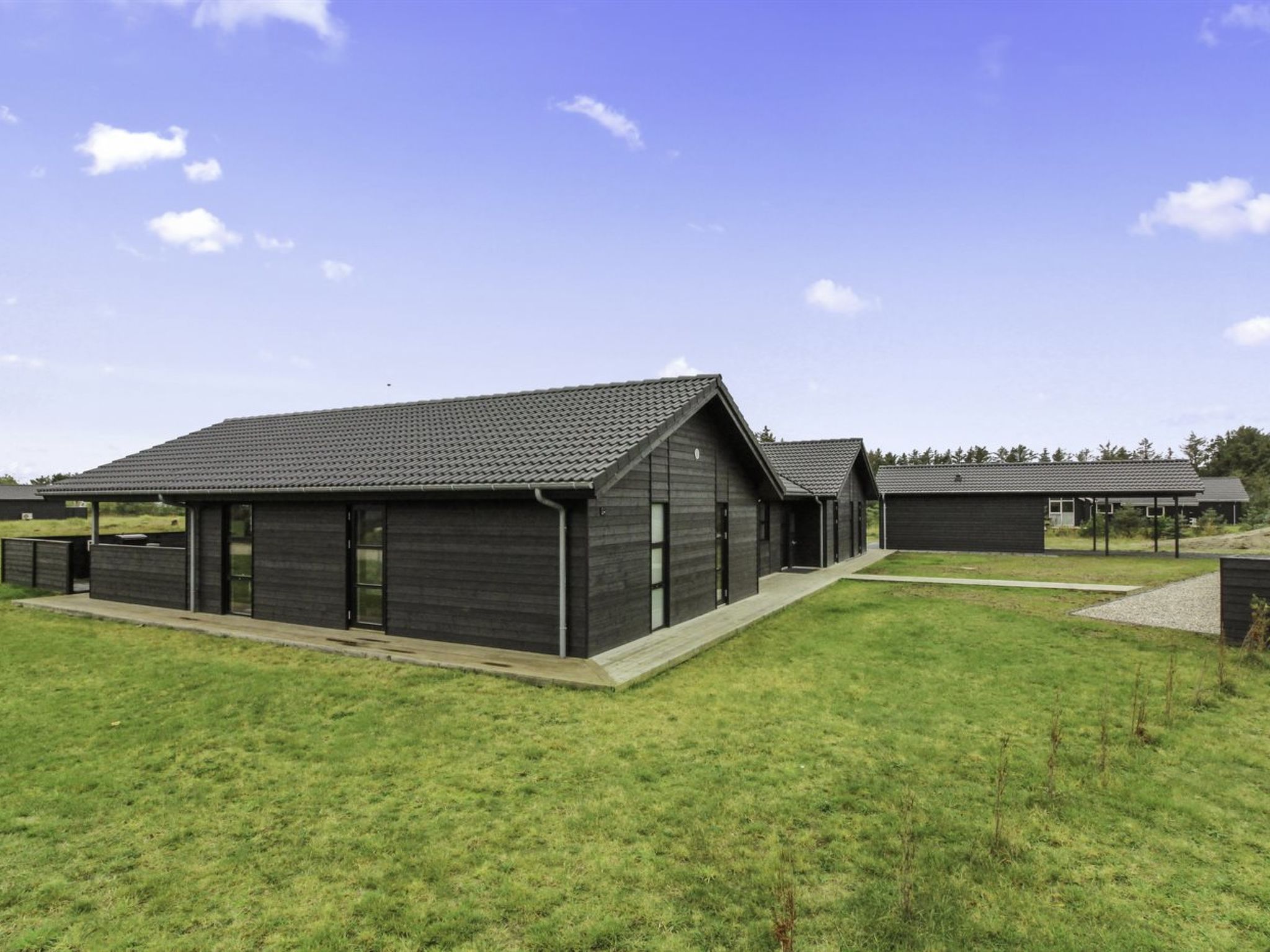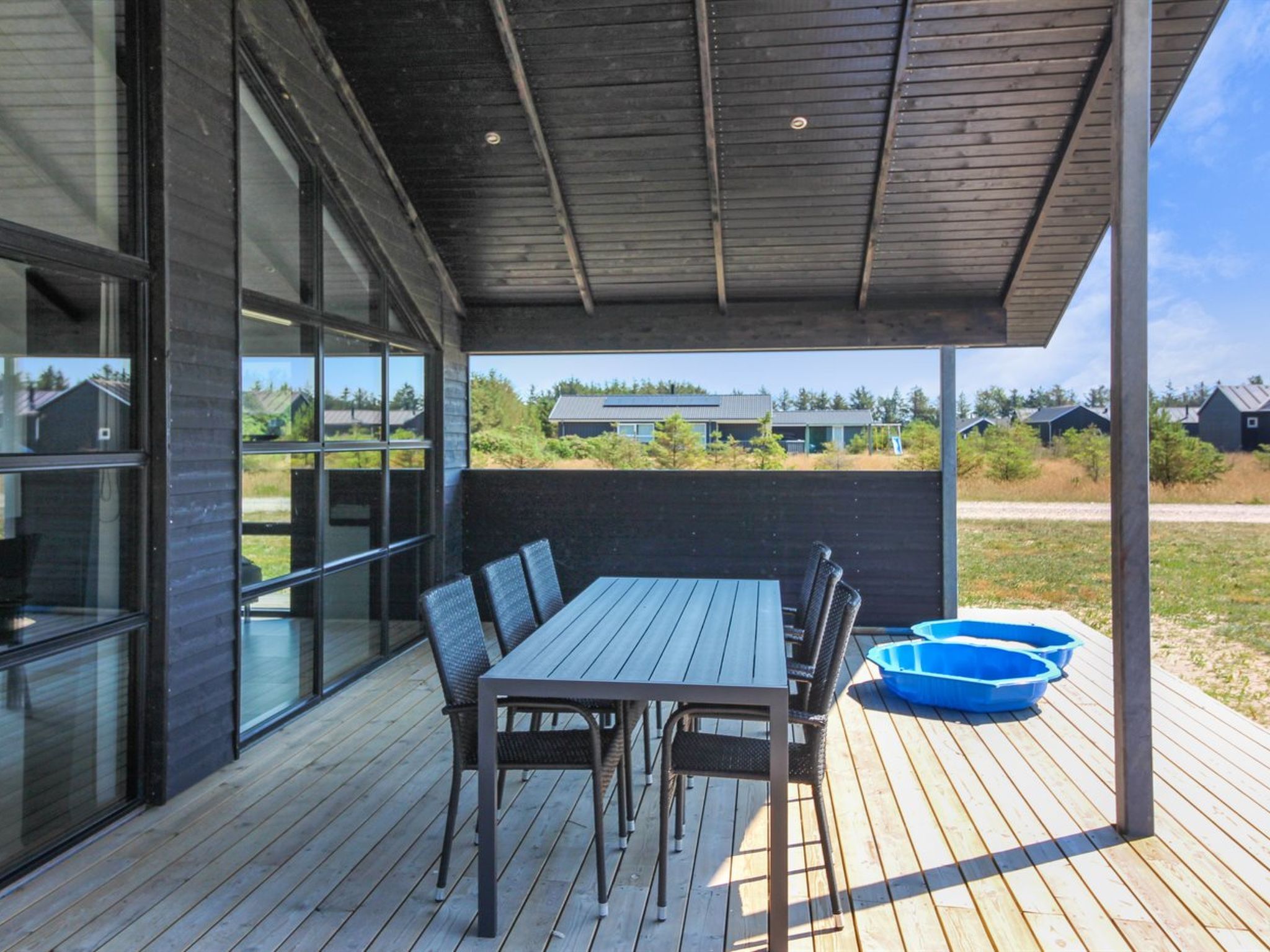 Einfamilienhaus, Baujahr 2019. 900 m vom Meer. Zur Alleinbenutzung: naturbelassenes Grundstück 2'500 m2. Terrasse (130 m2), Grill, Kinderspielplatz (Rutschbahn). Im Hause: Waschmaschine, Wäschetrockner. Parkplatz beim Haus. Carport. E-Ladestation. Lebensmittelgeschäft 200 m. Der Besitzer akzeptiert keine Jugendgruppen.
