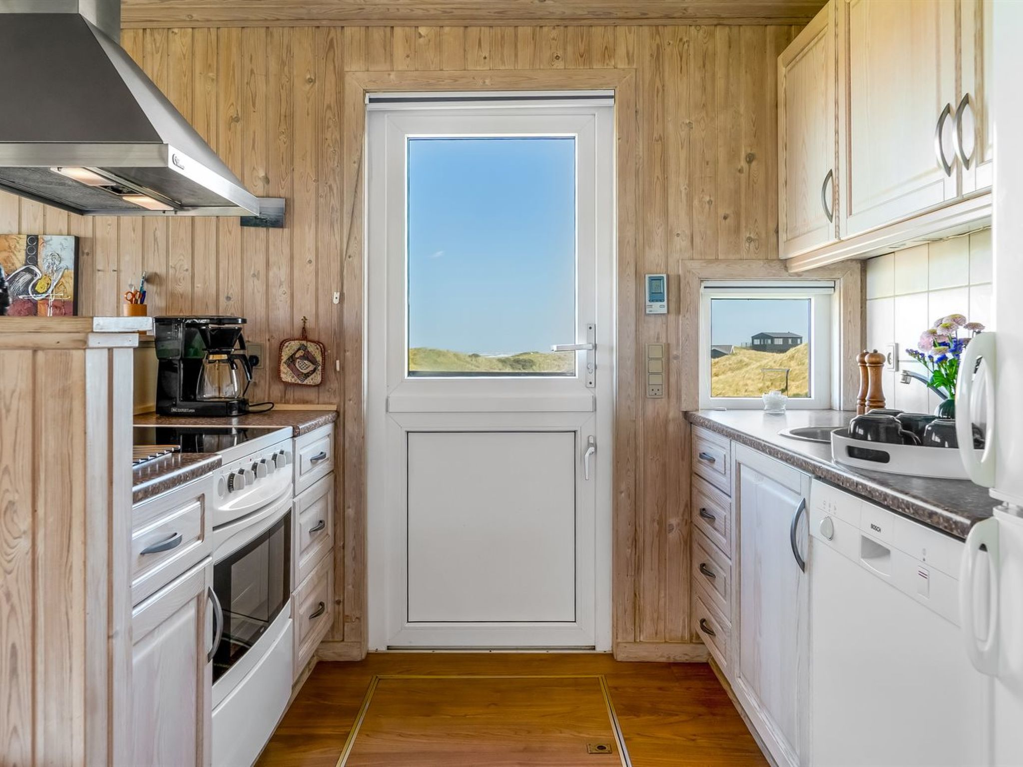 Einfamilienhaus, Baujahr 1997. 100 m vom Meer. Zur Alleinbenutzung: Grundstück 500 m2. Aussendusche, Terrasse (25 m2), Kinderspielplatz (Schaukel). Im Hause: Waschmaschine. Parkplatz beim Haus. Lebensmittelgeschäft 2 km. Der Besitzer akzeptiert keine Jugendgruppen.