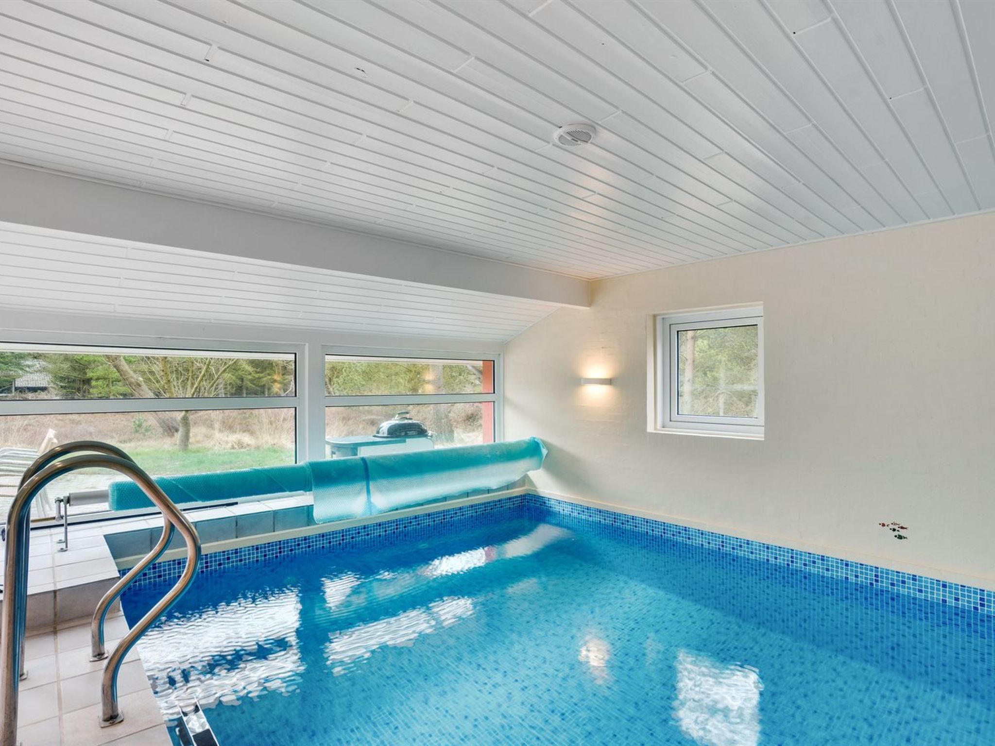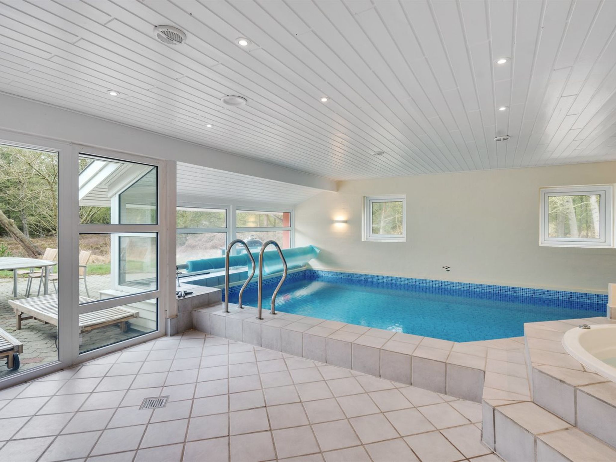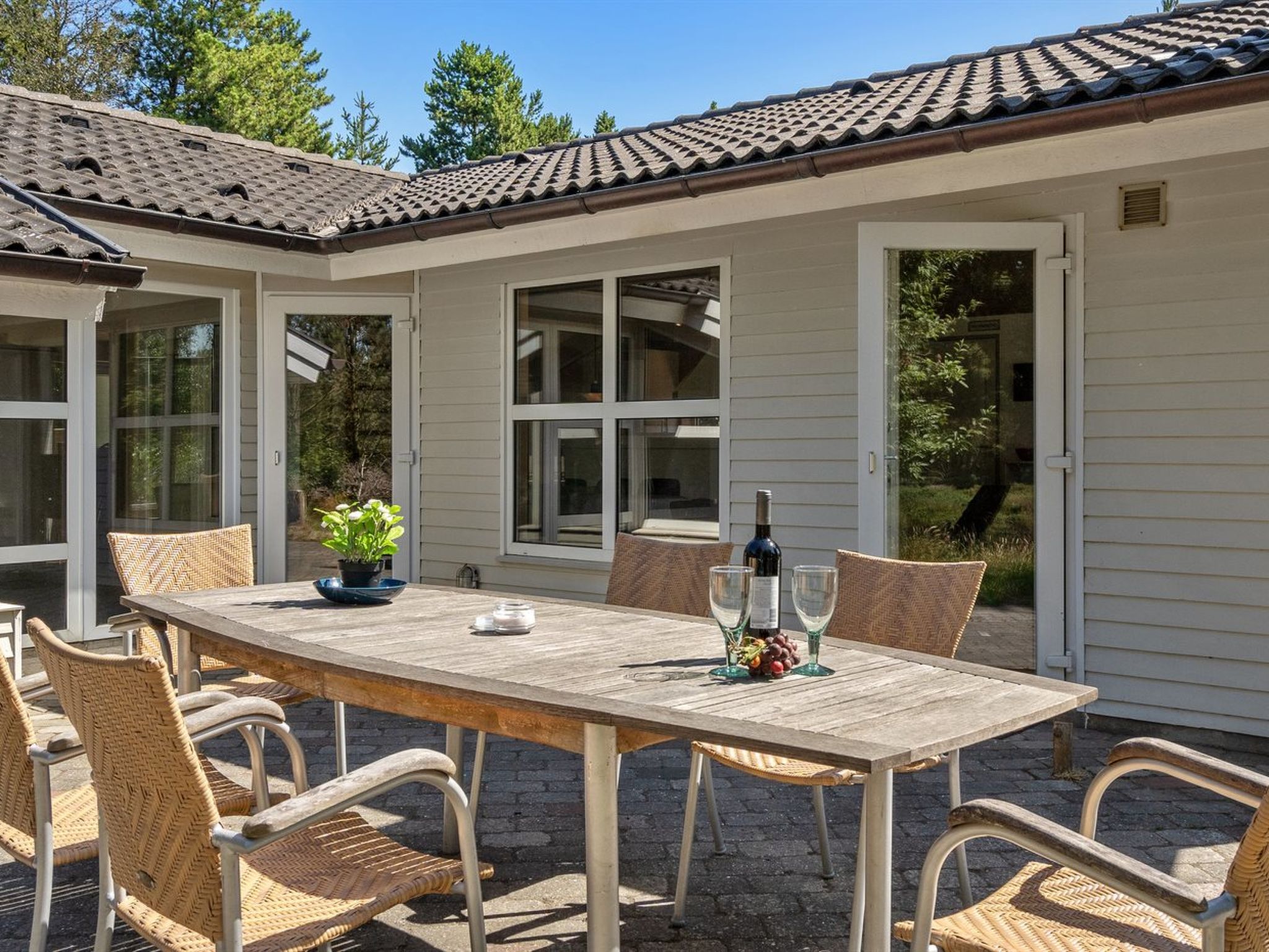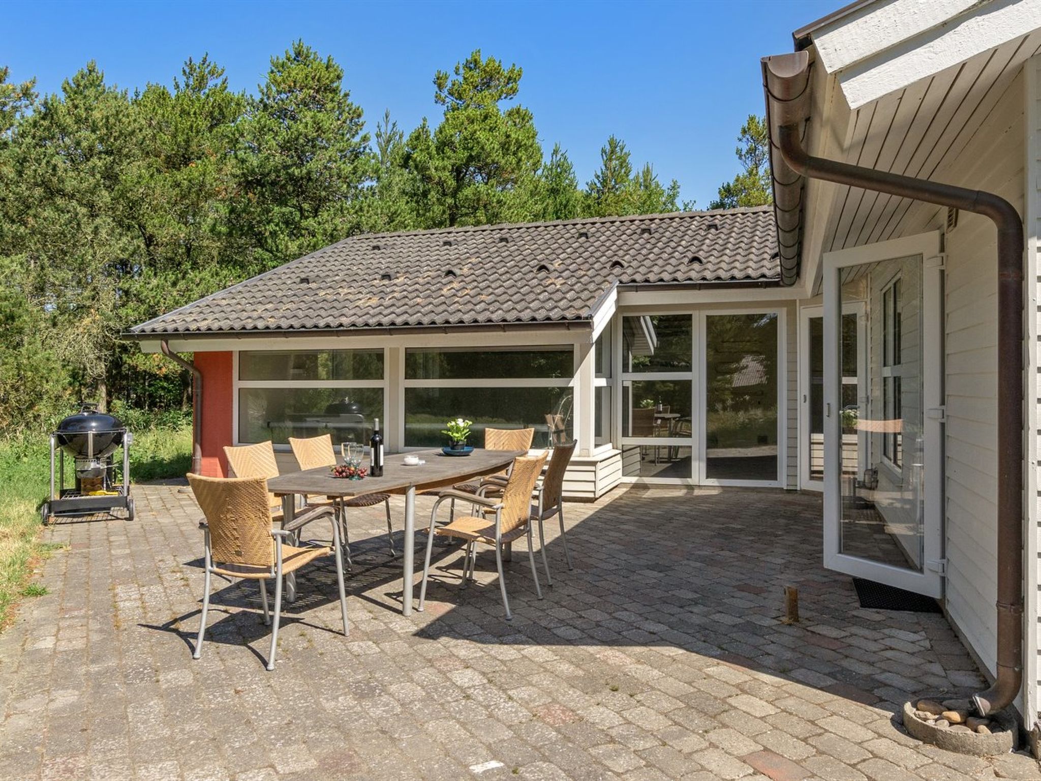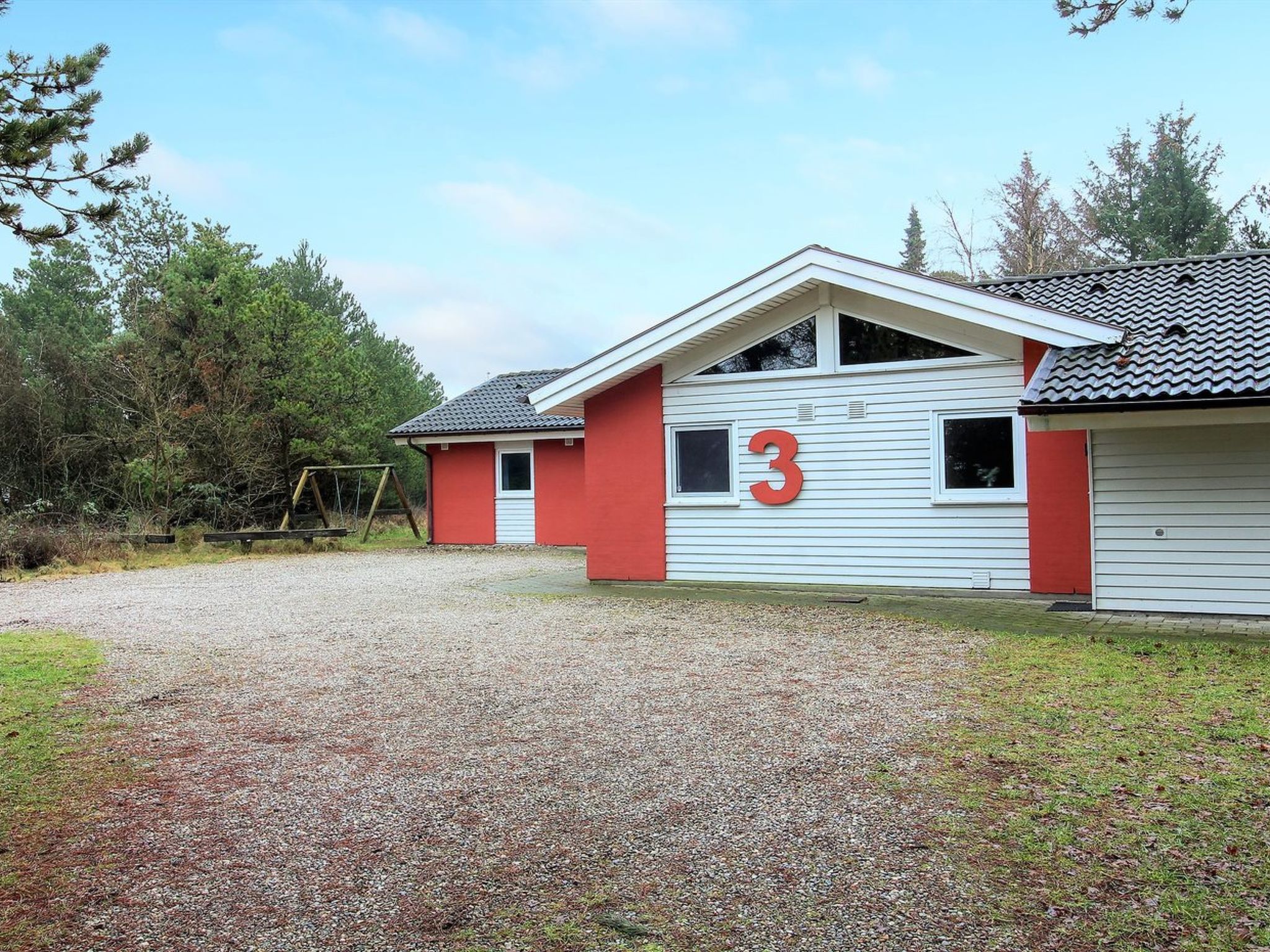 Einfamilienhaus, Baujahr 1992. 1 km vom Meer. Zur Alleinbenutzung: naturbelassenes Grundstück 2'597 m2, Hallenbad (3 x 7 m, 2'7.4 m2, 150 - 150 cm tief). Terrasse (30 m2), Grill, Kinderspielplatz (Schaukel). Im Hause: Sauna, Waschmaschine, Wäschetrockner. Parkplatz beim Haus. E-Ladestation. Lebensmittelgeschäft 1 km. Golfplatz 150 m. Der Besitzer akzeptiert keine Jugendgruppen.