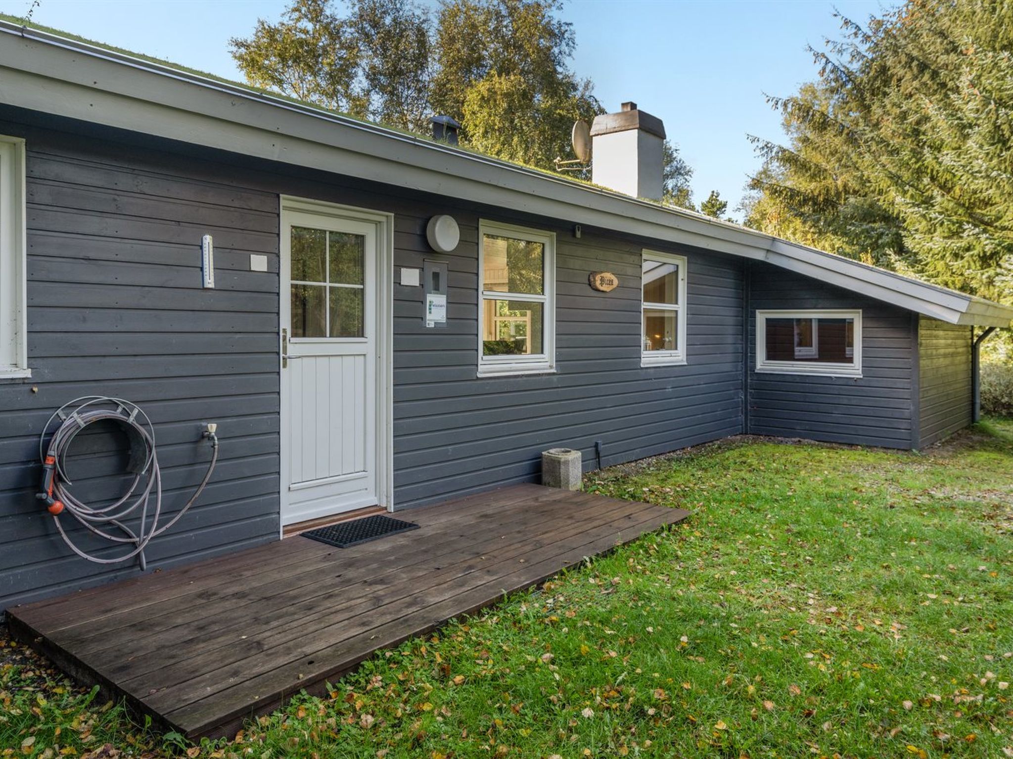Einfamilienhaus, Baujahr 1978. 2.2 km vom Meer. Zur Alleinbenutzung: naturbelassenes Grundstück 2'500 m2. Terrasse (20 m2), Kinderspielplatz (Schaukel). Im Hause: Sauna, Waschmaschine, Wäschetrockner. Parkplatz beim Haus. Lebensmittelgeschäft 4.1 km.