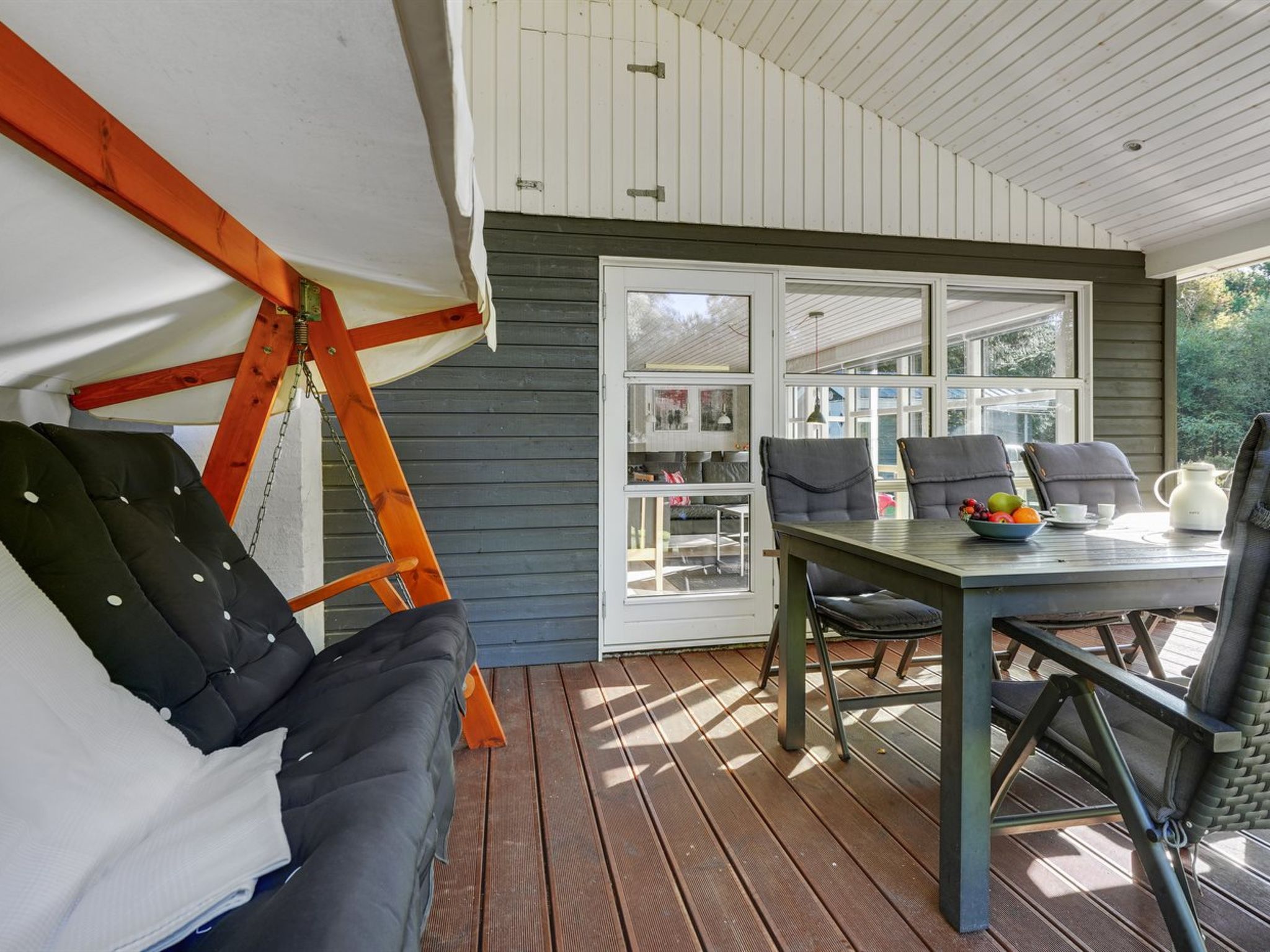 "Dorete" - 2.2km from the sea", 3-Zimmer-Haus 73 m2. Objekt geeignet für 6 Erwachsene + 1 Kind. Wohnzimmer mit 1 Doppeldiwanbett, TV, CD, Stereoanlage und DVD. 1 Zimmer mit 1 Doppelbett. 1 Zimmer mit 1 Doppelbett. Küche (4 Kochplatten, Backofen, Geschirrspüler, Mikrowelle, Tiefkühler). Dusche/WC. Terrasse 20 m2, überdacht. Zur Verfügung: Kinderhochstuhl, Babybett. Internet (WLAN). Bitte beachten: Nichtraucher-Unterkunft. Maximal 1 Haustier/Hund erlaubt. 550-11780