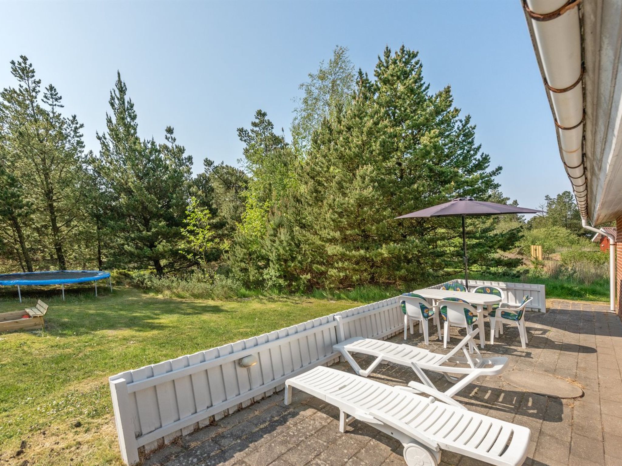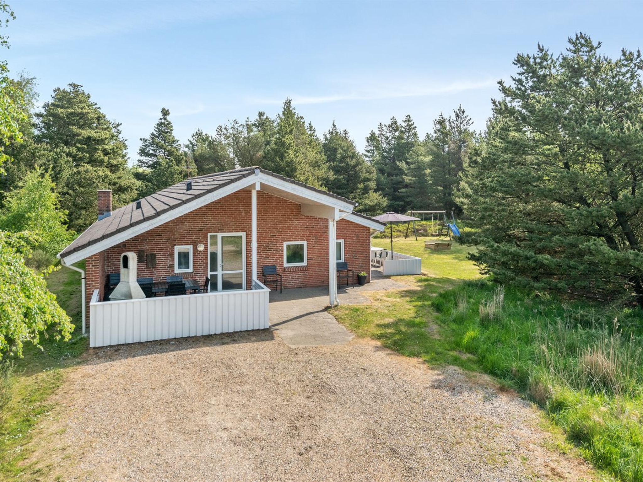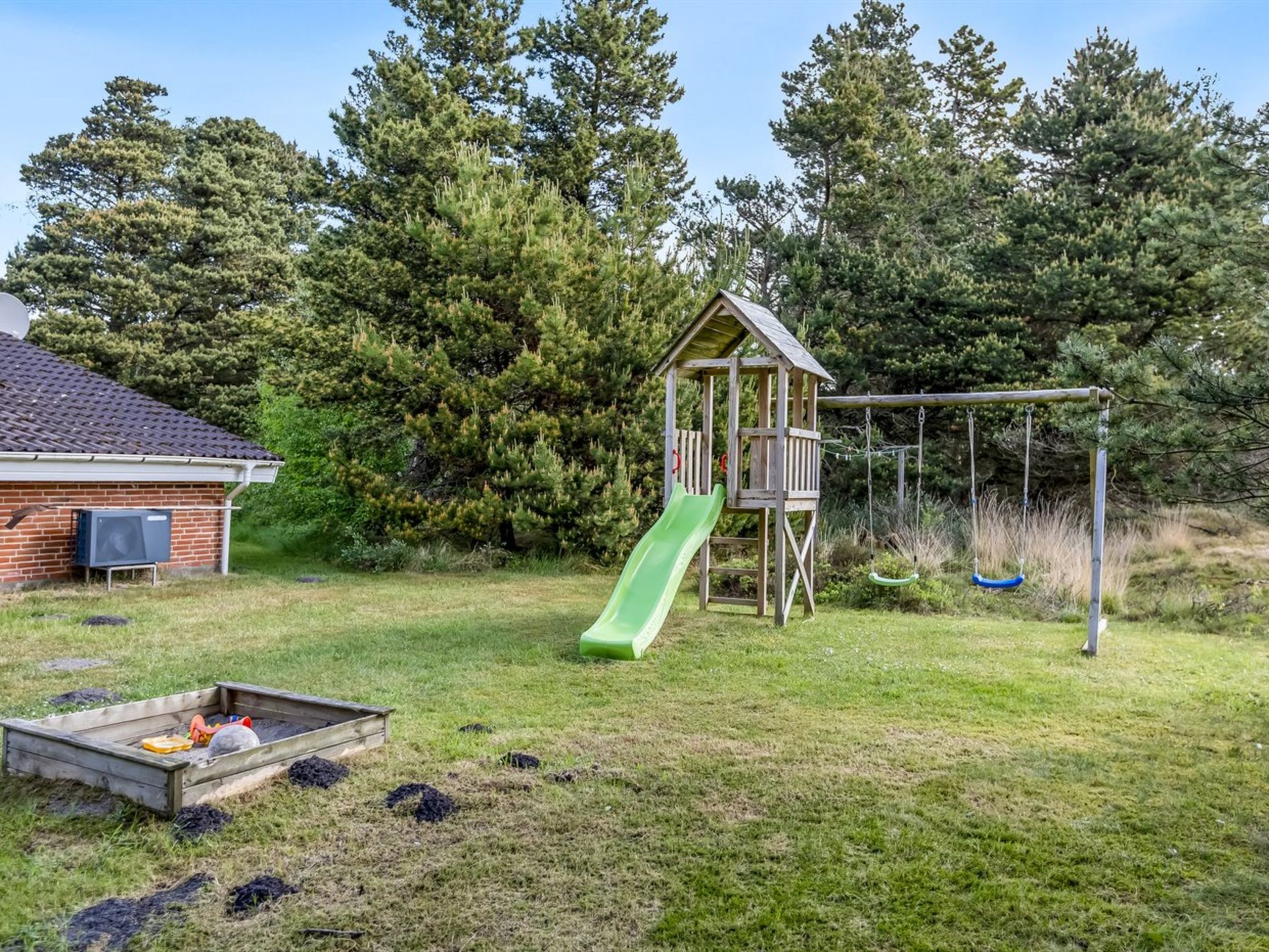 Einfamilienhaus, Baujahr 1990. 1 km vom Meer. Zur Alleinbenutzung: naturbelassenes Grundstück 2'945 m2, Hallenbad (4 x 4 m, 2'0.7 m2, 110 - 110 cm tief). Terrasse (50 m2), Kinderspielplatz (Schaukel). Im Hause: Sauna, Trampolin, Waschmaschine, Wäschetrockner. Parkplatz beim Haus. Lebensmittelgeschäft 2.8 km. Golfplatz 275 m. Der Besitzer akzeptiert keine Jugendgruppen.