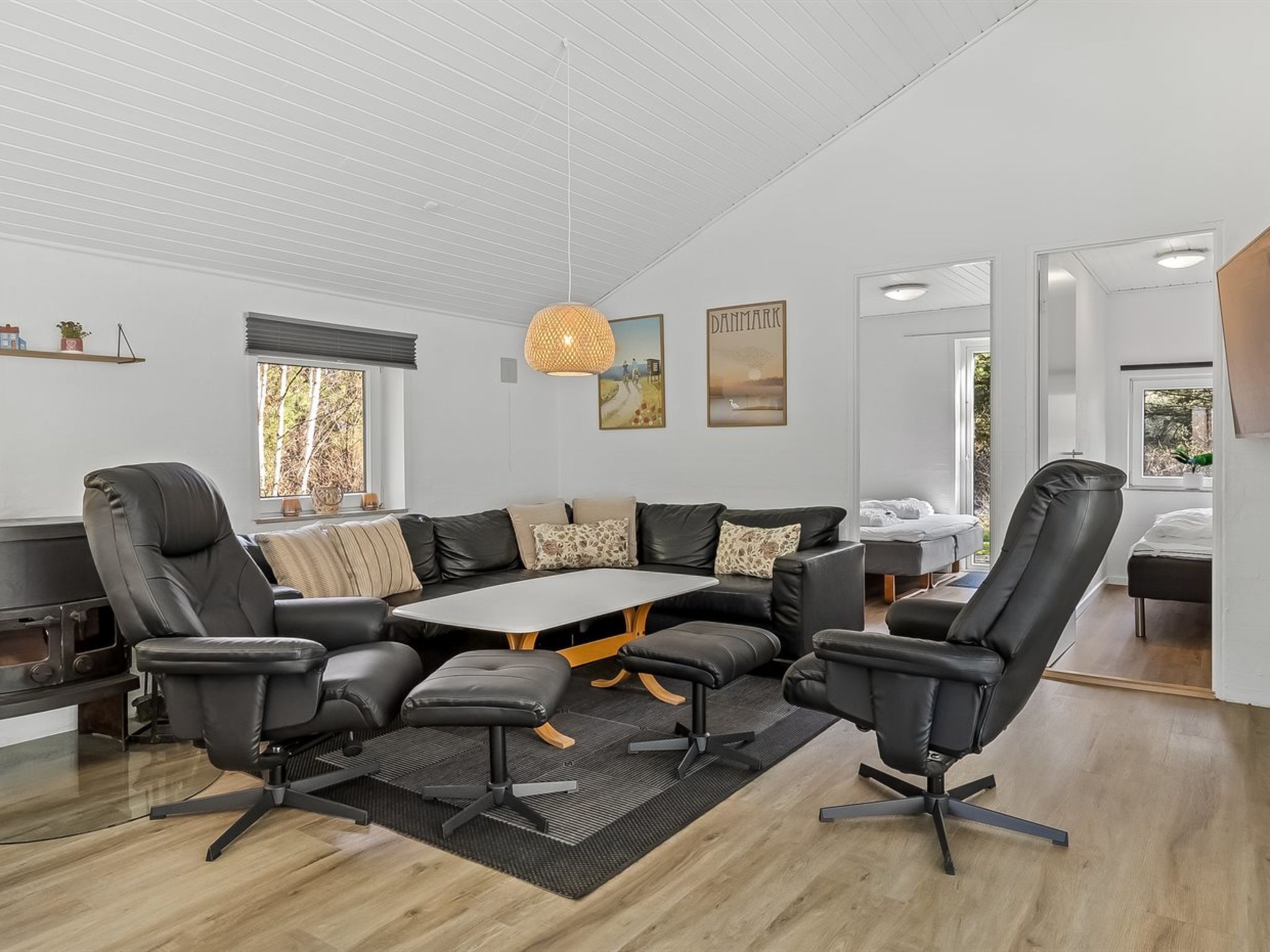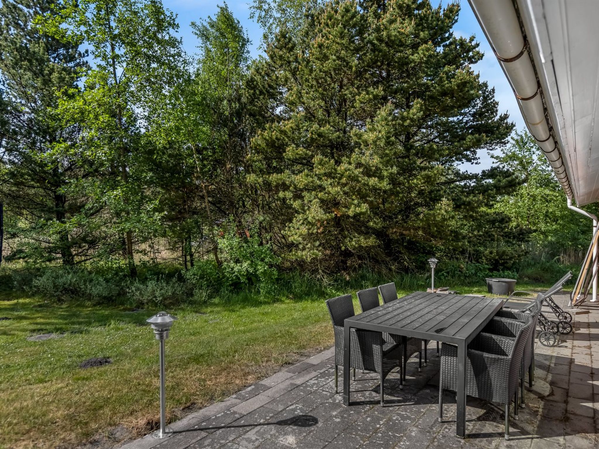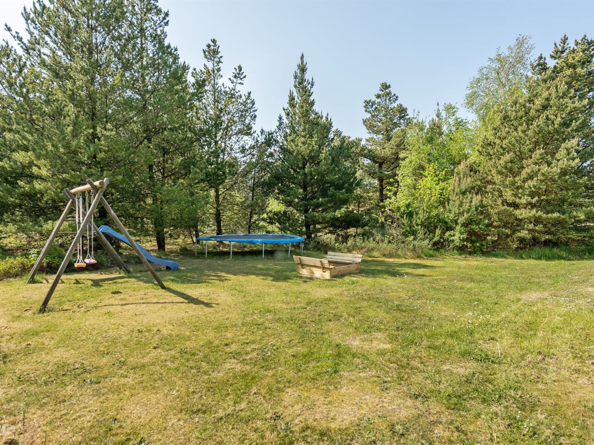 Einfamilienhaus, Baujahr 1990. 1 km vom Meer. Zur Alleinbenutzung: naturbelassenes Grundstück 2'945 m2, Hallenbad (4 x 4 m, 2'0.7 m2, 110 - 110 cm tief). Terrasse (50 m2), Kinderspielplatz (Schaukel). Im Hause: Sauna, Trampolin, Waschmaschine, Wäschetrockner. Parkplatz beim Haus. Lebensmittelgeschäft 2.8 km. Golfplatz 275 m. Der Besitzer akzeptiert keine Jugendgruppen.