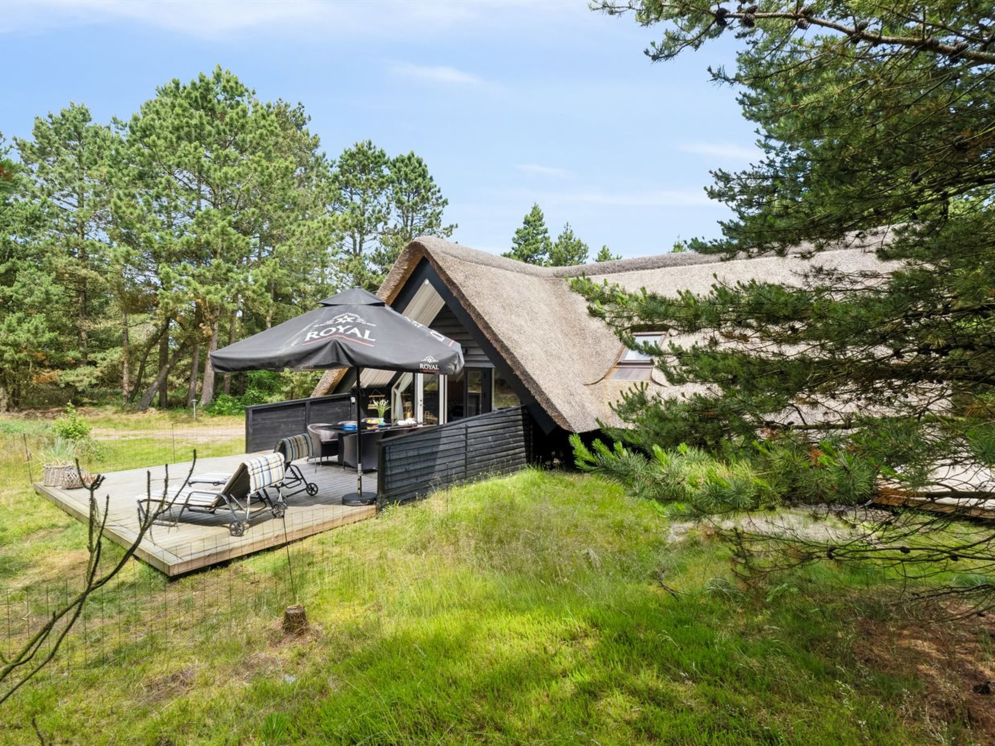 Einfamilienhaus, Baujahr 1973. 3.2 km vom Meer. Zur Alleinbenutzung: naturbelassenes Grundstück 2'733 m2. Terrasse (36 m2). Im Hause: Waschmaschine. Parkplatz beim Haus. E-Ladestation. Lebensmittelgeschäft 2.9 km. Golfplatz 9.5 km. Der Besitzer akzeptiert keine Jugendgruppen.