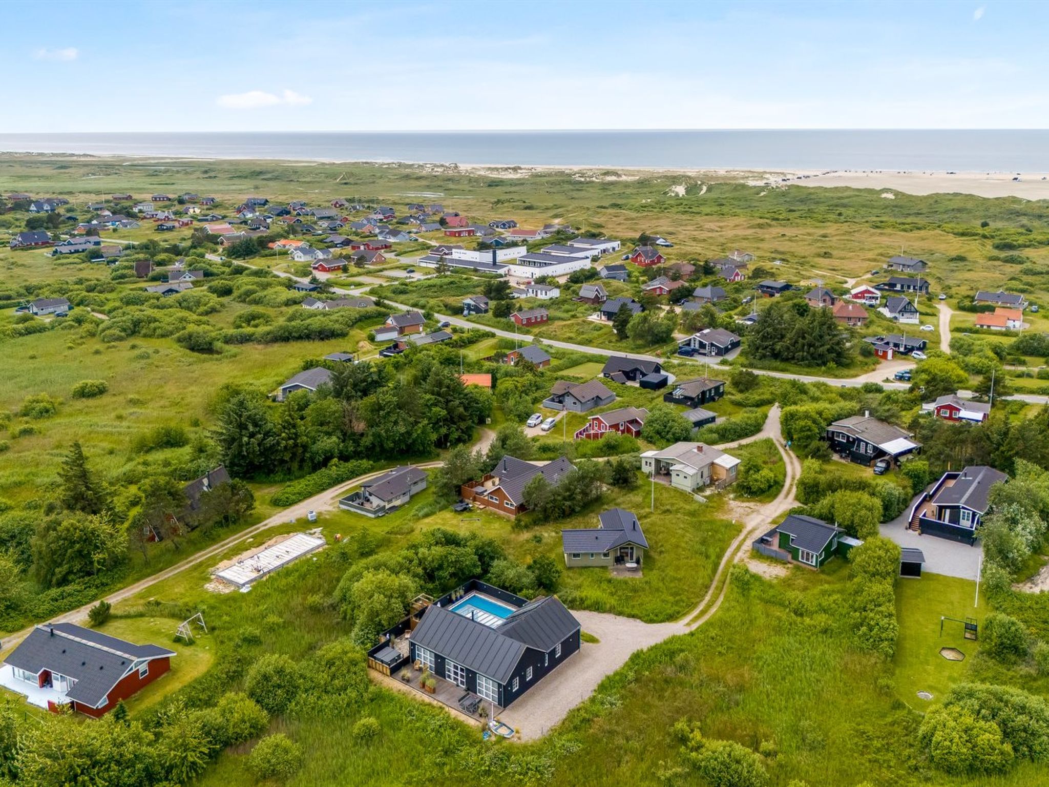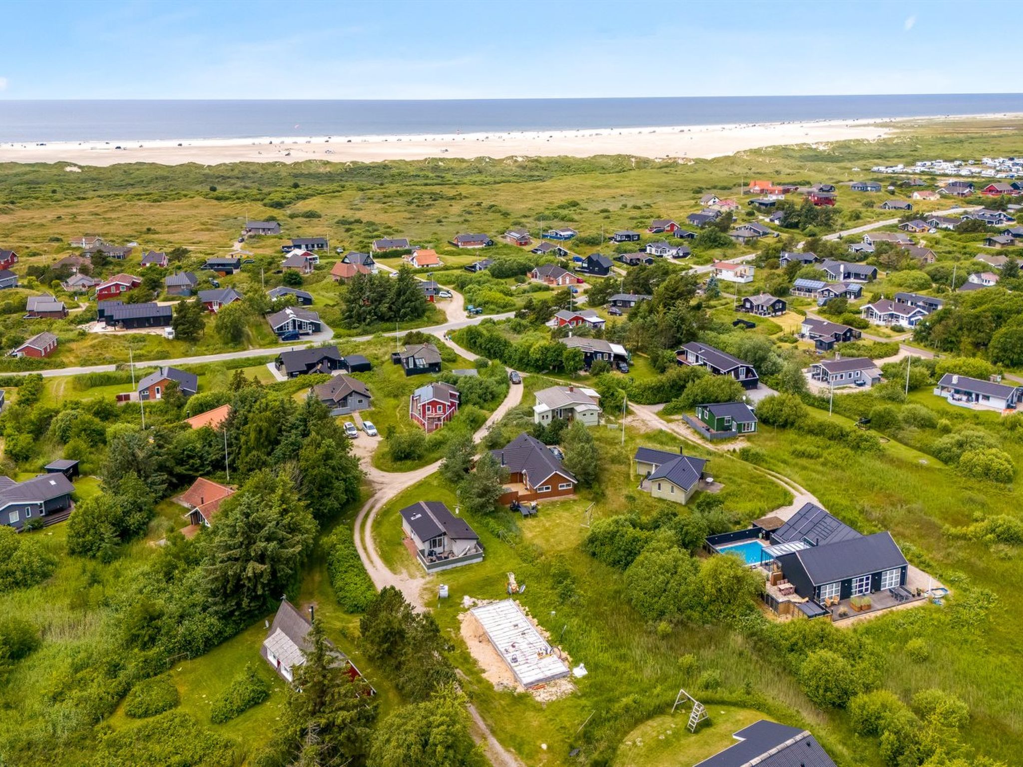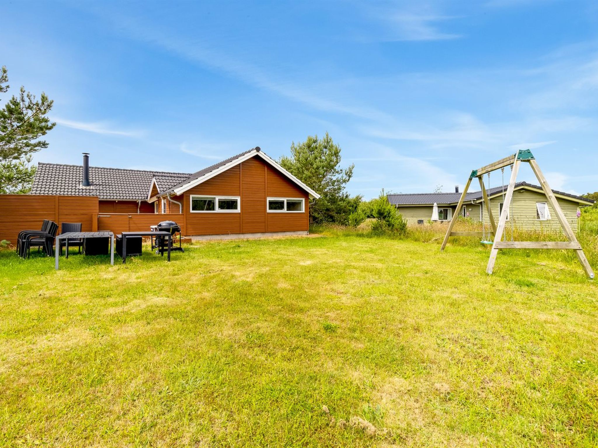 Einfamilienhaus, Baujahr 2009. 800 m vom Meer. Zur Alleinbenutzung: naturbelassenes Grundstück 1'200 m2. Terrasse (60 m2), Kinderspielplatz (Schaukel). Im Hause: Sauna, Waschmaschine, Wäschetrockner. Parkplatz beim Haus. E-Ladestation. Lebensmittelgeschäft 500 m. Der Besitzer akzeptiert keine Jugendgruppen.