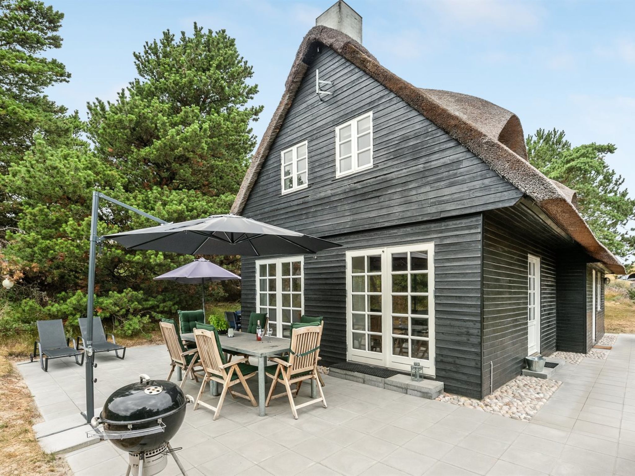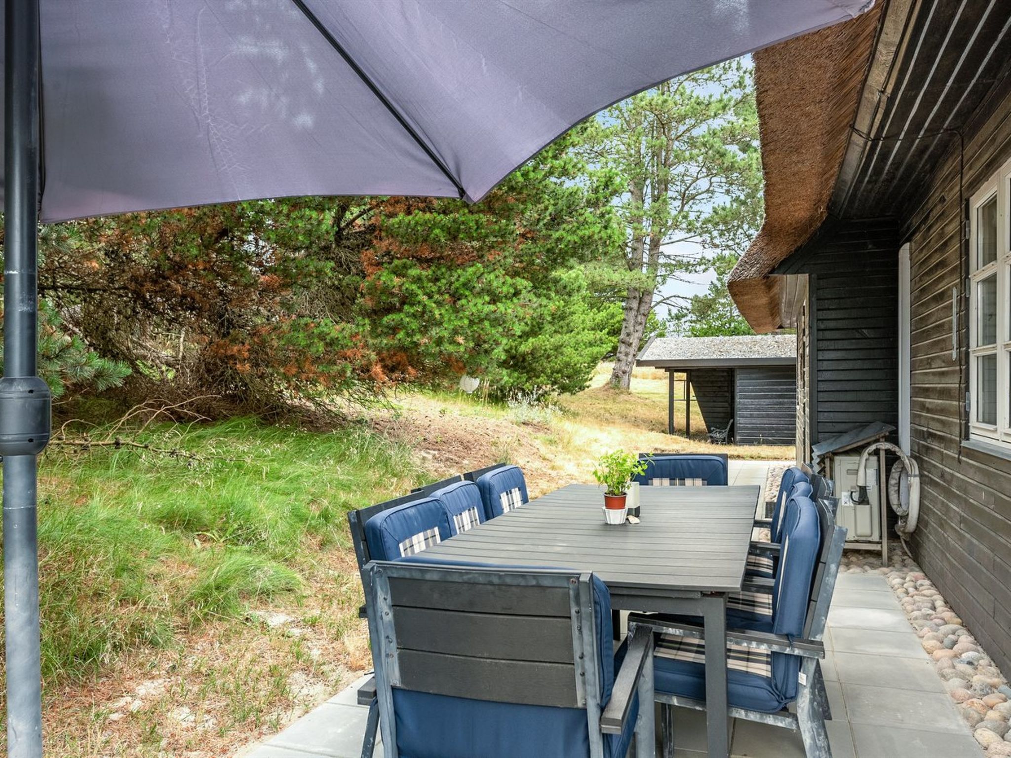 Einfamilienhaus, Baujahr 1969. 2.3 km vom Meer. Zur Alleinbenutzung: naturbelassenes Grundstück 2'500 m2. Terrasse (50 m2), Kinderspielplatz (Schaukel). Im Hause: Sauna, Waschmaschine. Parkplatz beim Haus. Lebensmittelgeschäft 1 km. Golfplatz 400 m.