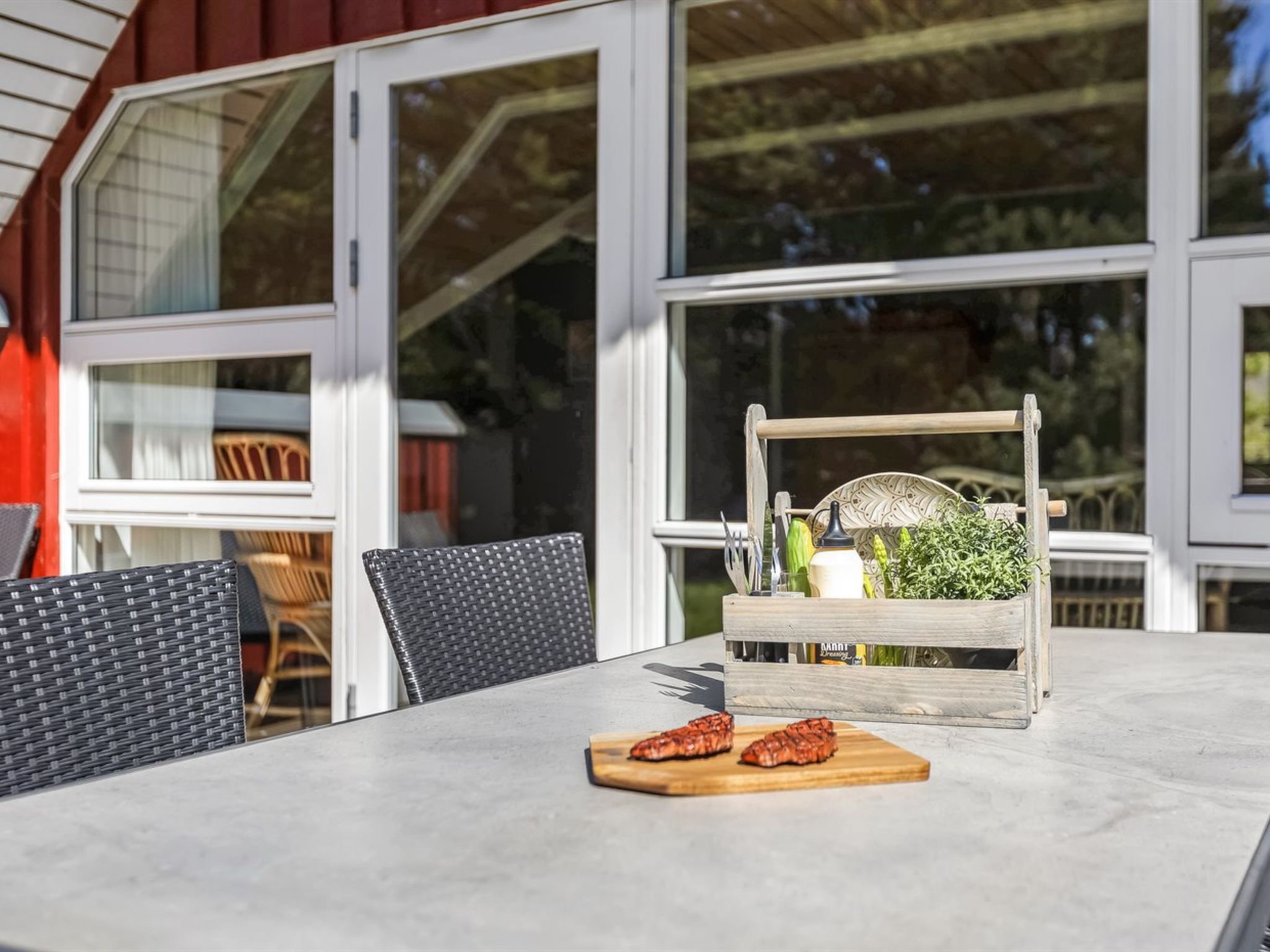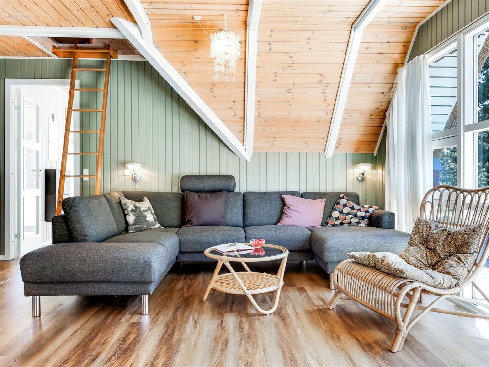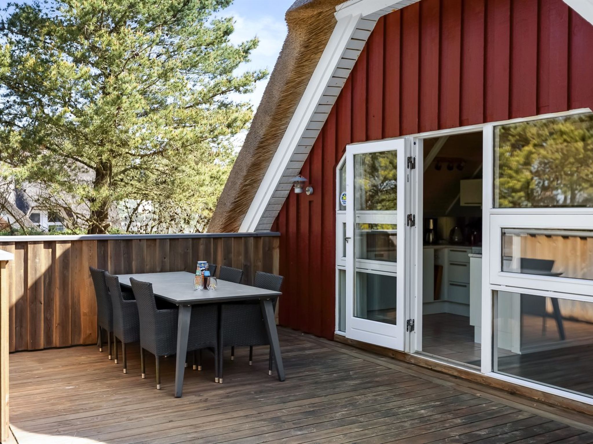 Einfamilienhaus, Baujahr 1988. 6 km vom Meer. Zur Alleinbenutzung: naturbelassenes Grundstück 2'500 m2. Terrasse (110 m2), Kinderspielplatz (Schaukel). Im Hause: Sauna, Waschmaschine, Wäschetrockner. Parkplatz beim Haus. E-Ladestation. Lebensmittelgeschäft 1 km. Golfplatz 5 km. Der Besitzer akzeptiert keine Jugendgruppen.