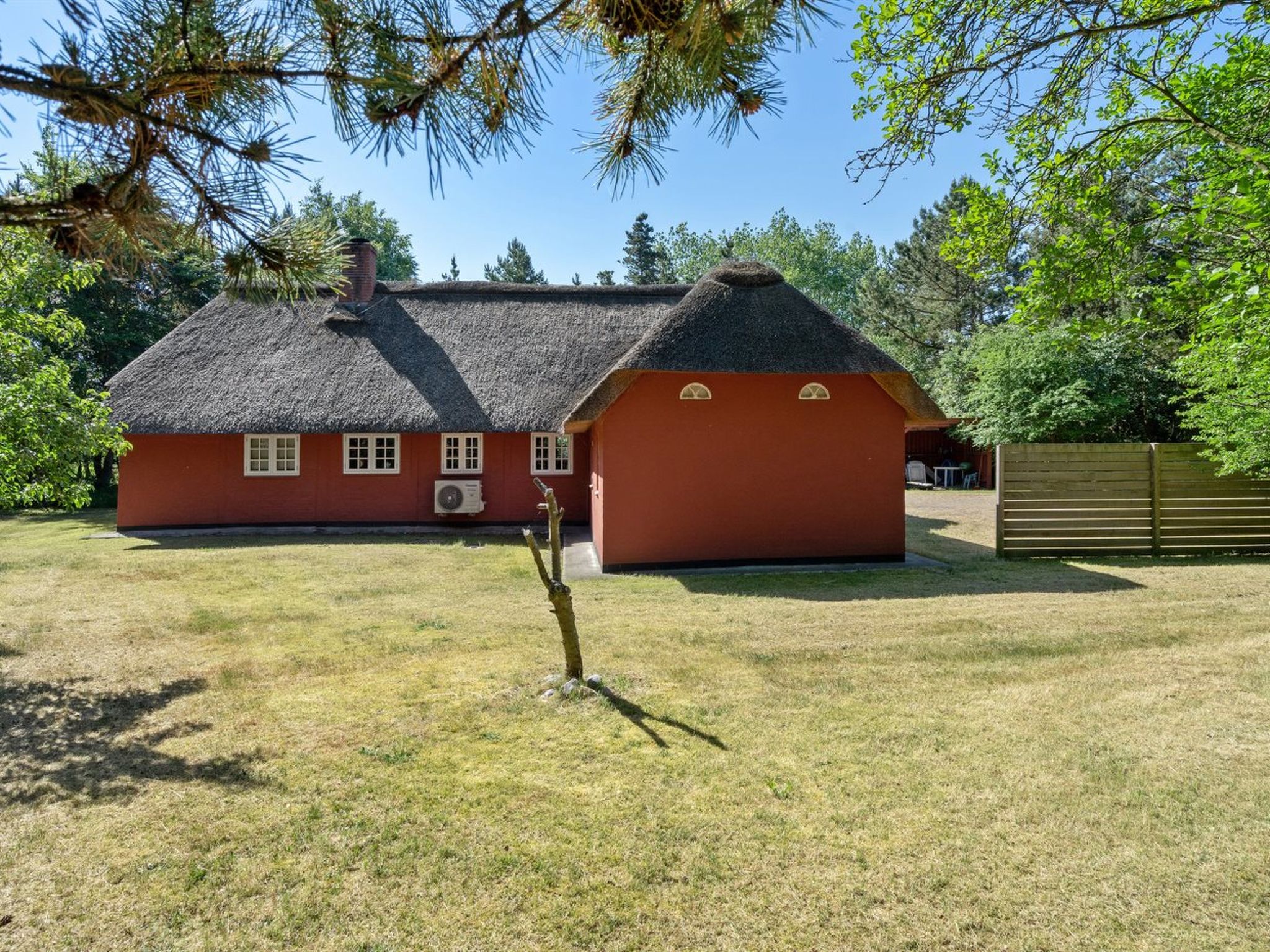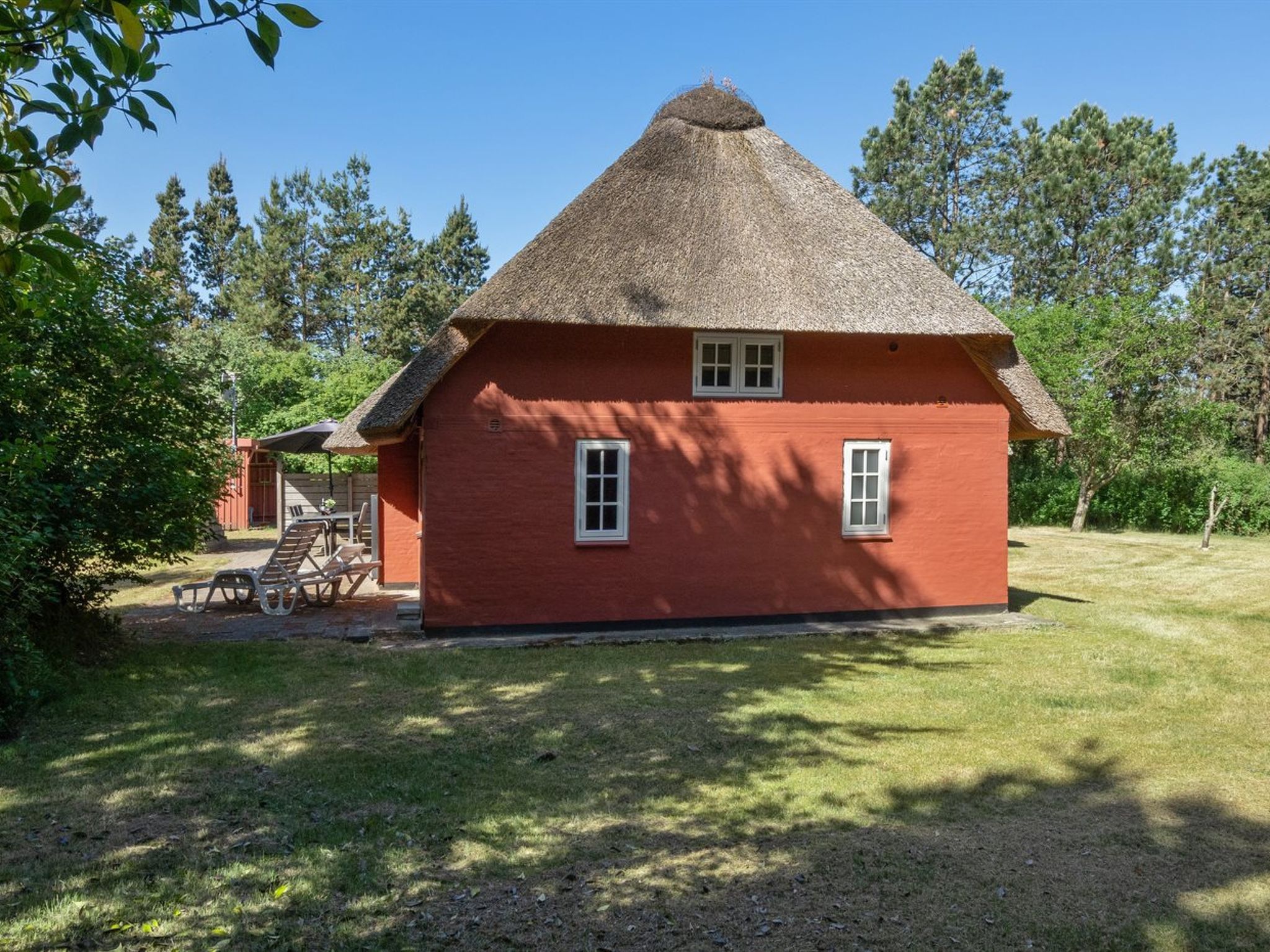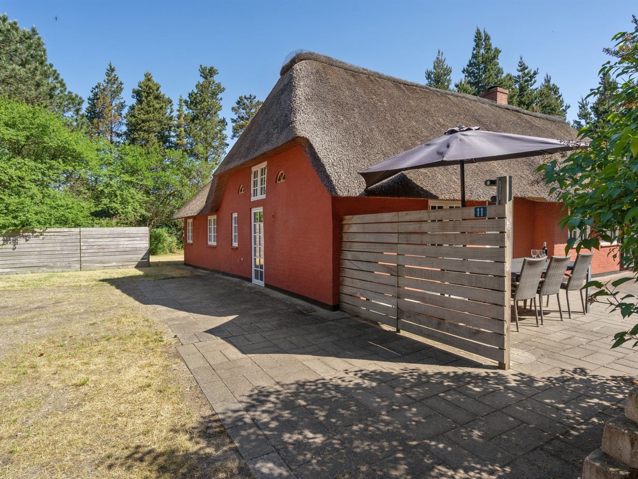 Einfamilienhaus, Baujahr 1700. 3.9 km vom Meer. Zur Alleinbenutzung: naturbelassenes Grundstück 3'072 m2. Terrasse (60 m2), Kinderspielplatz (Schaukel). Im Hause: Sauna, Waschmaschine. Parkplatz beim Haus. Carport. Lebensmittelgeschäft 300 m. Der Besitzer akzeptiert keine Jugendgruppen.