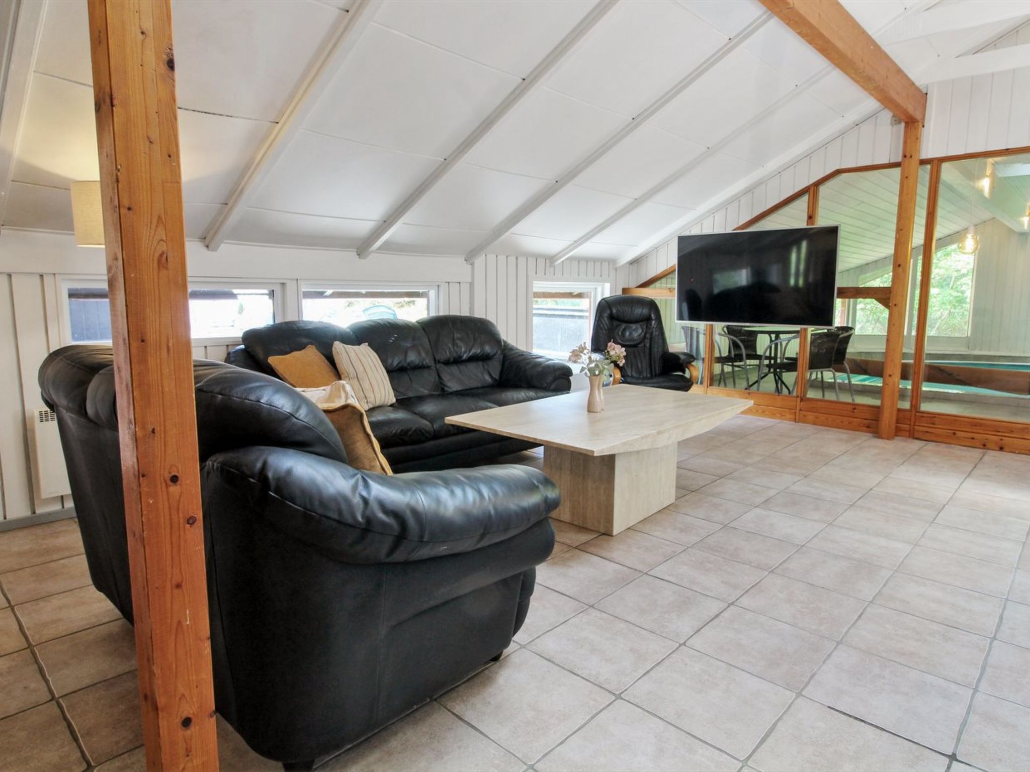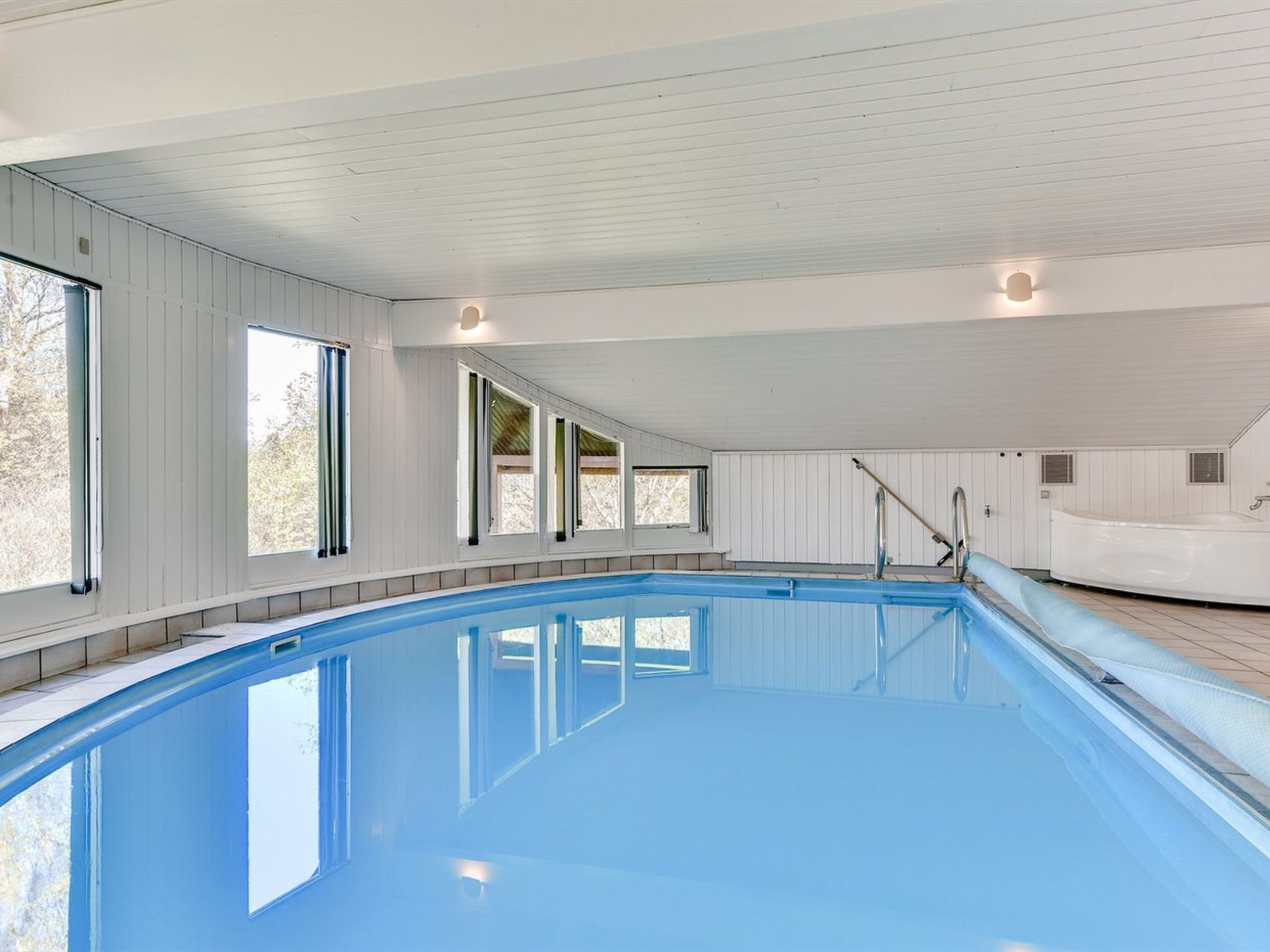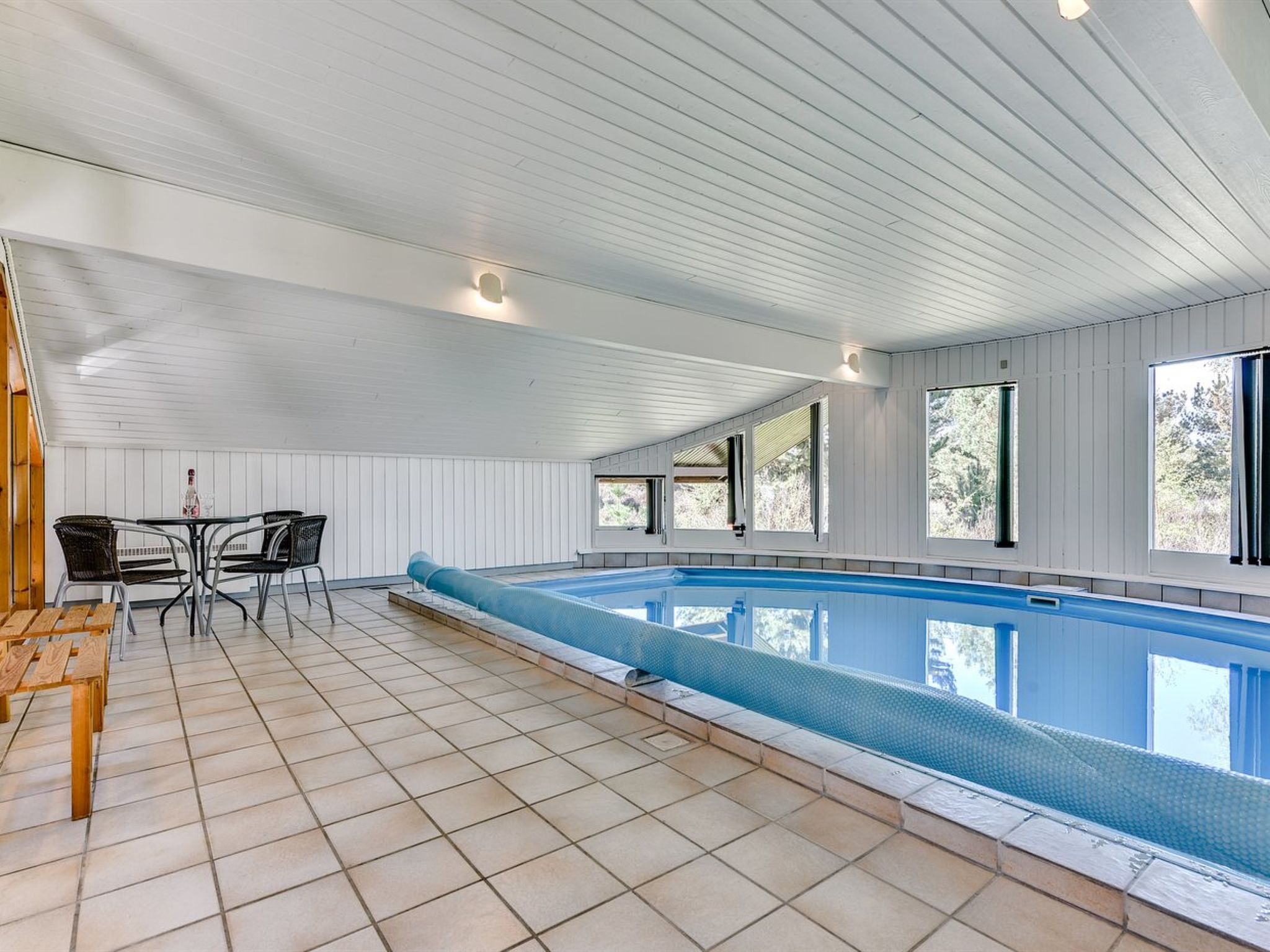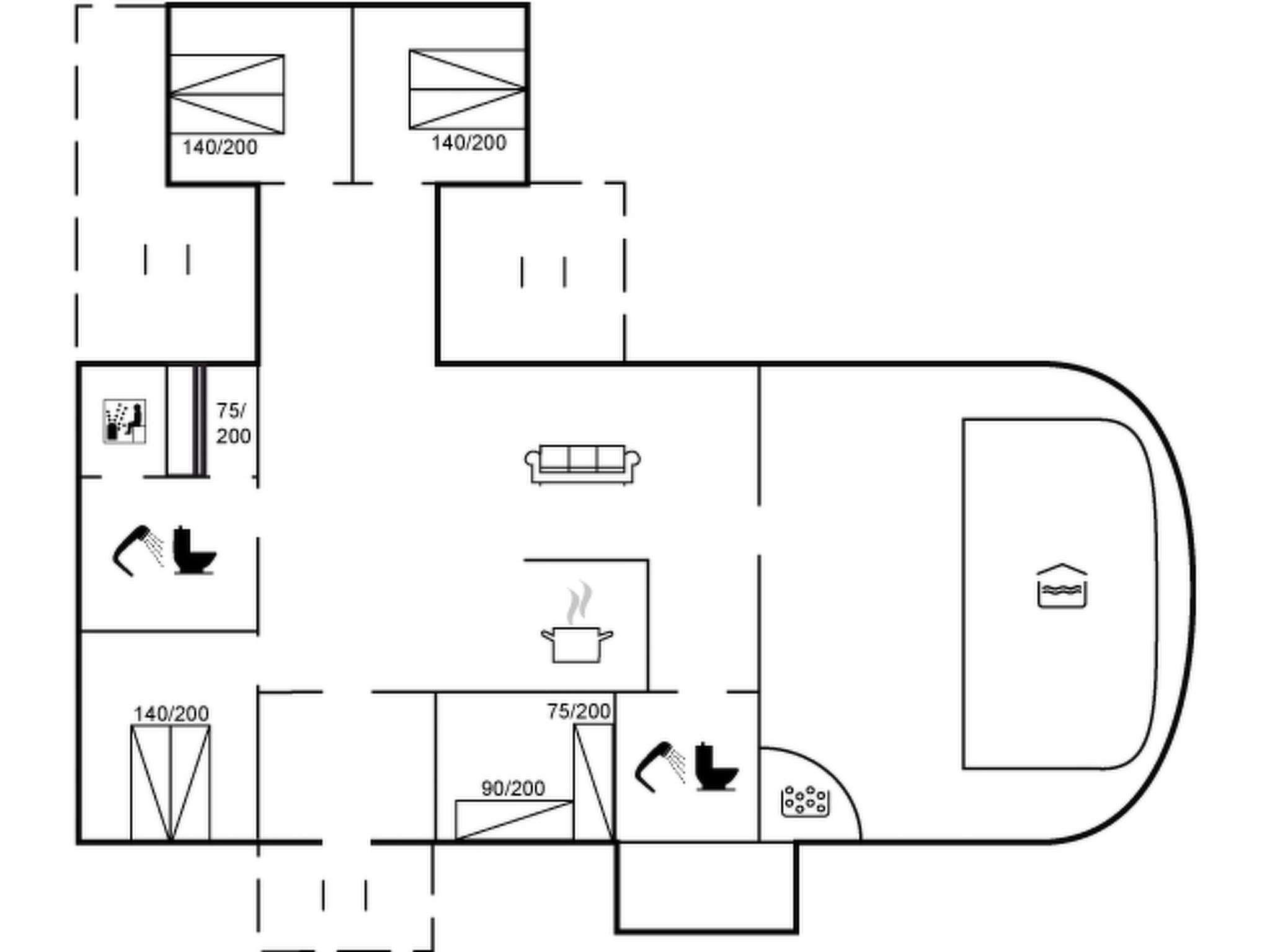 Einfamilienhaus, Baujahr 1977. 3.1 km vom Meer. Zur Alleinbenutzung: naturbelassenes Grundstück 3'000 m2, Hallenbad (3 x 5 m, 1'9.5 m2, 120 - 120 cm tief). Terrasse (30 m2), Kinderspielplatz. Im Hause: Trampolin, Waschmaschine, Wäschetrockner. Parkplatz beim Haus. Lebensmittelgeschäft 3.4 km. Der Besitzer akzeptiert keine Jugendgruppen.