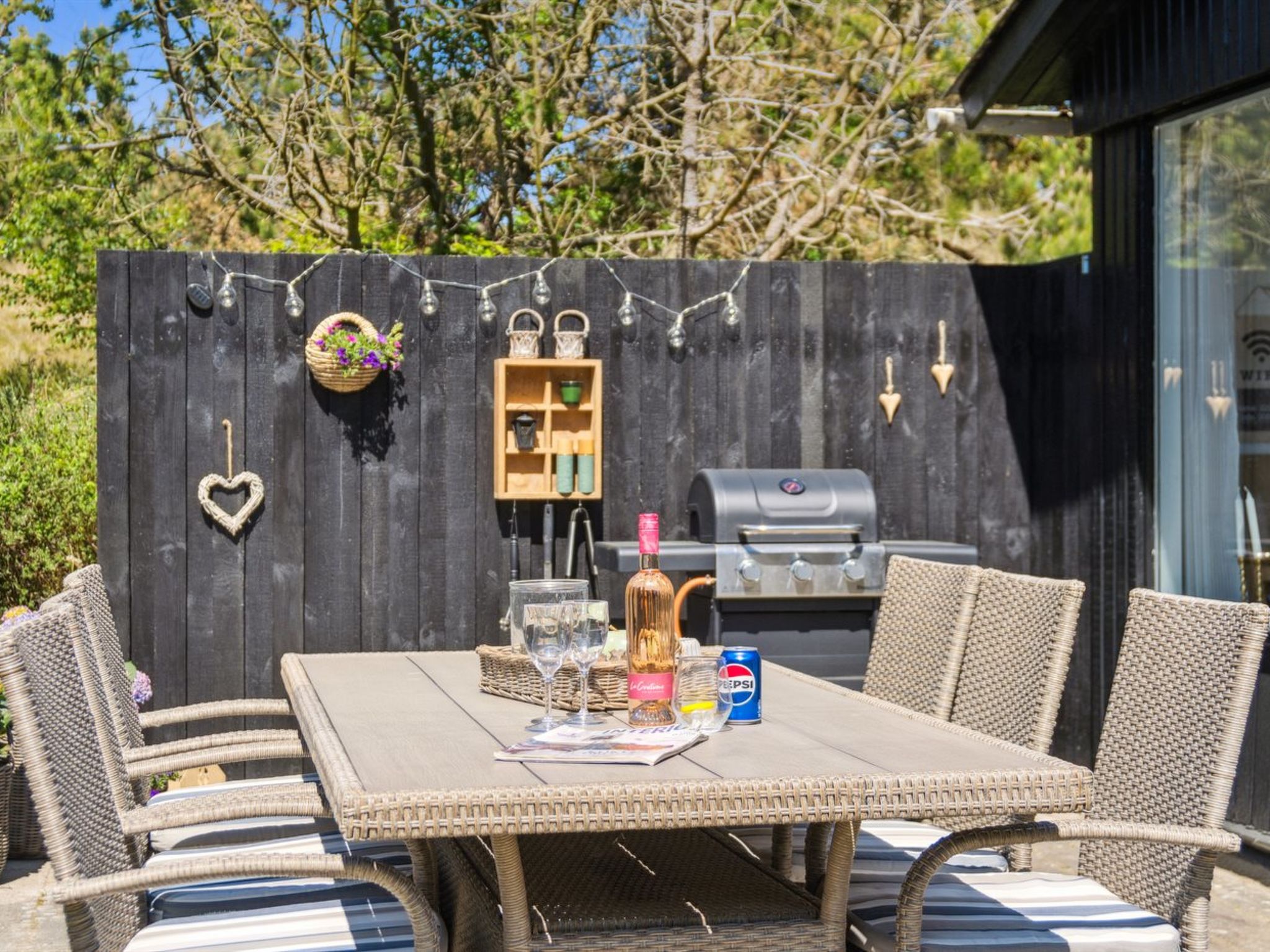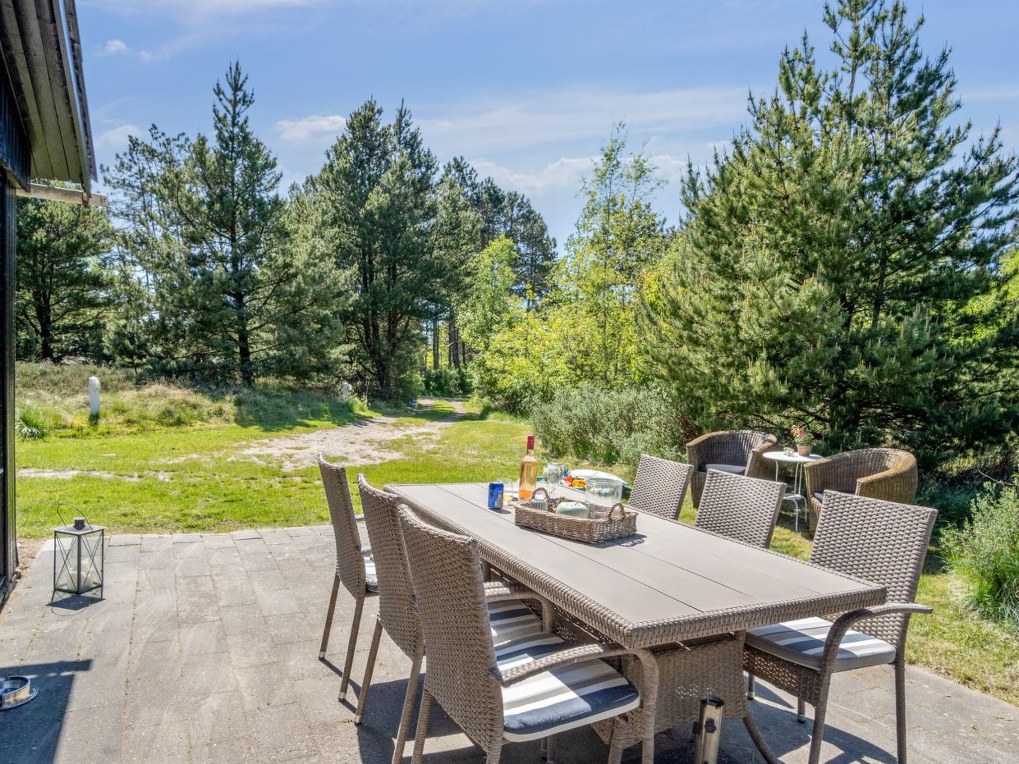 Einfamilienhaus, Baujahr 1965. 1.3 km vom Meer. Zur Alleinbenutzung: naturbelassenes Grundstück 2'500 m2. Terrasse (45 m2), Kinderspielplatz. Im Hause: Waschmaschine. Parkplatz beim Haus. Lebensmittelgeschäft 1.5 km.