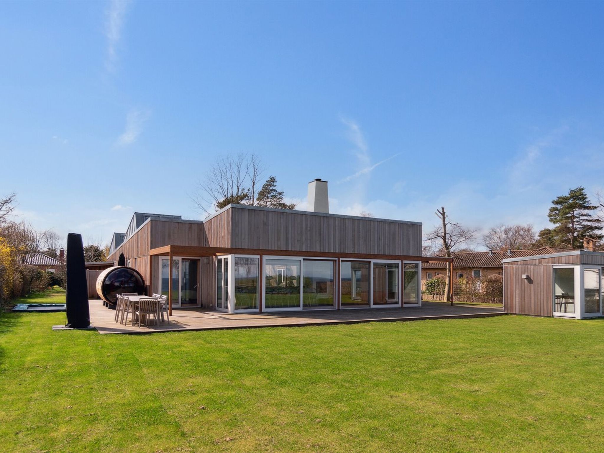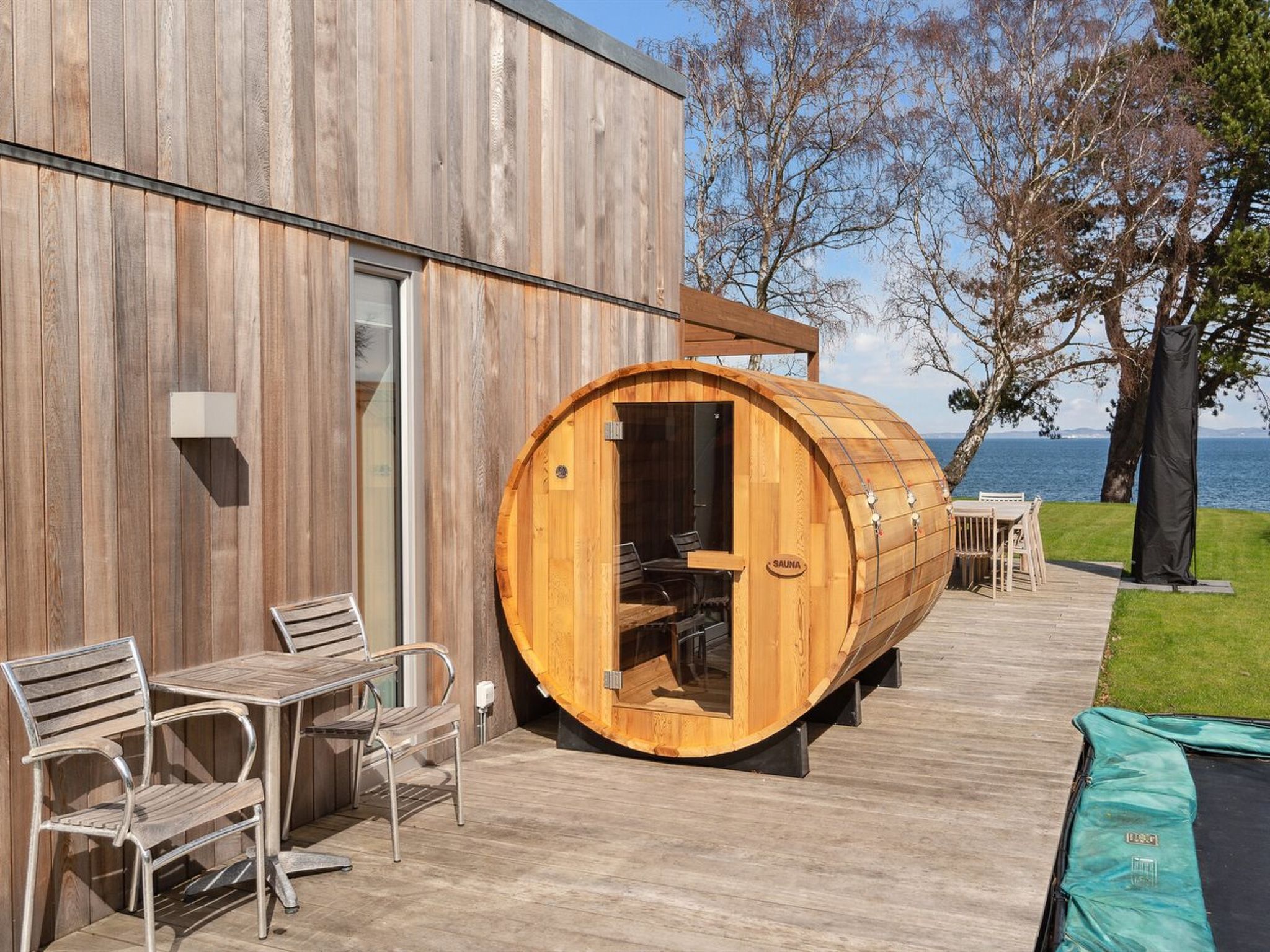 Einfamilienhaus, Baujahr 2019. 10 m vom Meer. Zur Alleinbenutzung: Grundstück 1'183 m2, gepflegter Garten. Aussendusche, Terrasse (40 m2). Im Hause: Waschmaschine, Wäschetrockner. Parkplatz beim Haus. Lebensmittelgeschäft 2 km. Golfplatz 700 m. Der Besitzer akzeptiert keine Jugendgruppen.