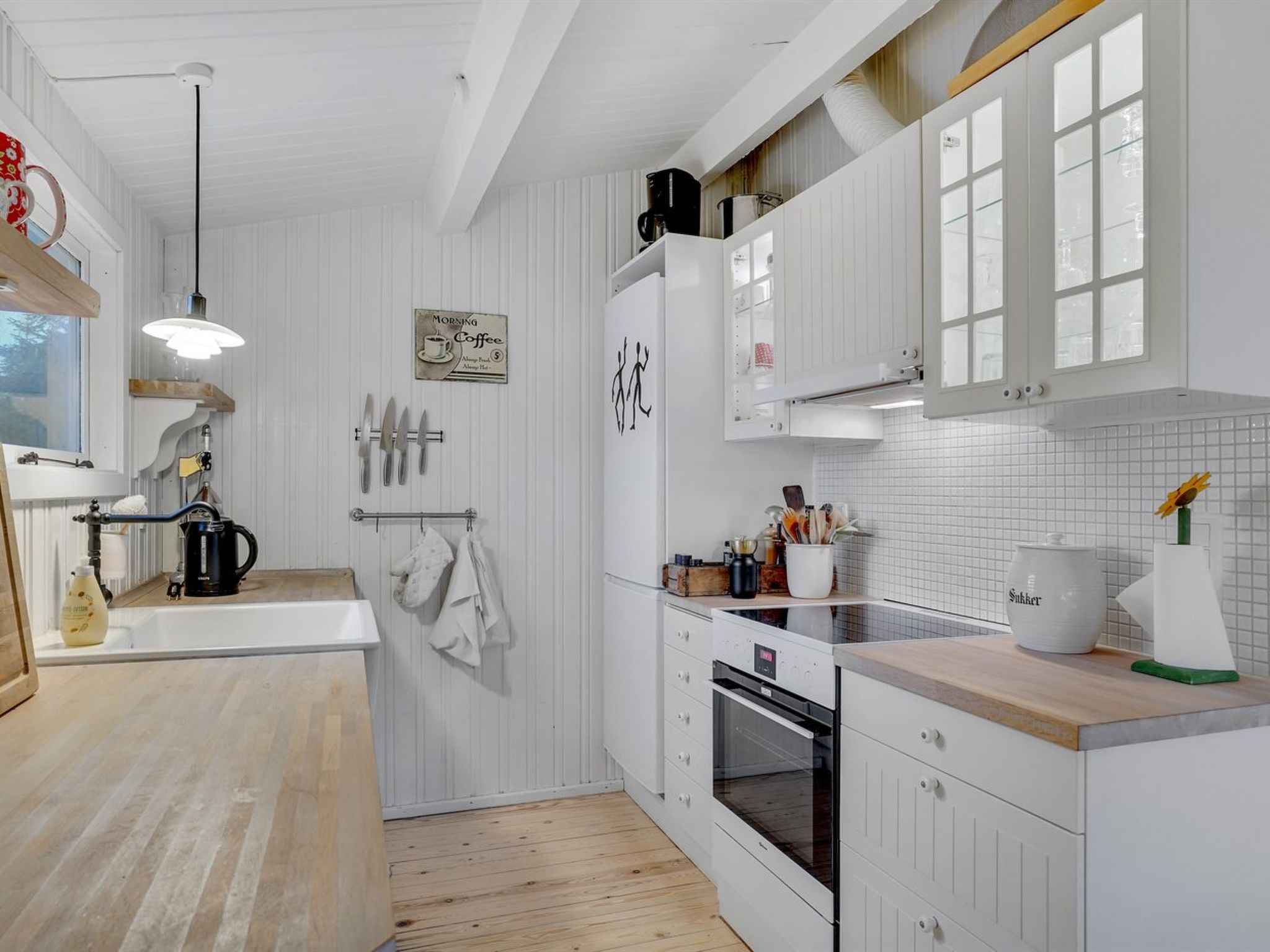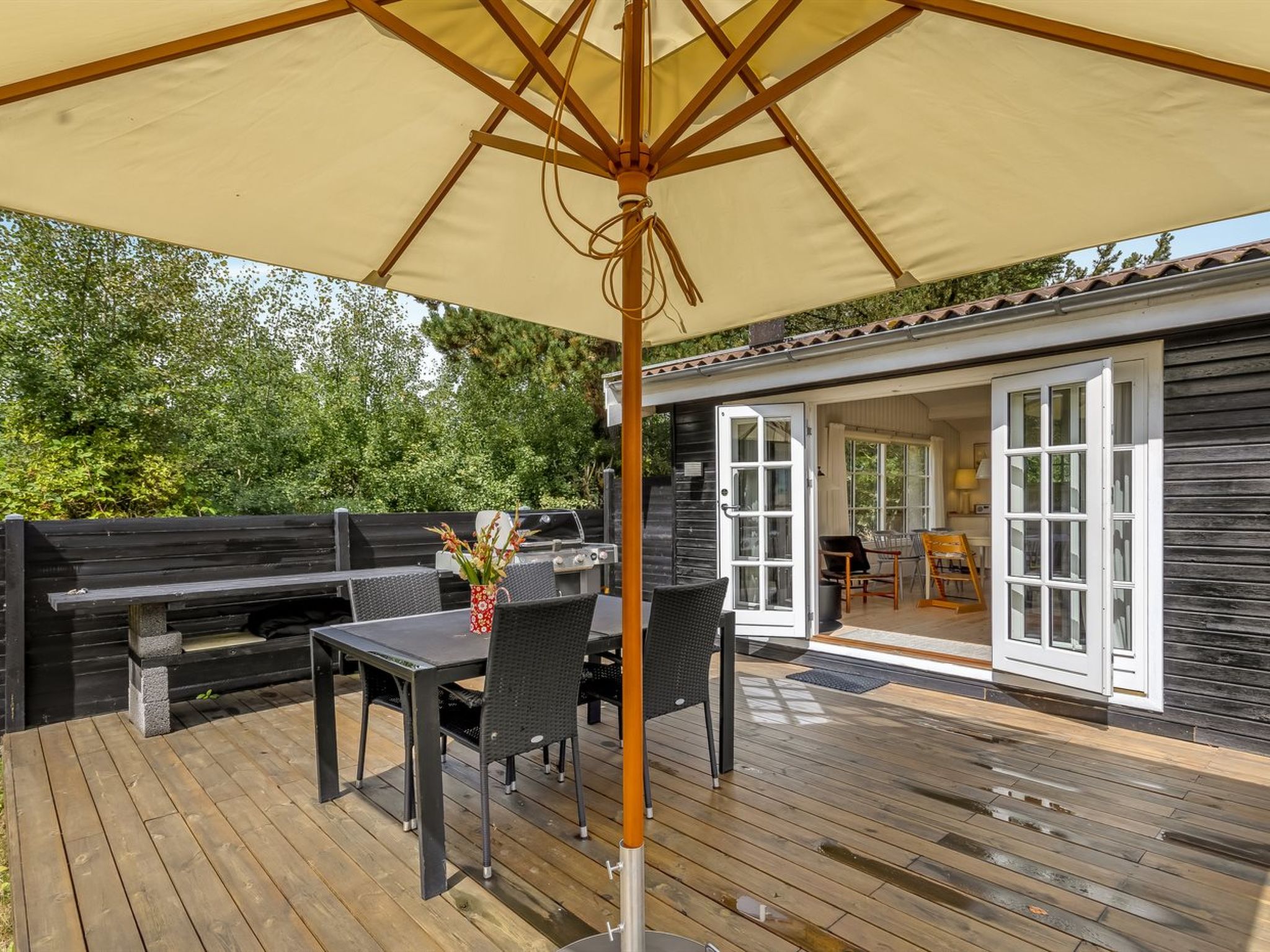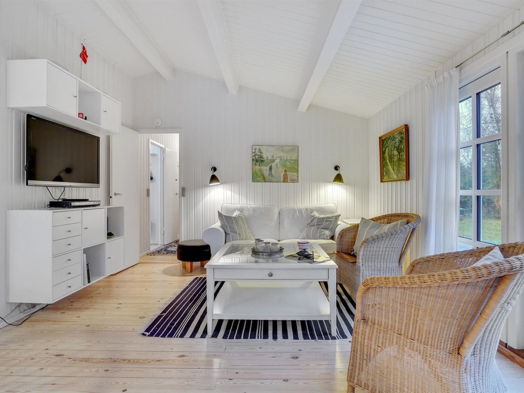 "Fjola" - 200m from the sea", 3-Zimmer-Haus 63 m2. Objekt geeignet für 4 Erwachsene. Wohnzimmer mit TV, Radio und DVD. 1 Zimmer mit 2 Betten. 1 Zimmer mit 2 Betten. 1 Zimmer mit 1 Doppelbett. Küche (Backofen, Geschirrspüler, 4 Glaskeramikplatten, Tiefkühler). Dusche/WC. Terrasse 10 m2, überdacht. Zur Verfügung: Kinderhochstuhl, Babybett. Internet (WLAN). Bitte beachten: Nichtraucher-Unterkunft. 376-28222